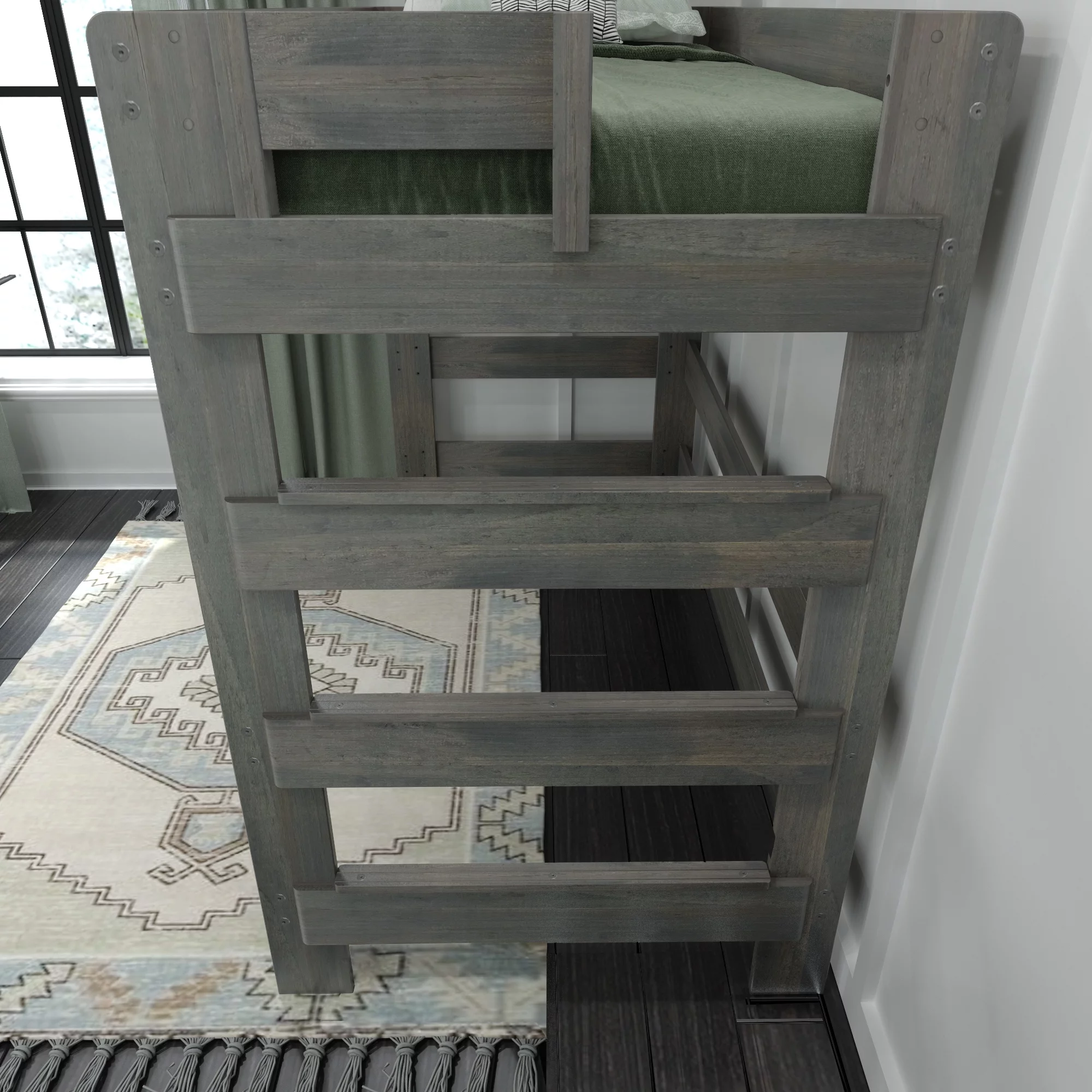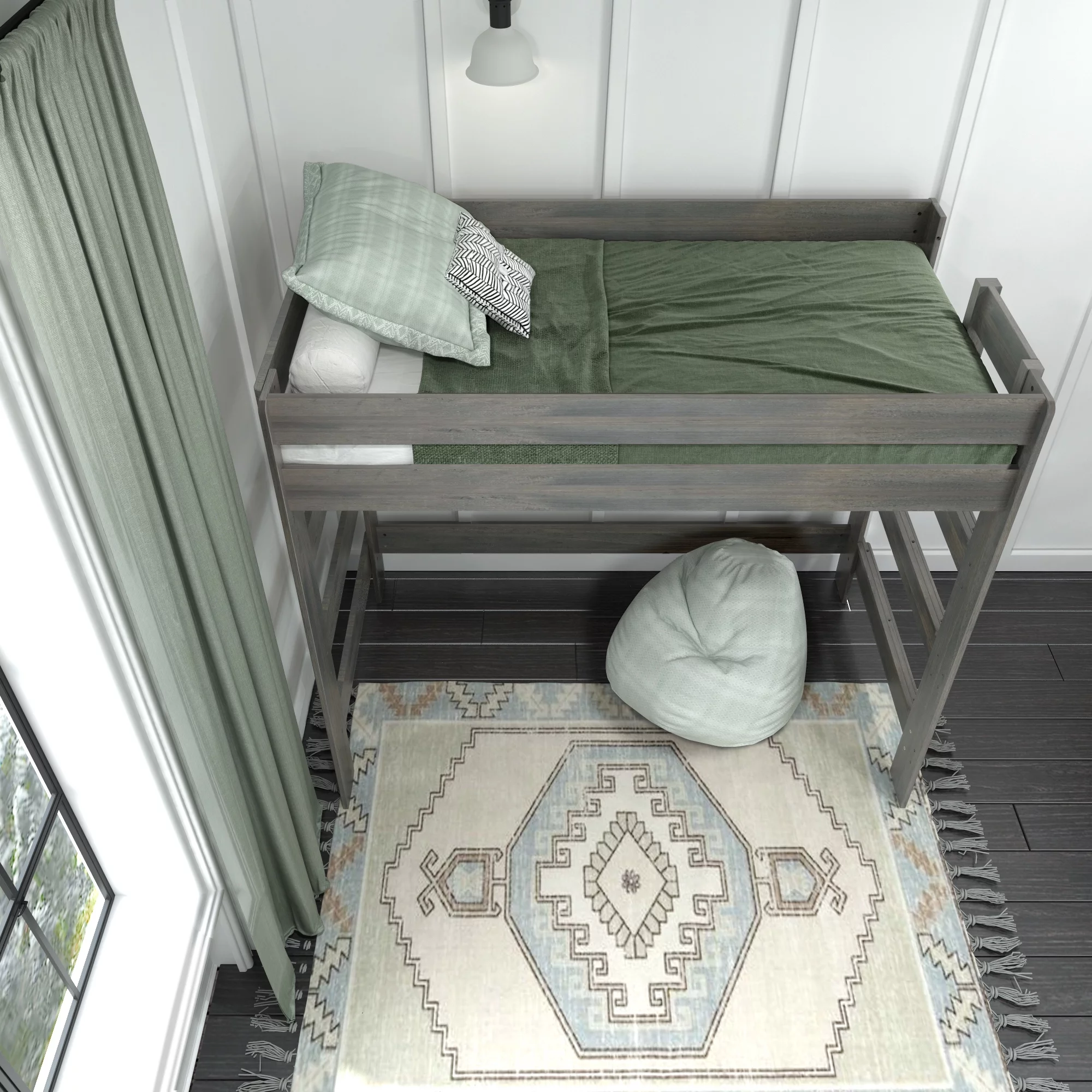 Max & Lily Modern Farmhouse High Loft Bed, Solid Wood Twin Loft Bed Frame for Kids, Driftwood