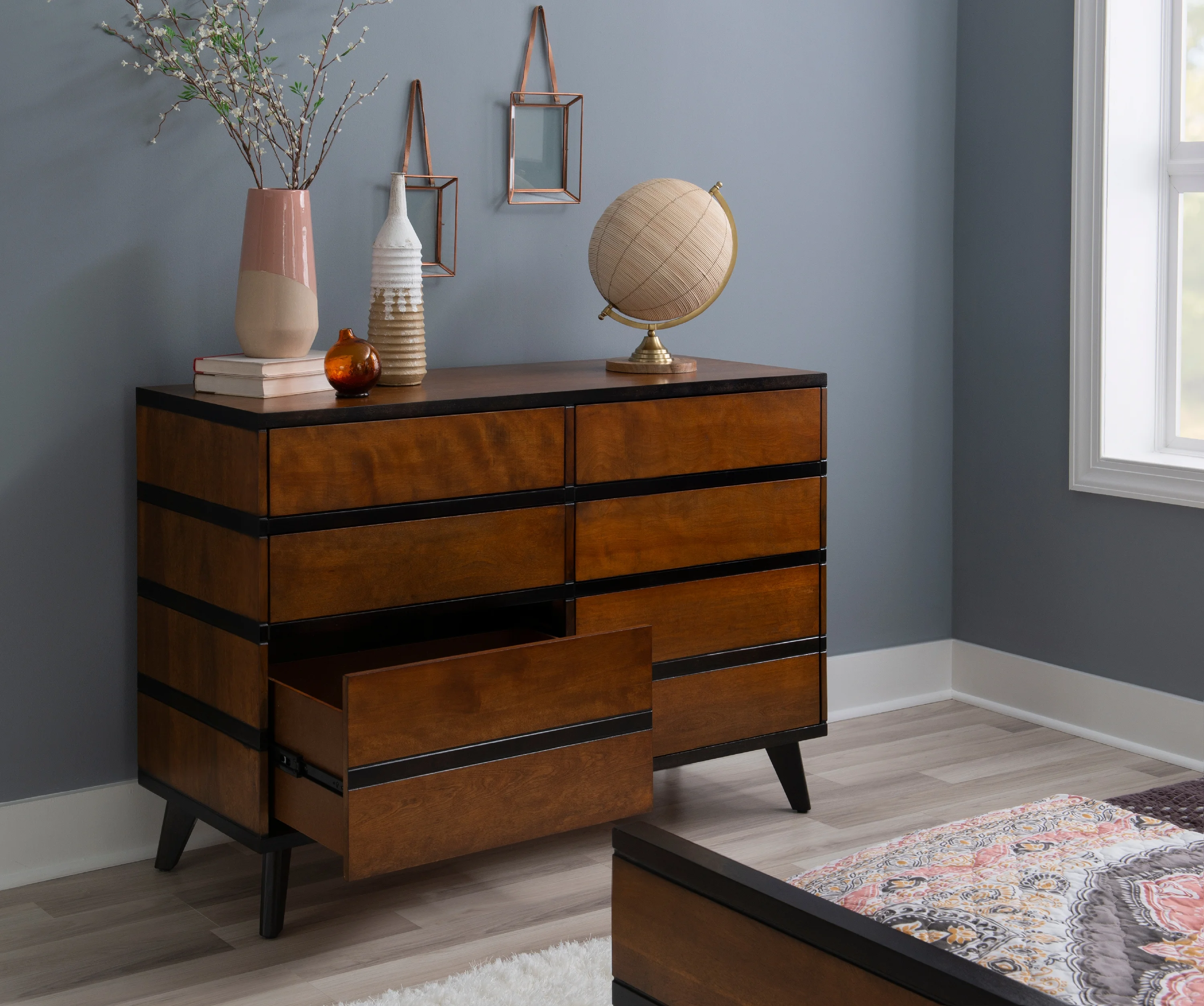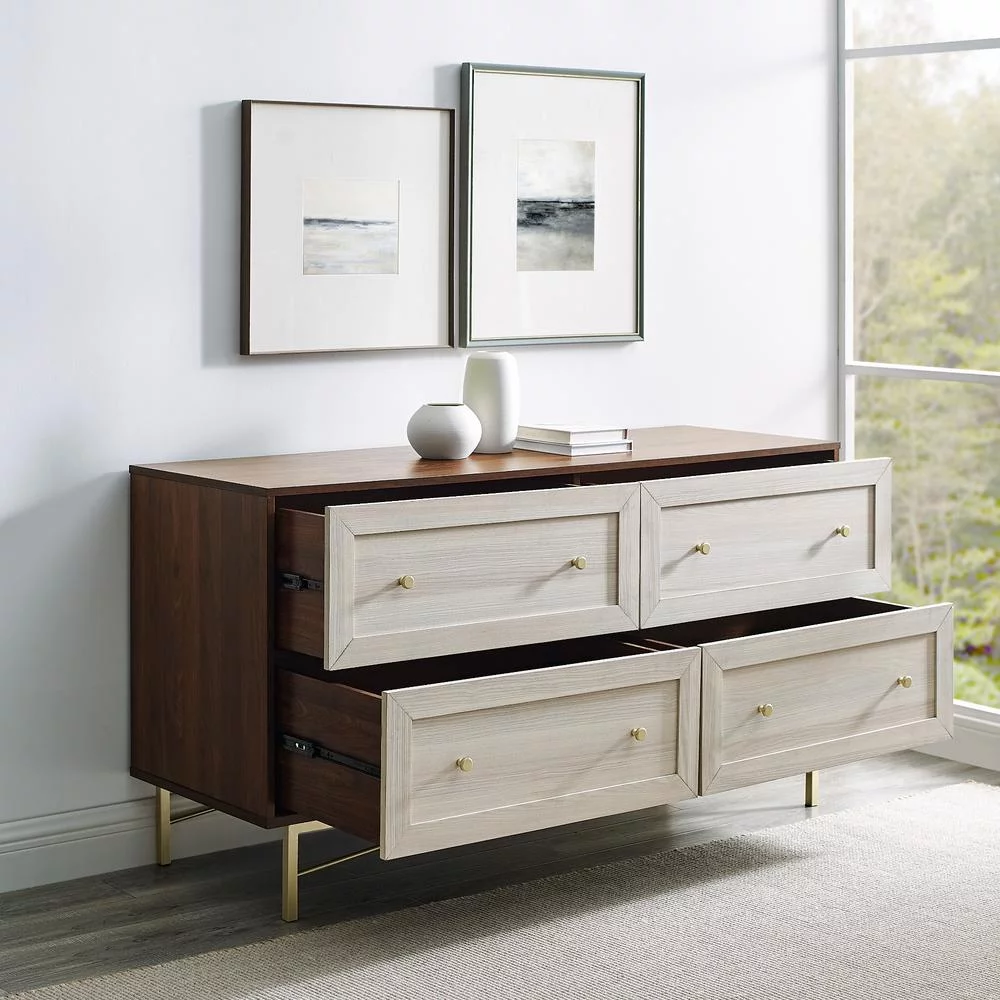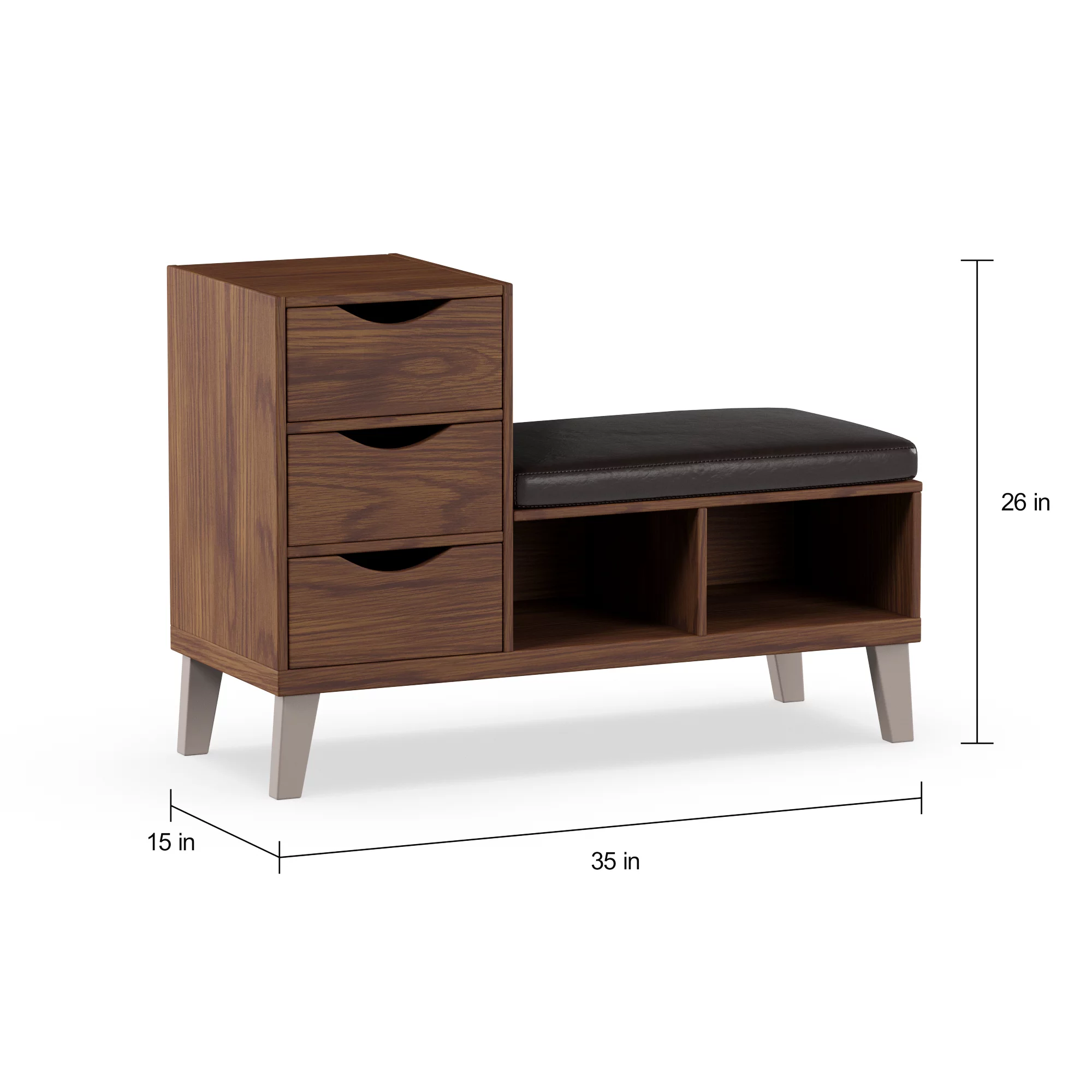 Home Square 2 Piece Set with Dresser and 3-Drawer Accent Chest in Walnut (Brown)