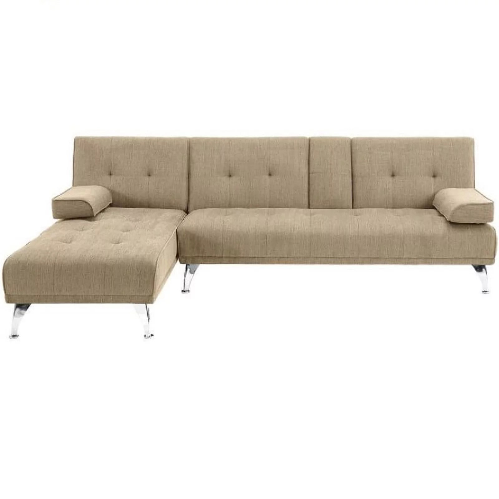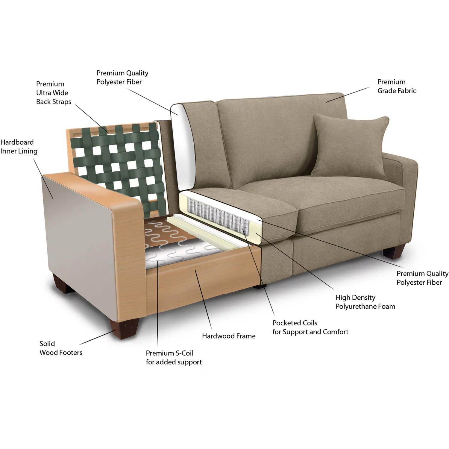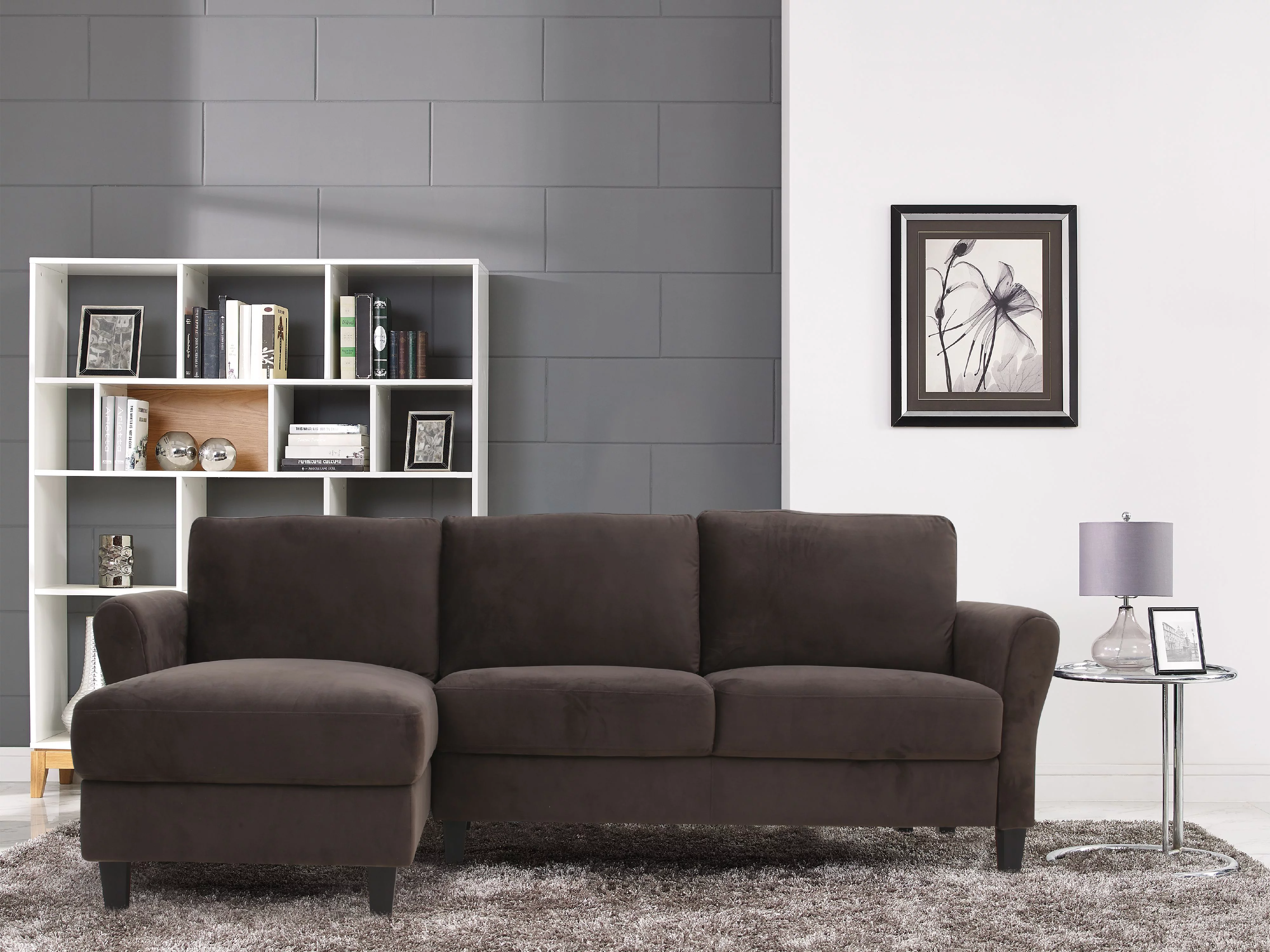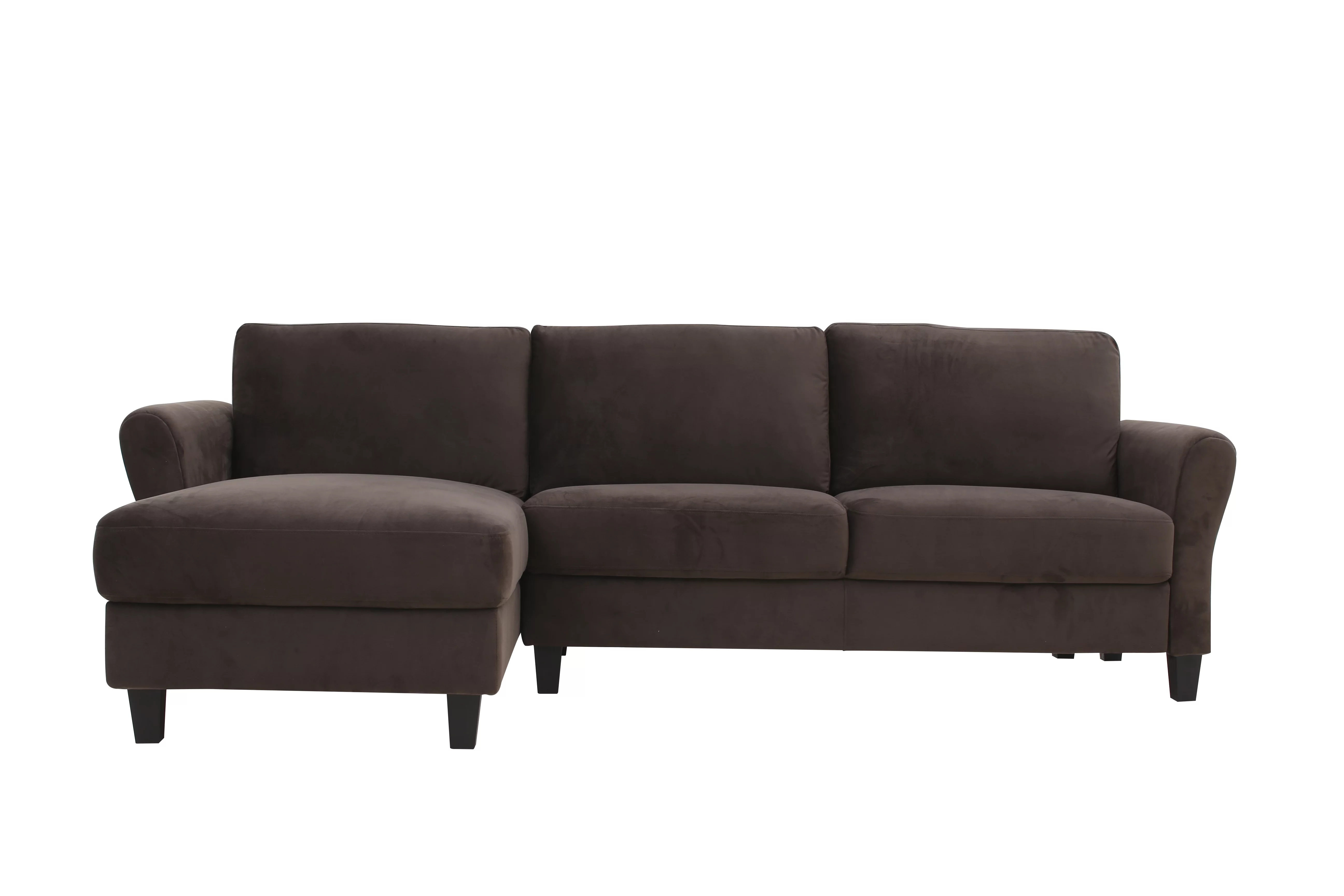 Lifestyle Solutions Alexa Sectional Sofa with Curved Arms, Coffee Brown Fabric