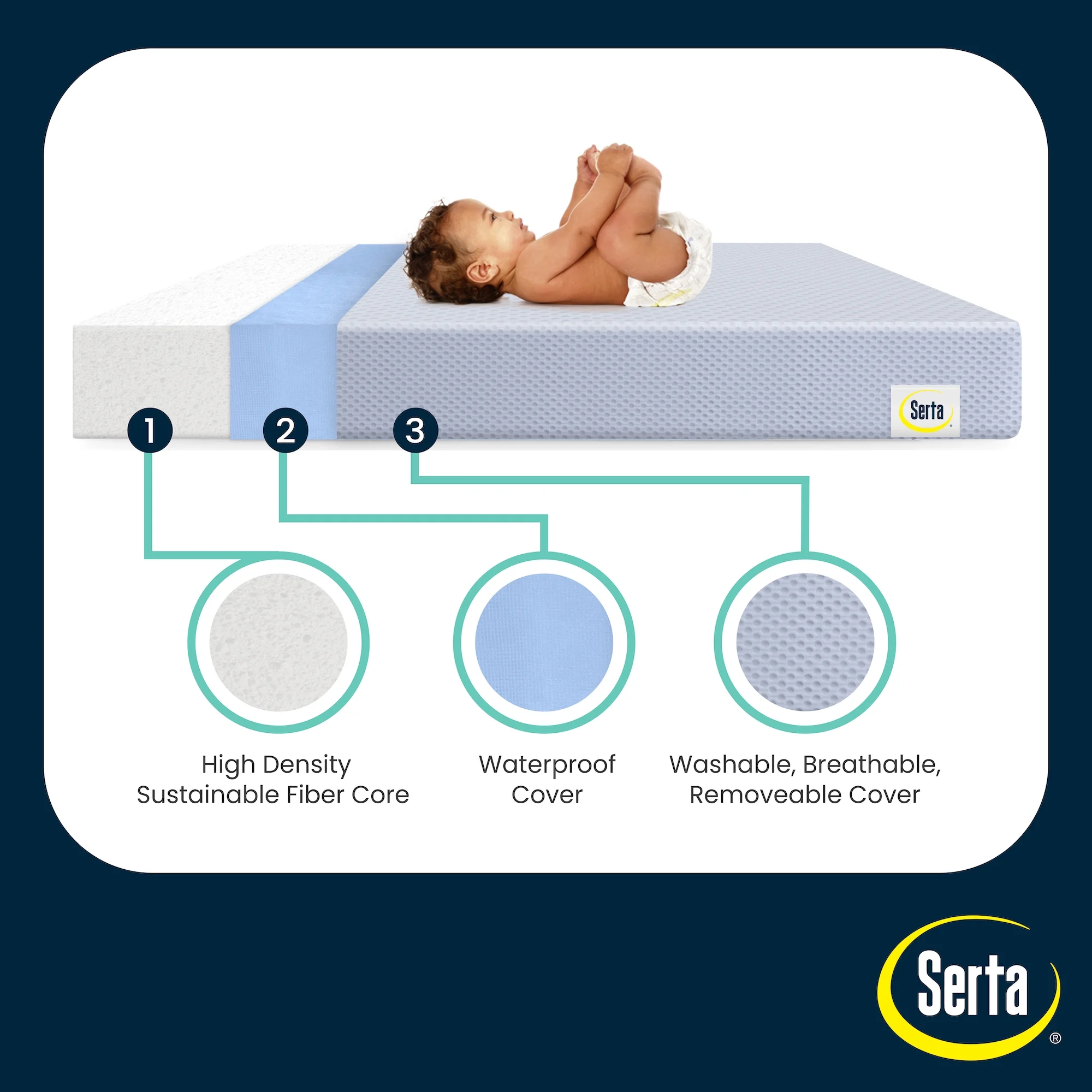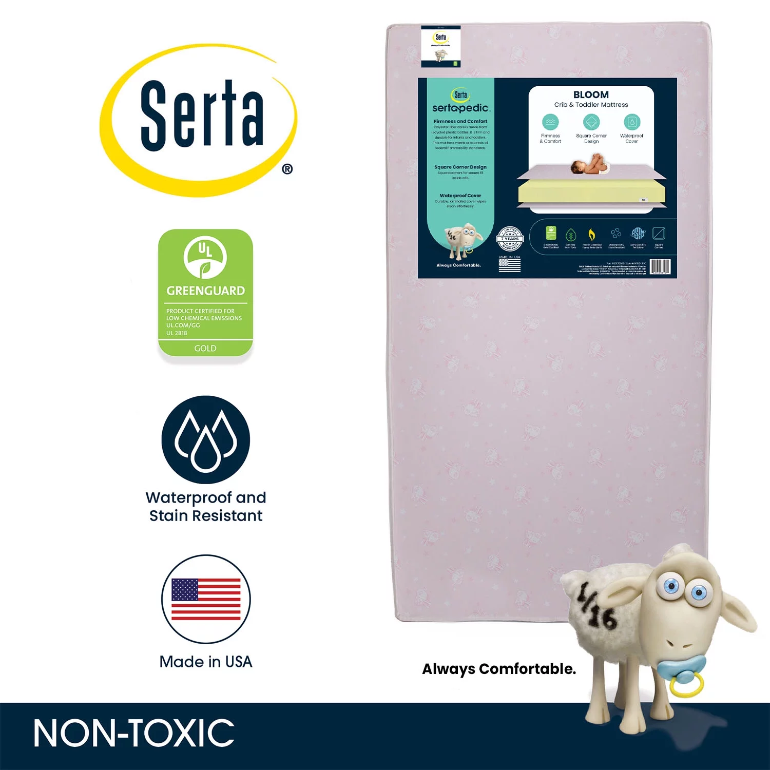 Serta Sertapedic Bloom 5" Dual-Sided Crib & Toddler Mattress, Sustainably Sourced Fiber Core, GREENGUARD Gold Certified