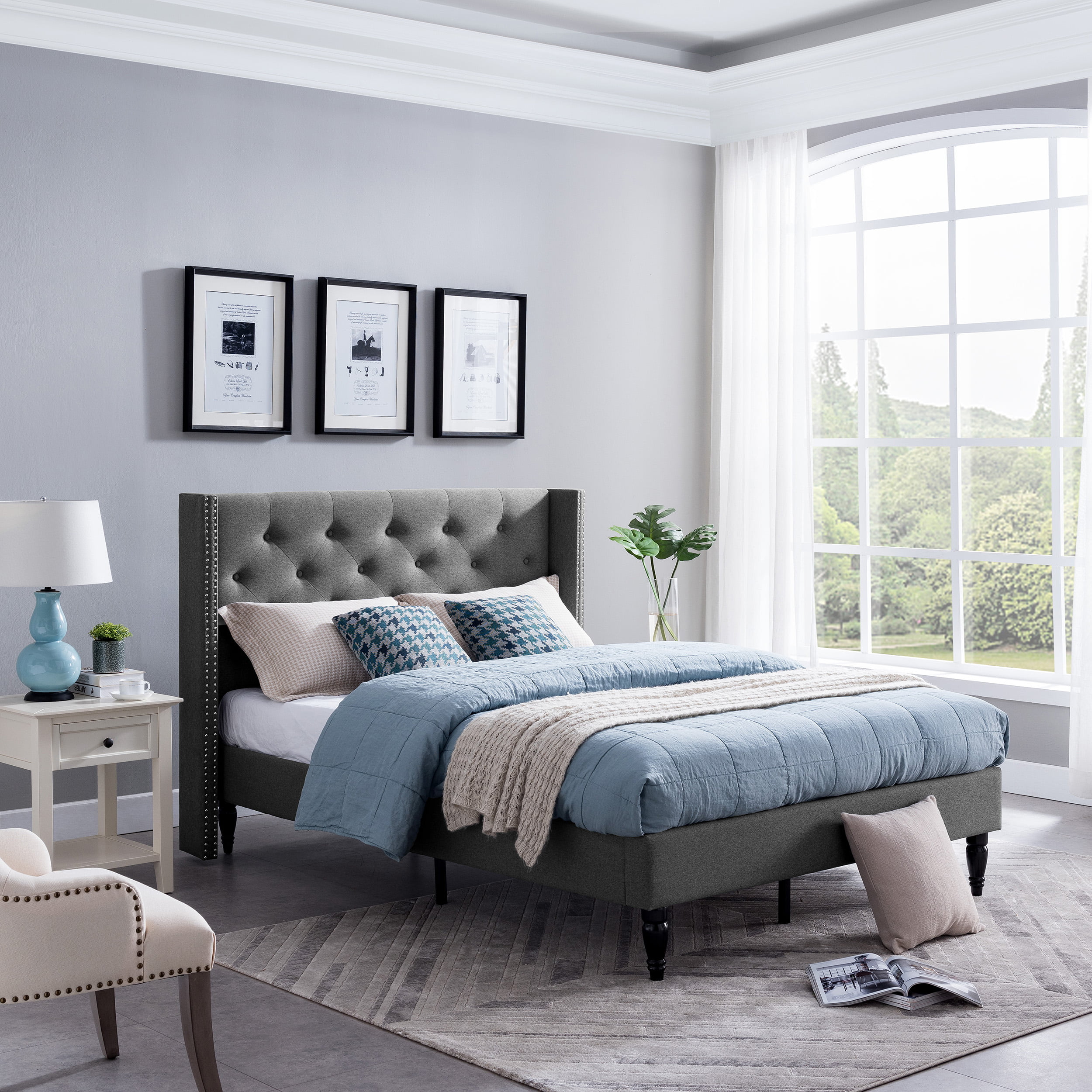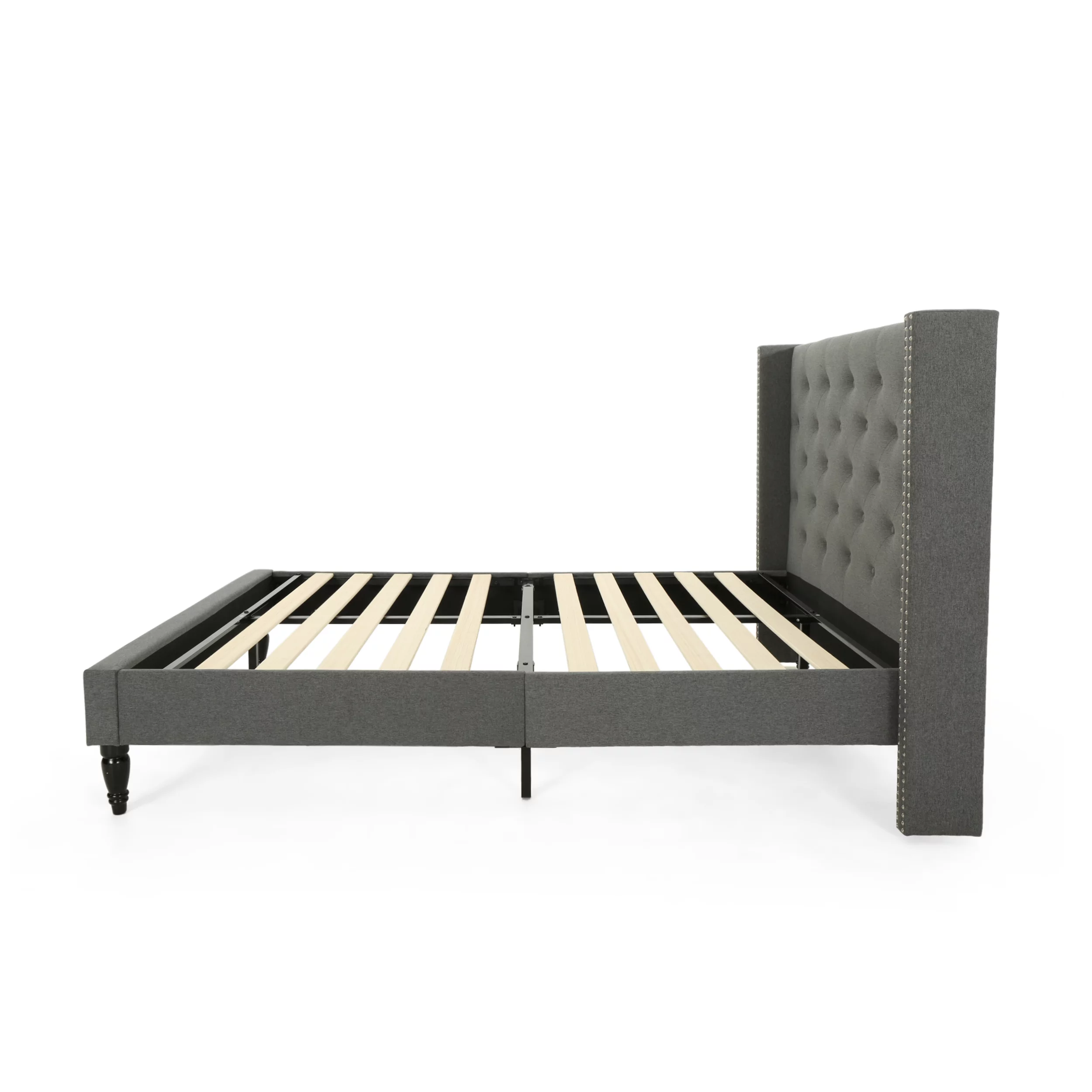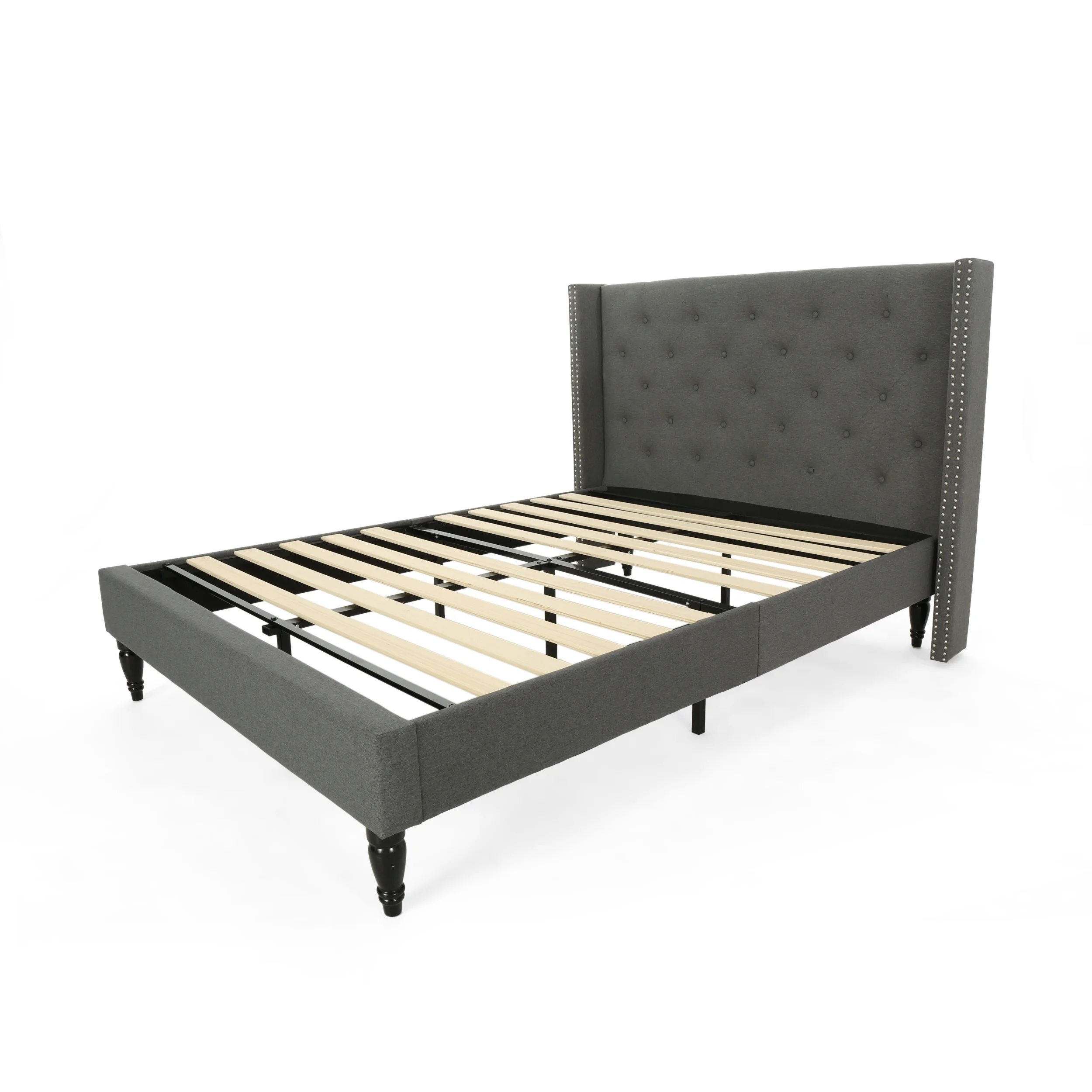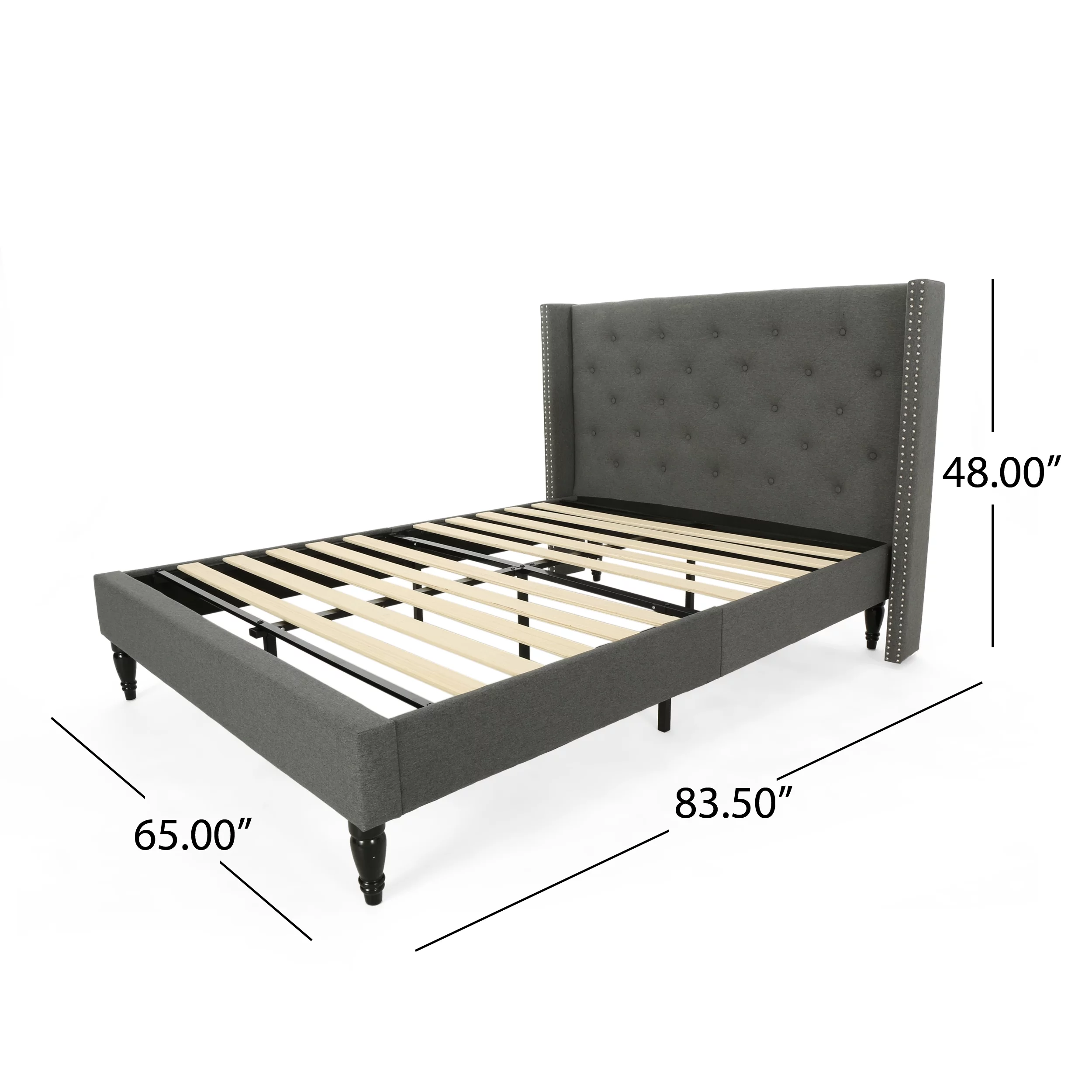 Noble House Liyam Queen-Sized Fabric Fully-Upholstered Traditional Bedframe, Charcoal Gray