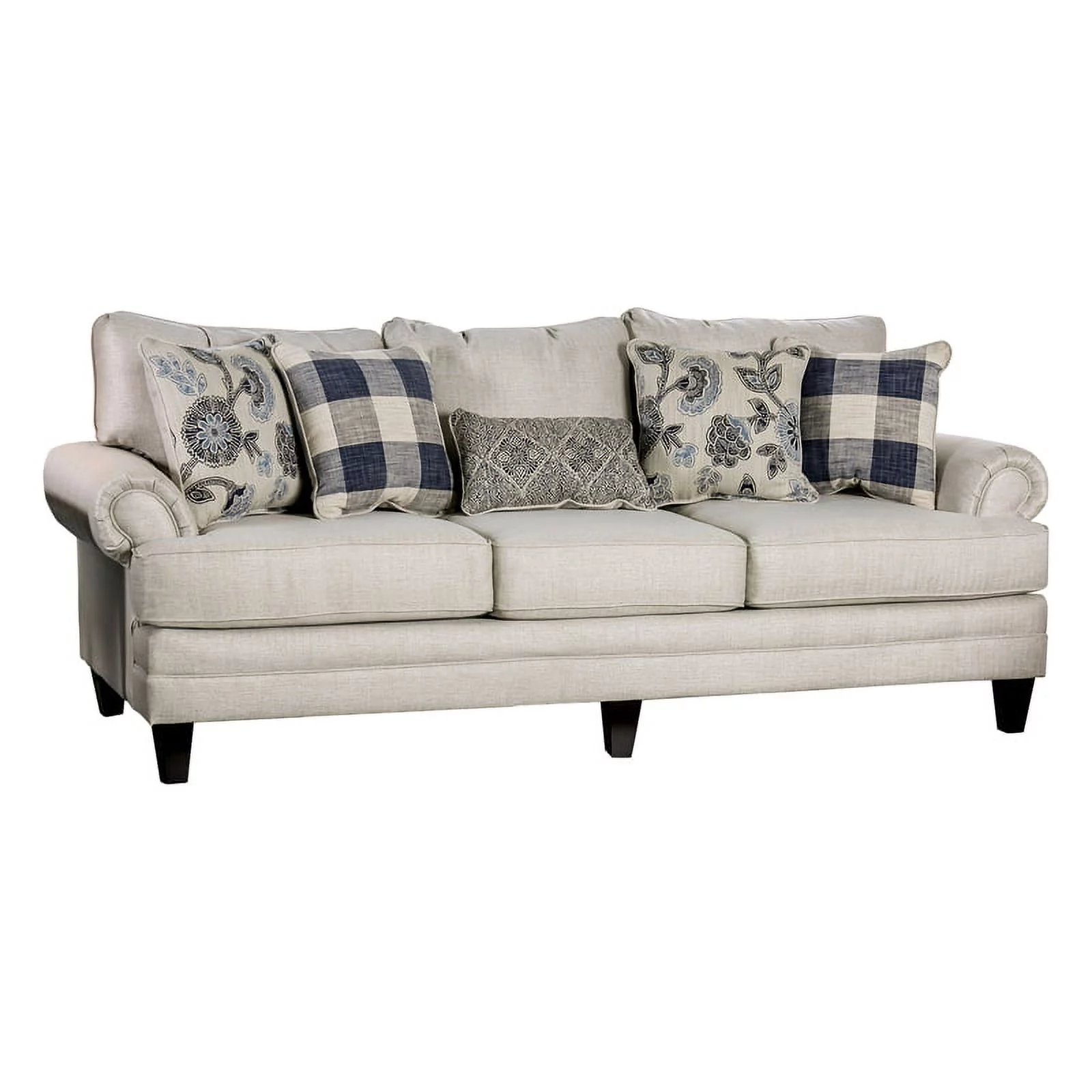 Furniture of America Calistoga Transitional Fabric Rolled Arms Sofa in Ivory