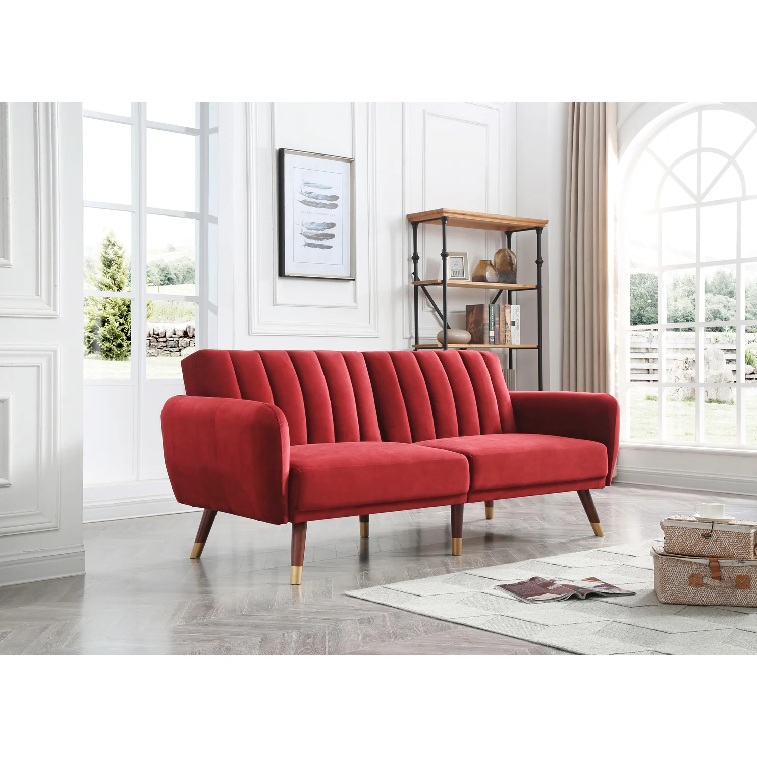 Furniture of America Andrea Traditional Chenille Rolled Arms Sofa in Red
