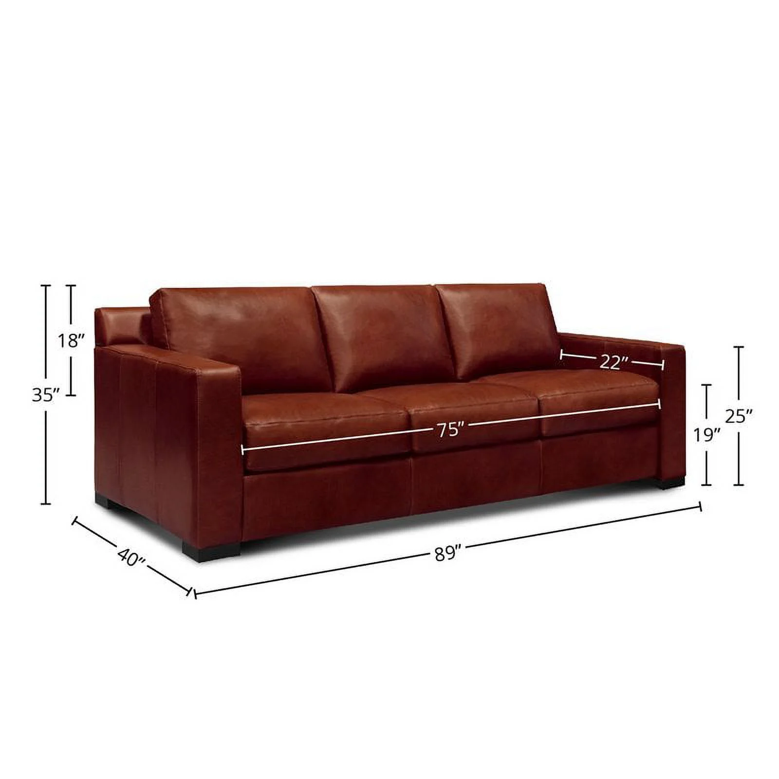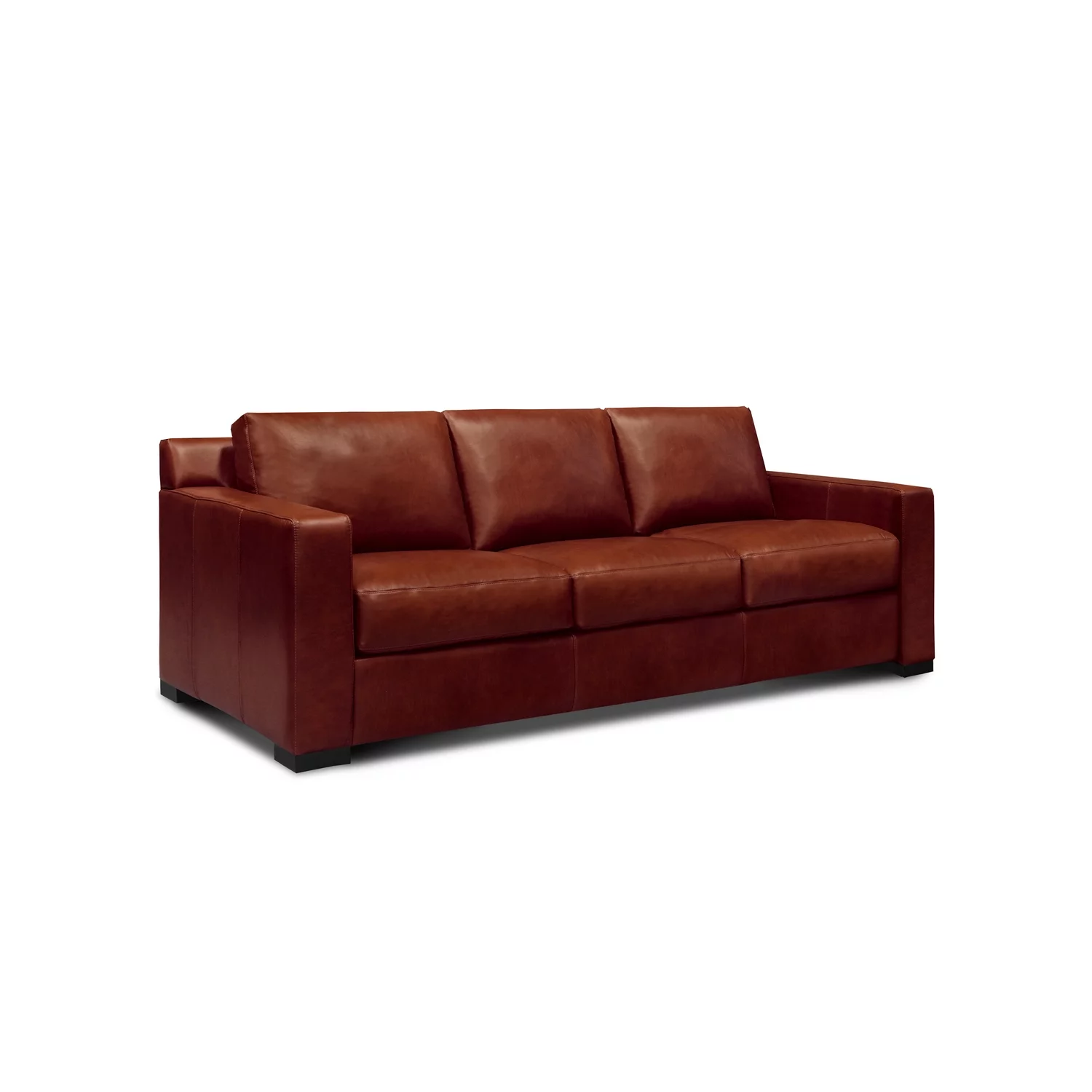 Hello Sofa Home Santiago Mid-Century Top Grain Leather Sofa in Russet Brown