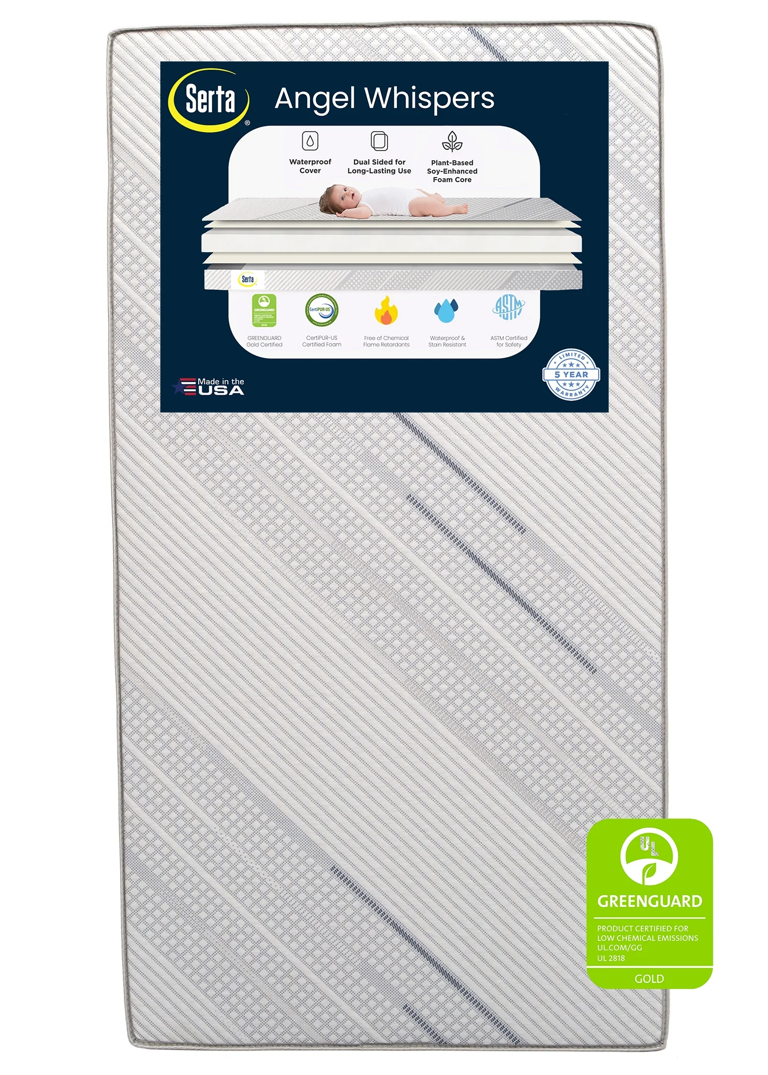 Serta Angel Whispers Dual Sided 5" Crib /Toddler Mattress, GREENGUARD Gold, Firm Plant-Based Foam