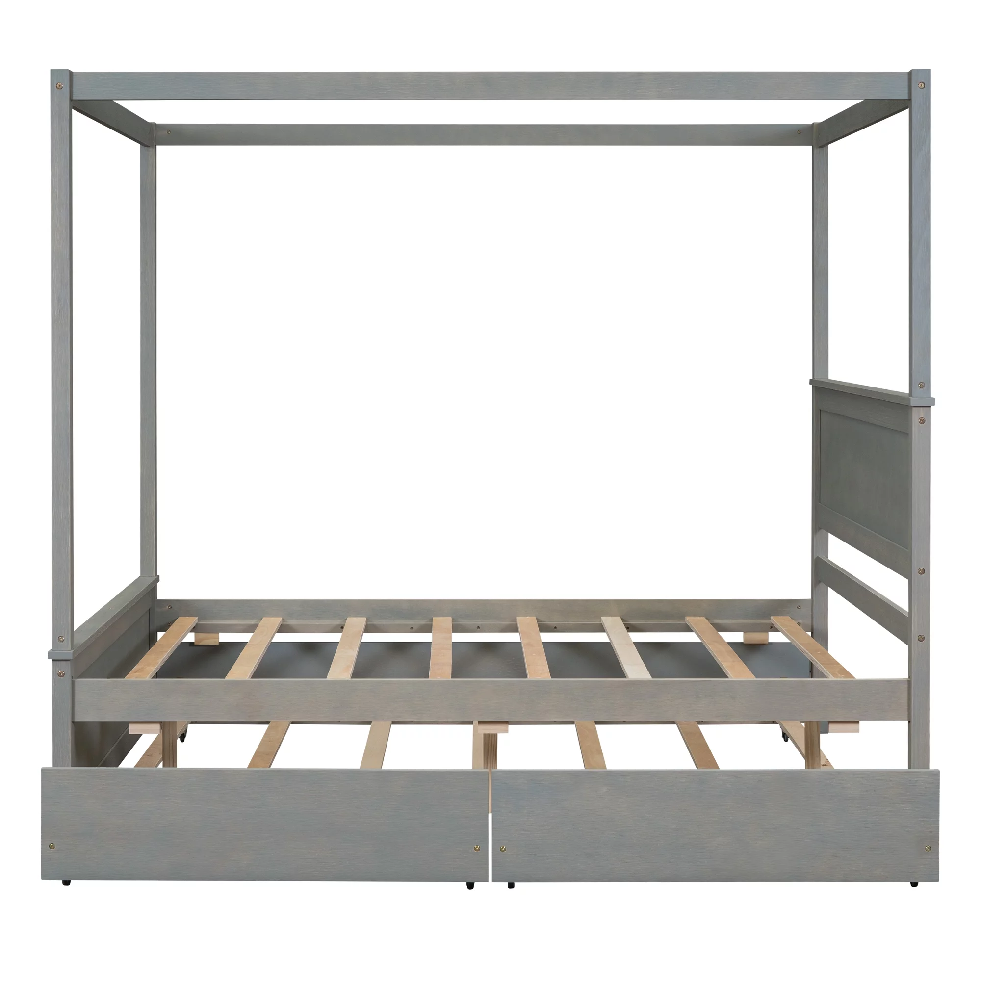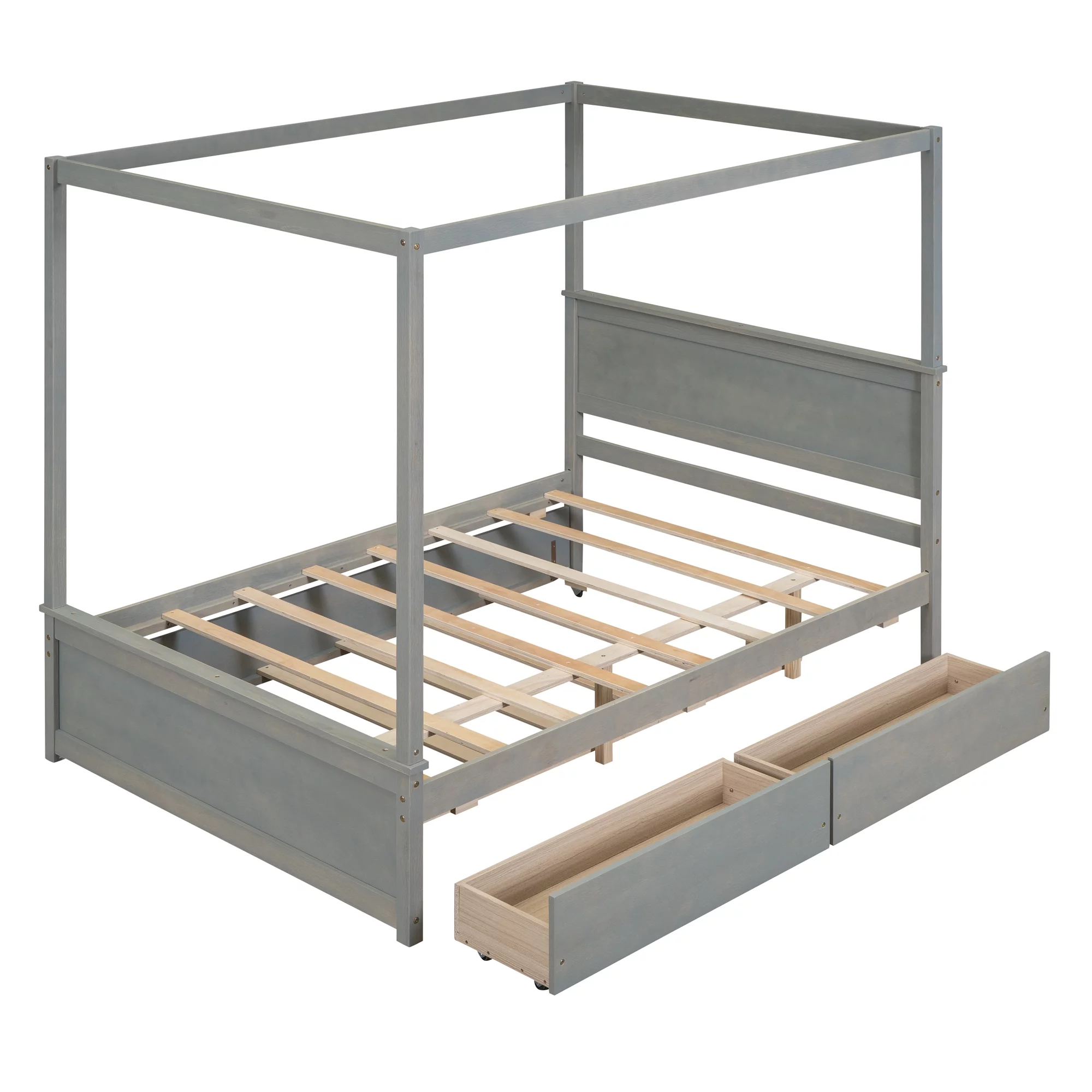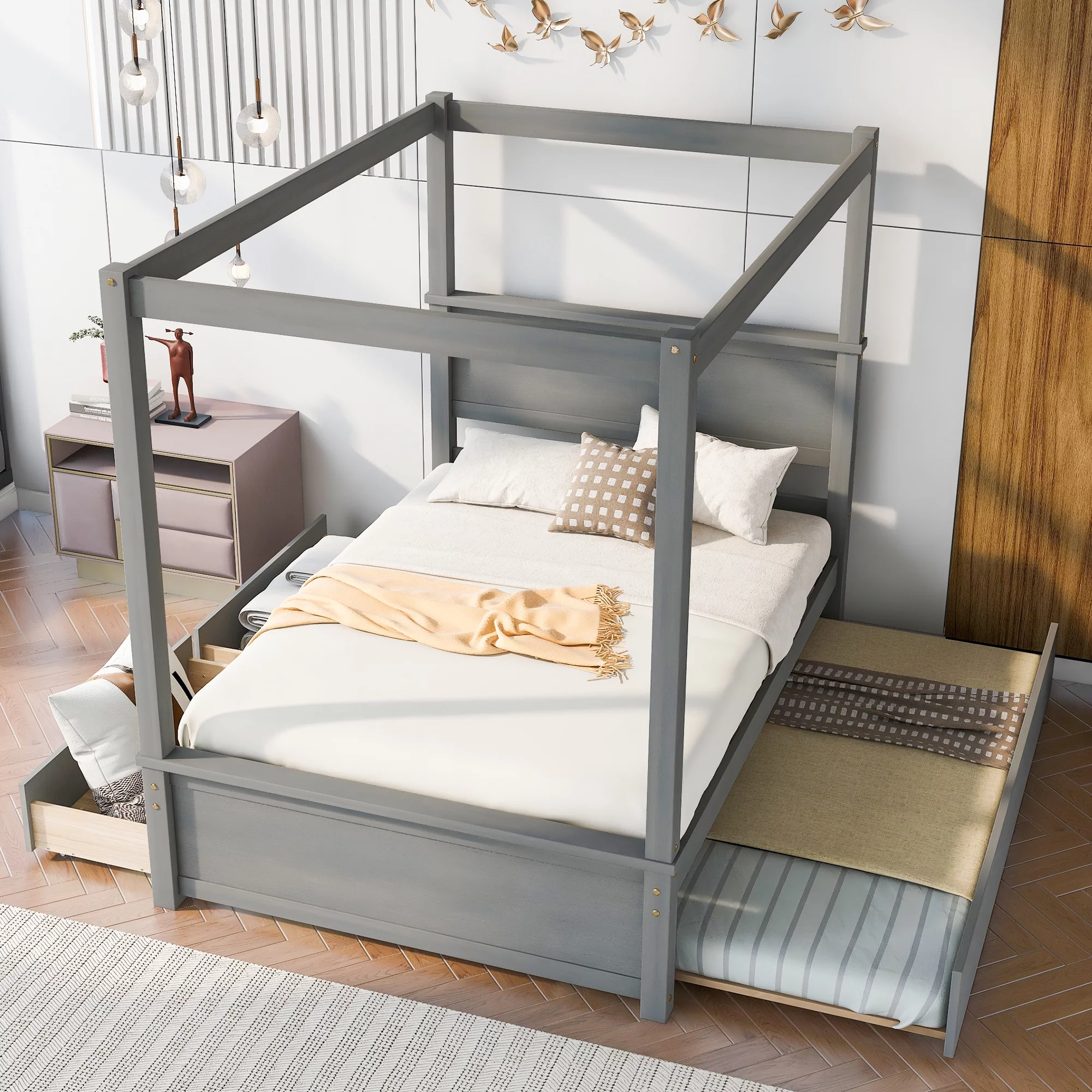 Churanty Full Size Canopy Bed Frame with Trundle and 2 Storage Drawers,Wood Full Platform Bed with Headboard,Gray