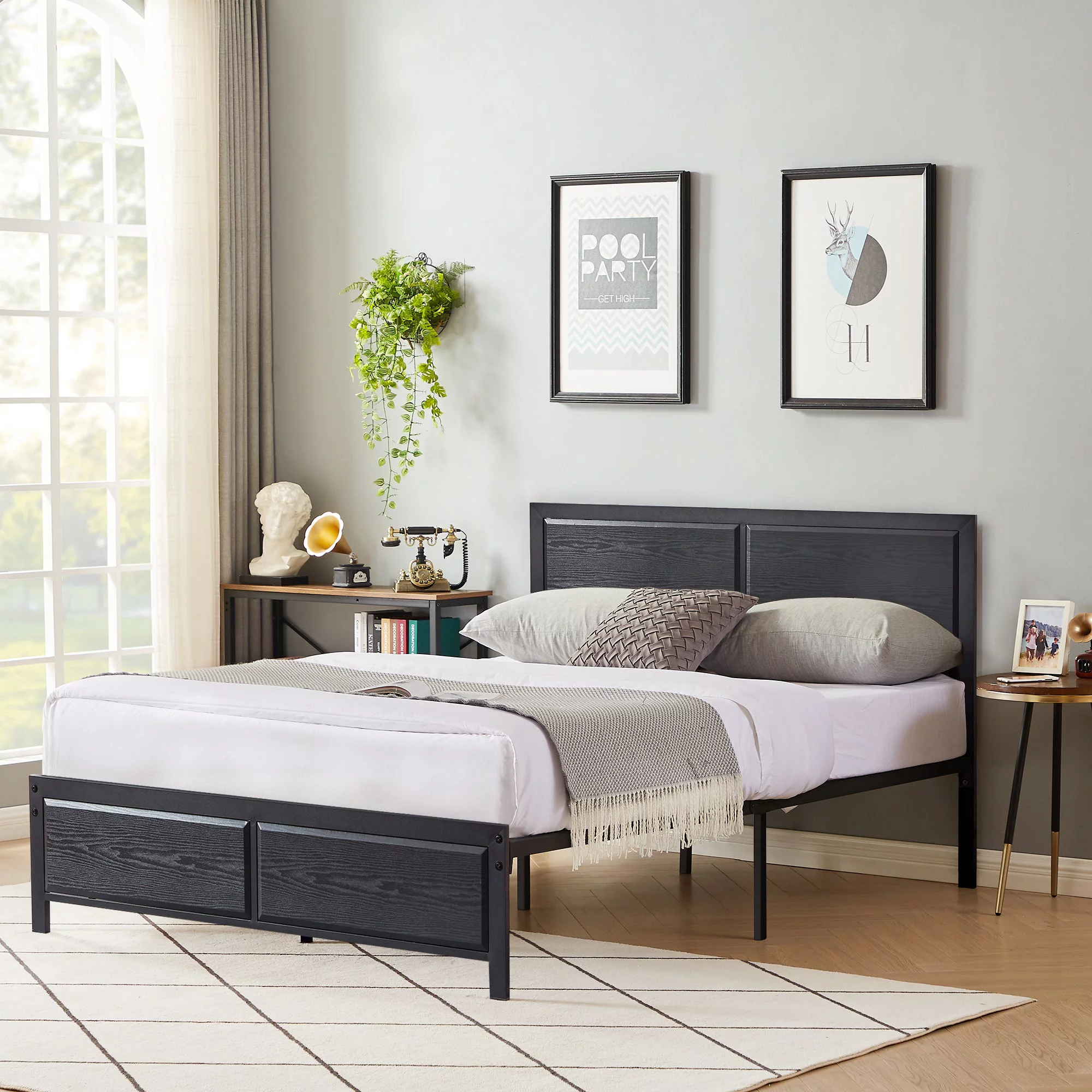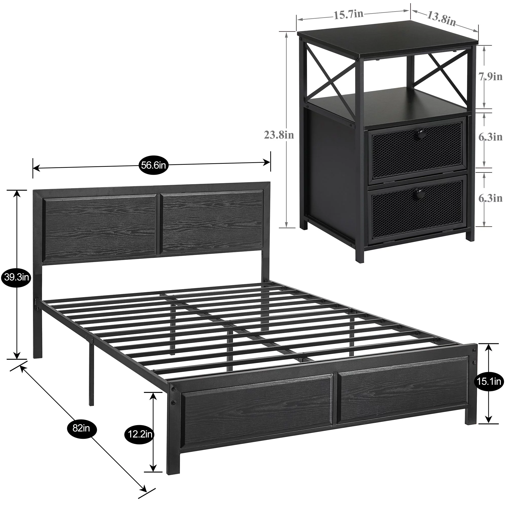 VECELO 3-Piece Bedroom Set Includes Full Platform Bed Frame and Nightstands with 2-Drawer, Black