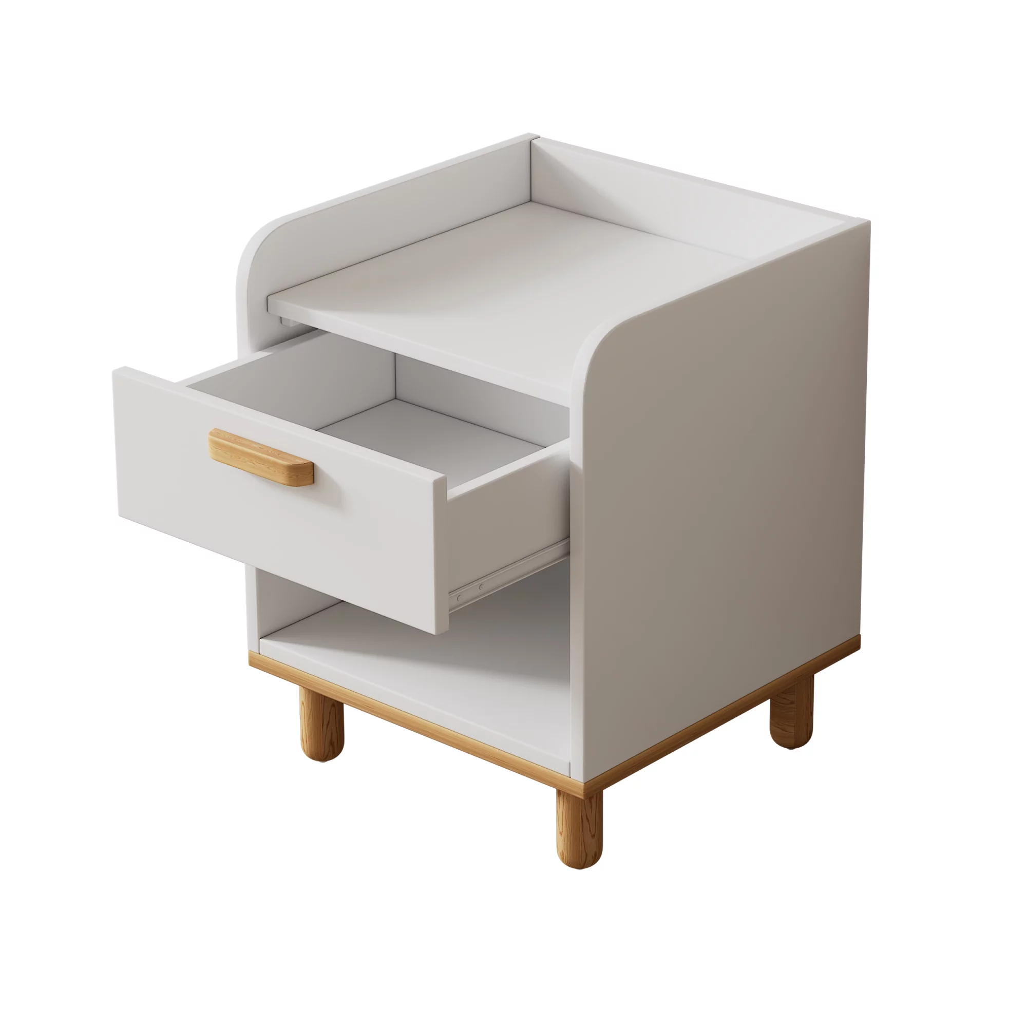 3pc Beautiful White Finish Full Size Panel Bed Chest Nightstand Set Wooden Bedroom Furniture