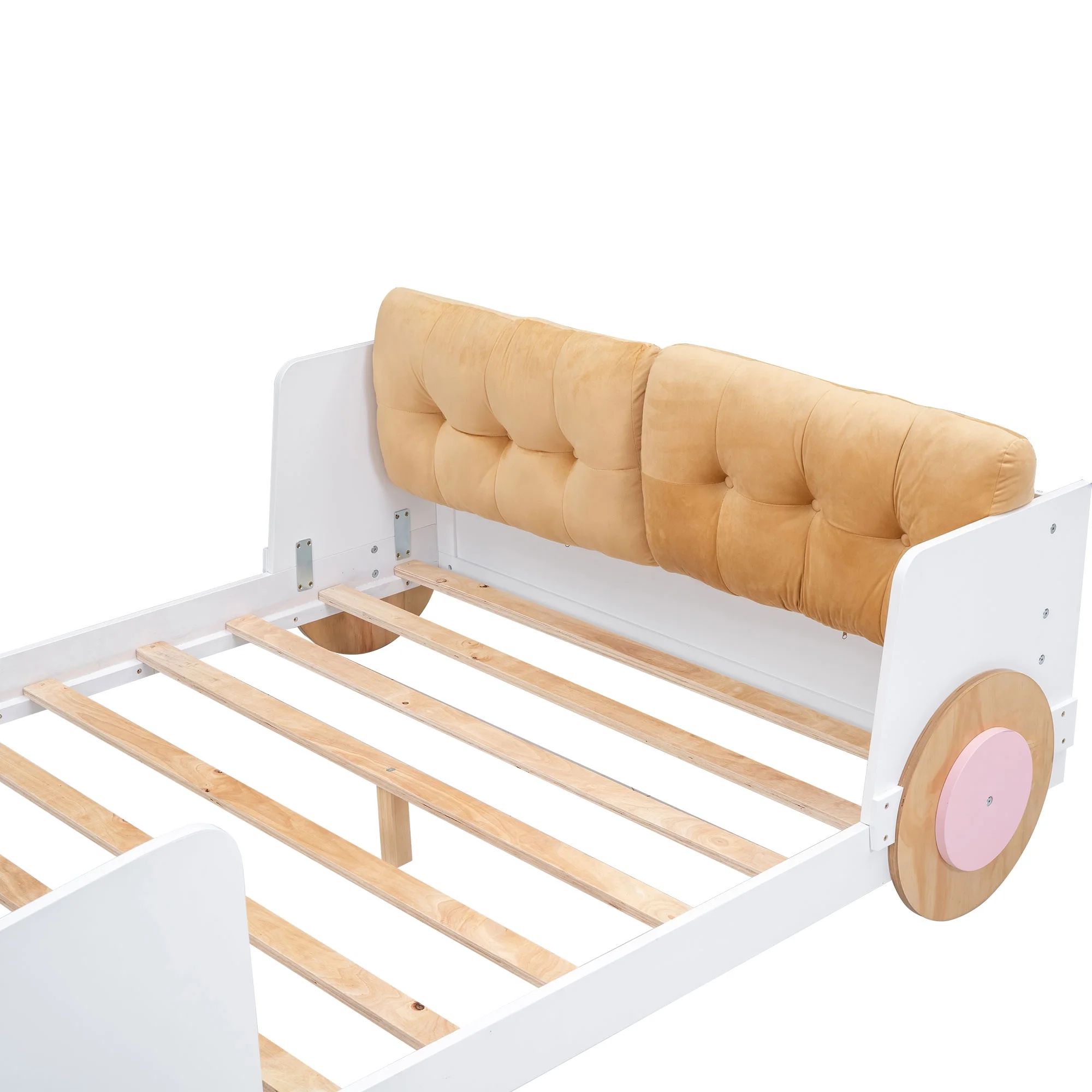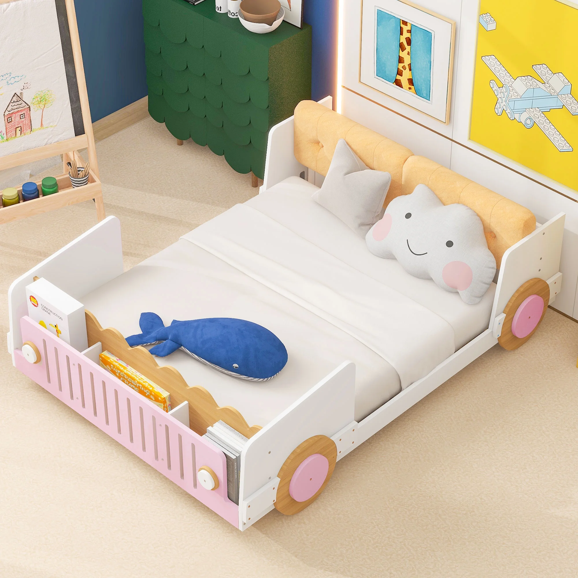 Euroco Full Size Car-Shaped Platform Bed with Storage Shelf and 2 Cushions for Kids Bedroom