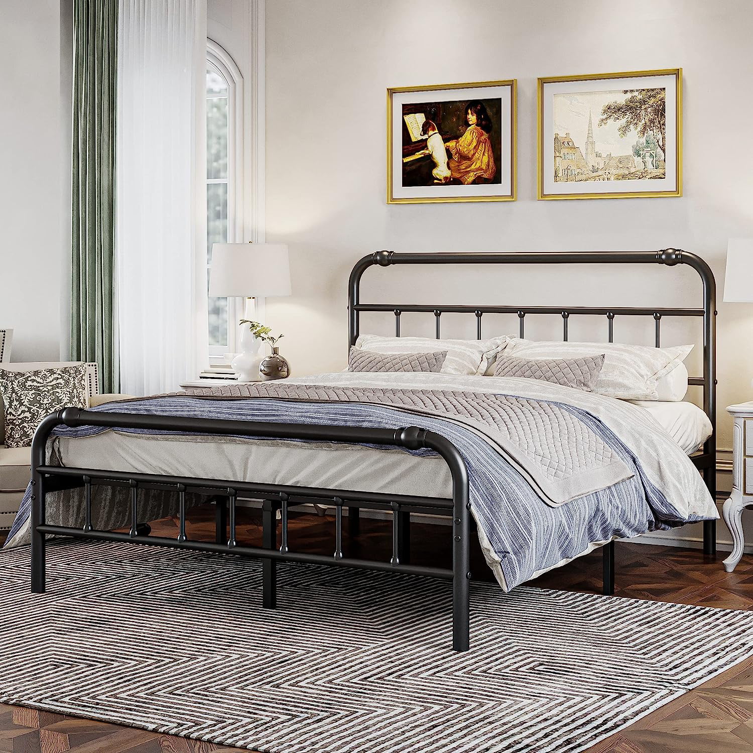 Gewnee Metal Full Over Full Bunk Bed,Heavy Duty Bed Frame with Safety Guard Rails & Ladder for Kids Teens Adults,Black