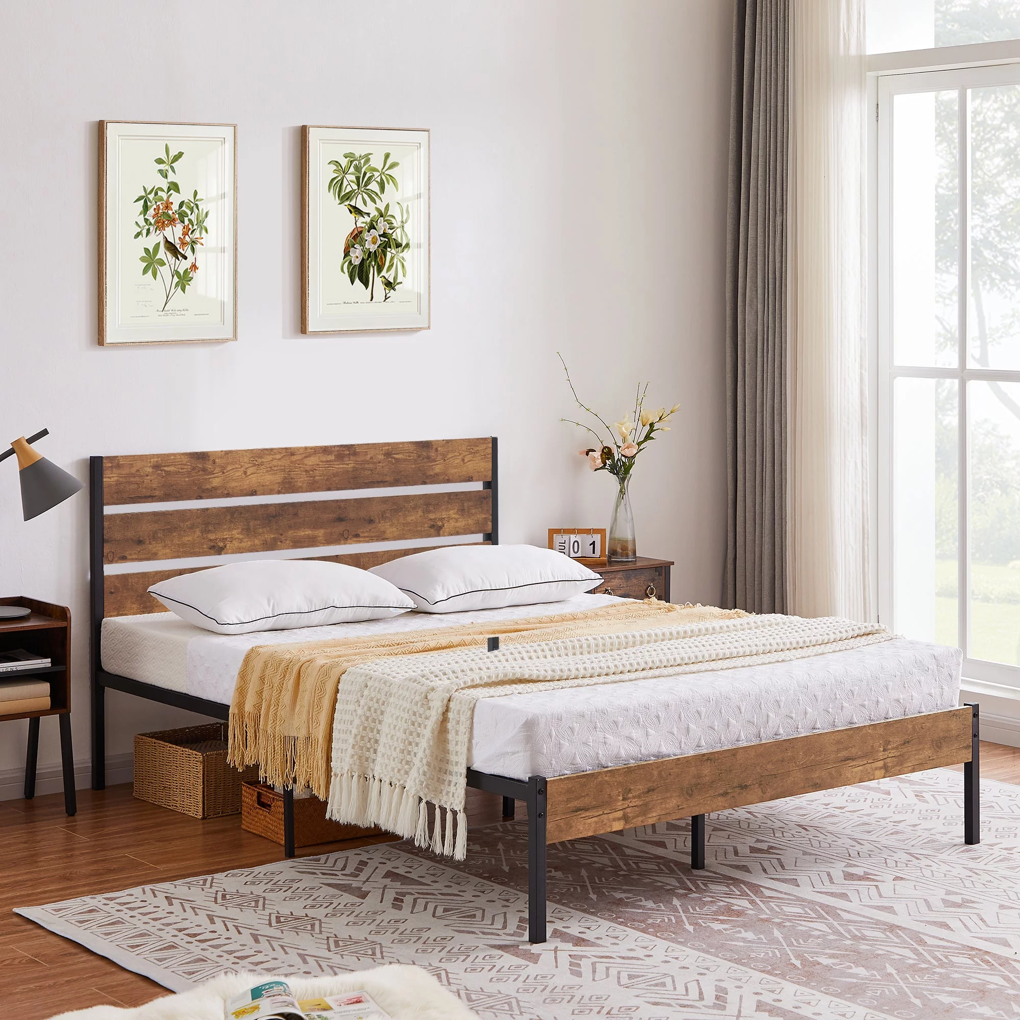 VECELO 4-Piece Bedroom Set Include Full Size Bed Frame & Dresser & 2 Nightstand, Brown