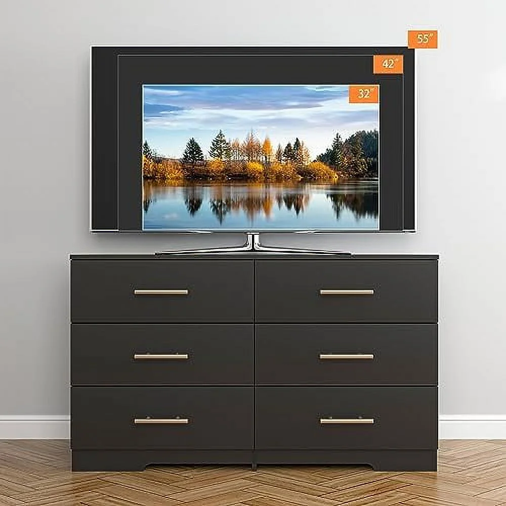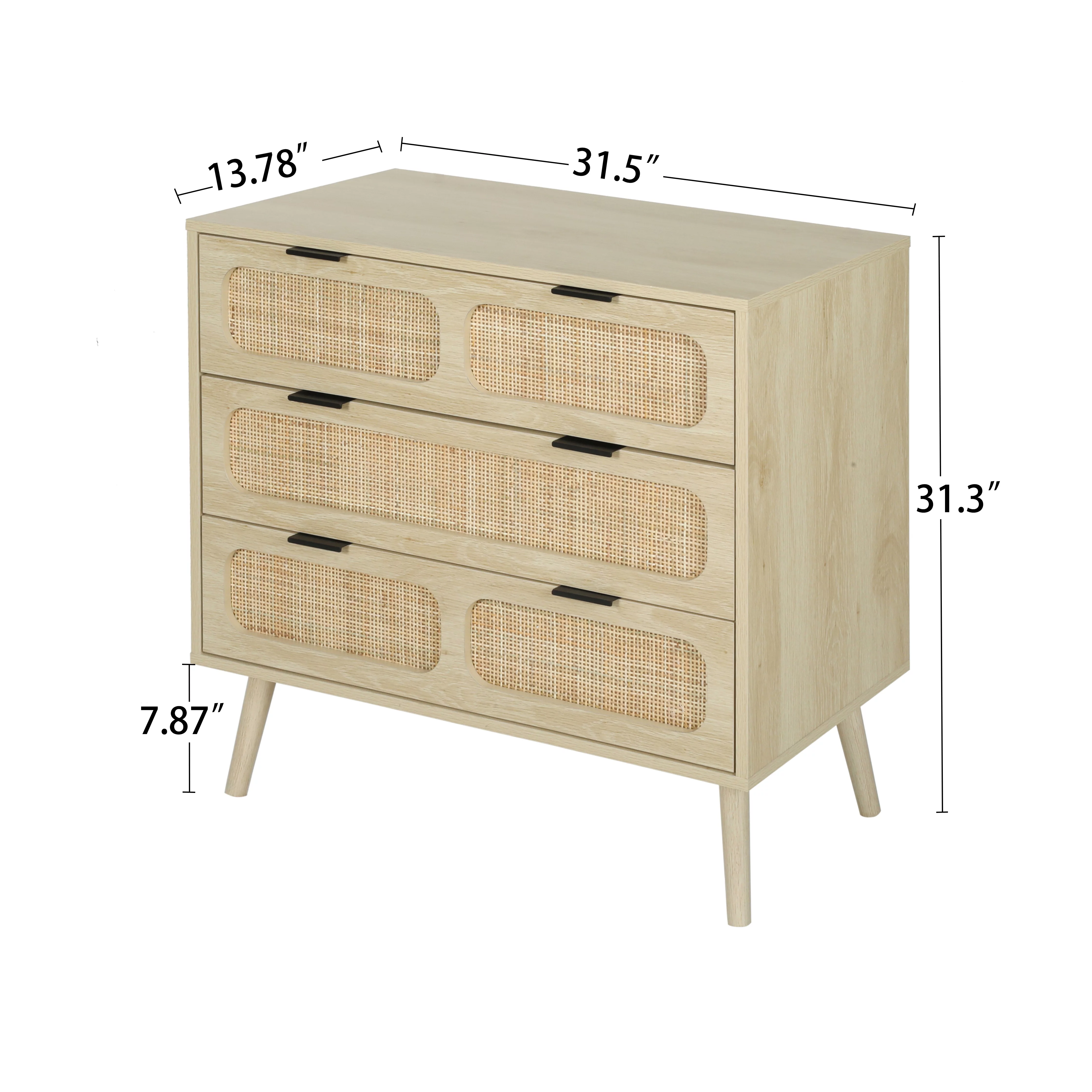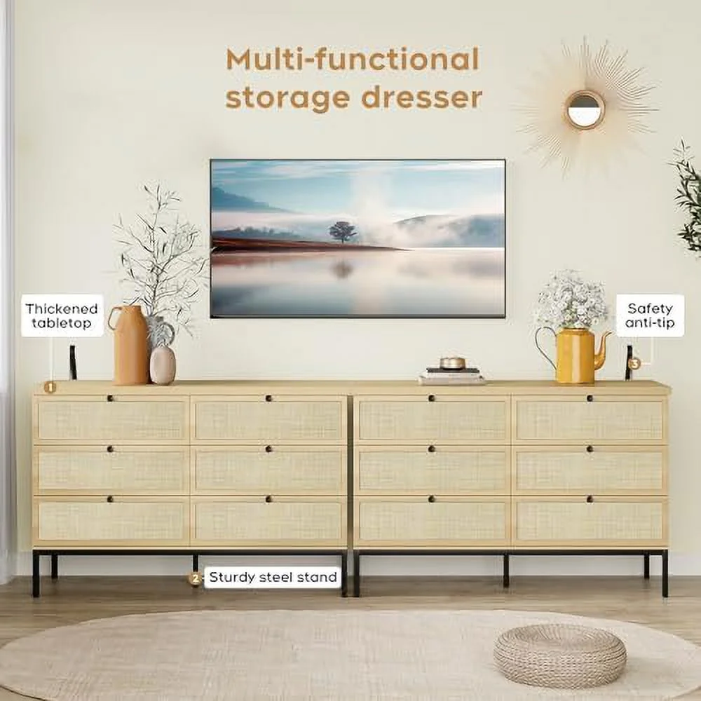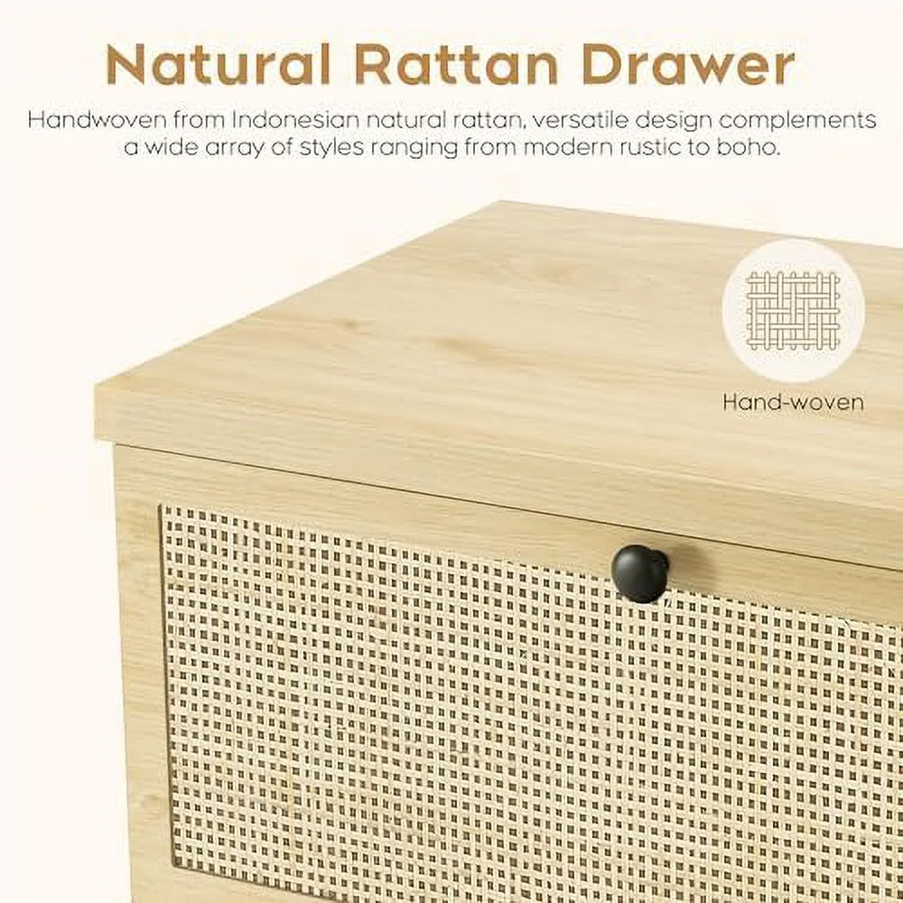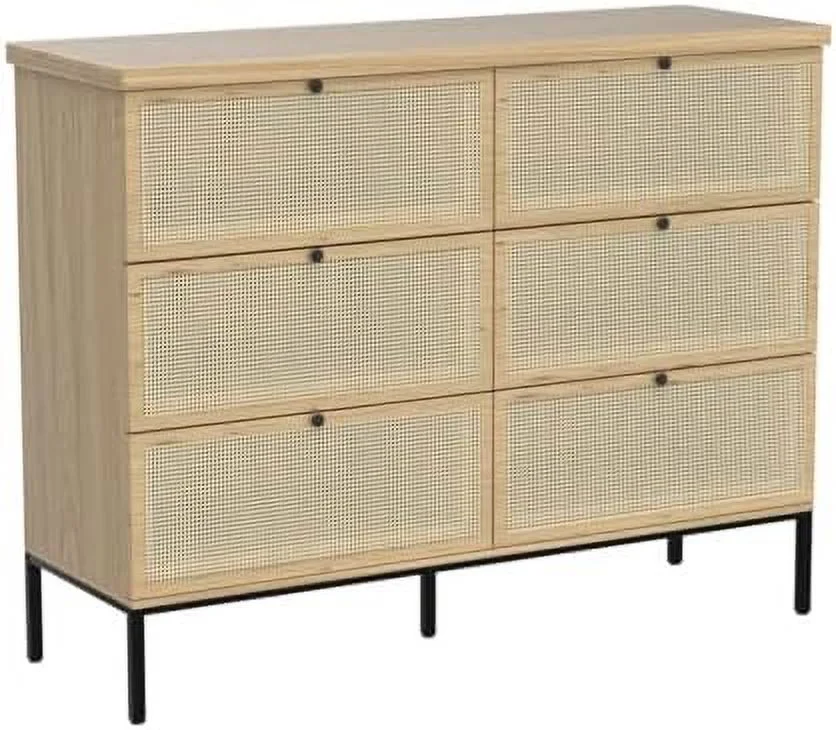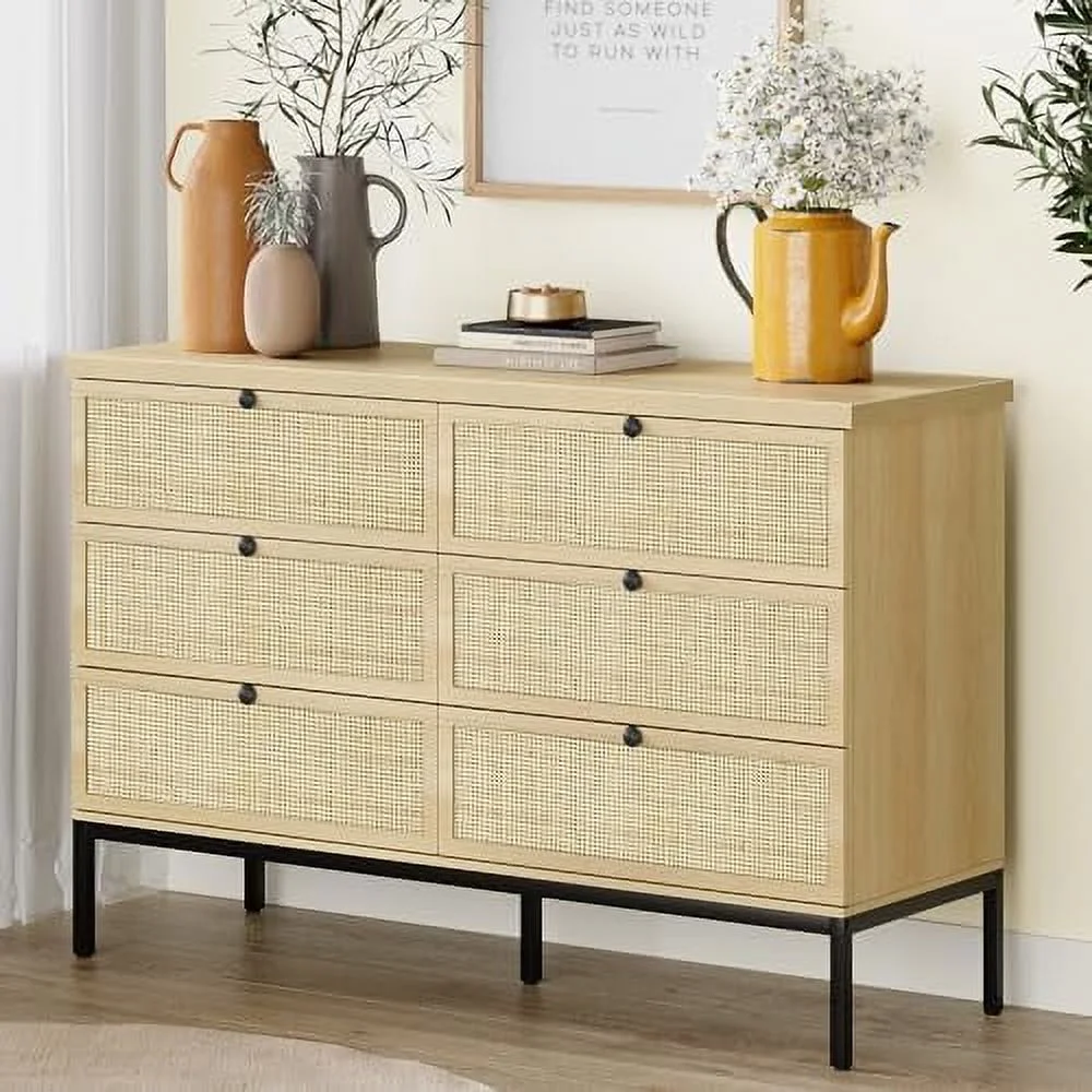 Glavbiku Modern Rattan Dresser for Bedroom with 6 Drawers,Wood Storage Cabinet,Natural Cherry,Adult