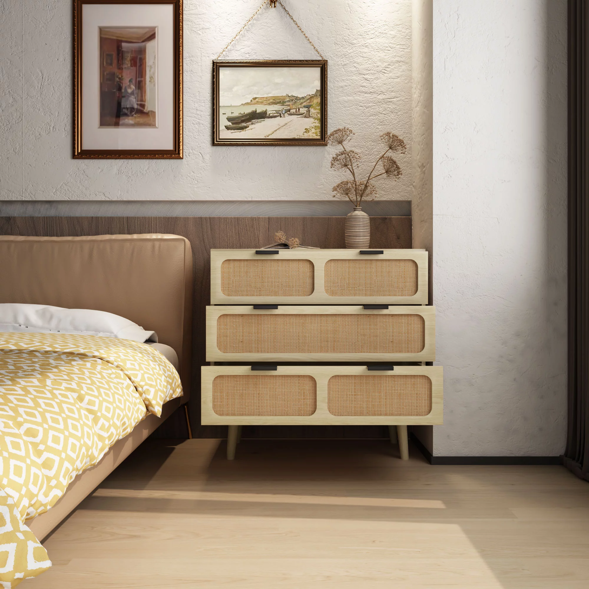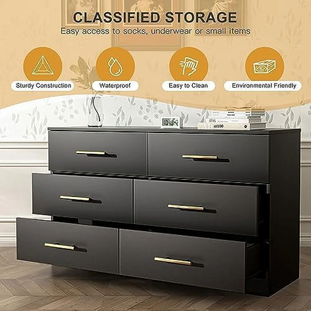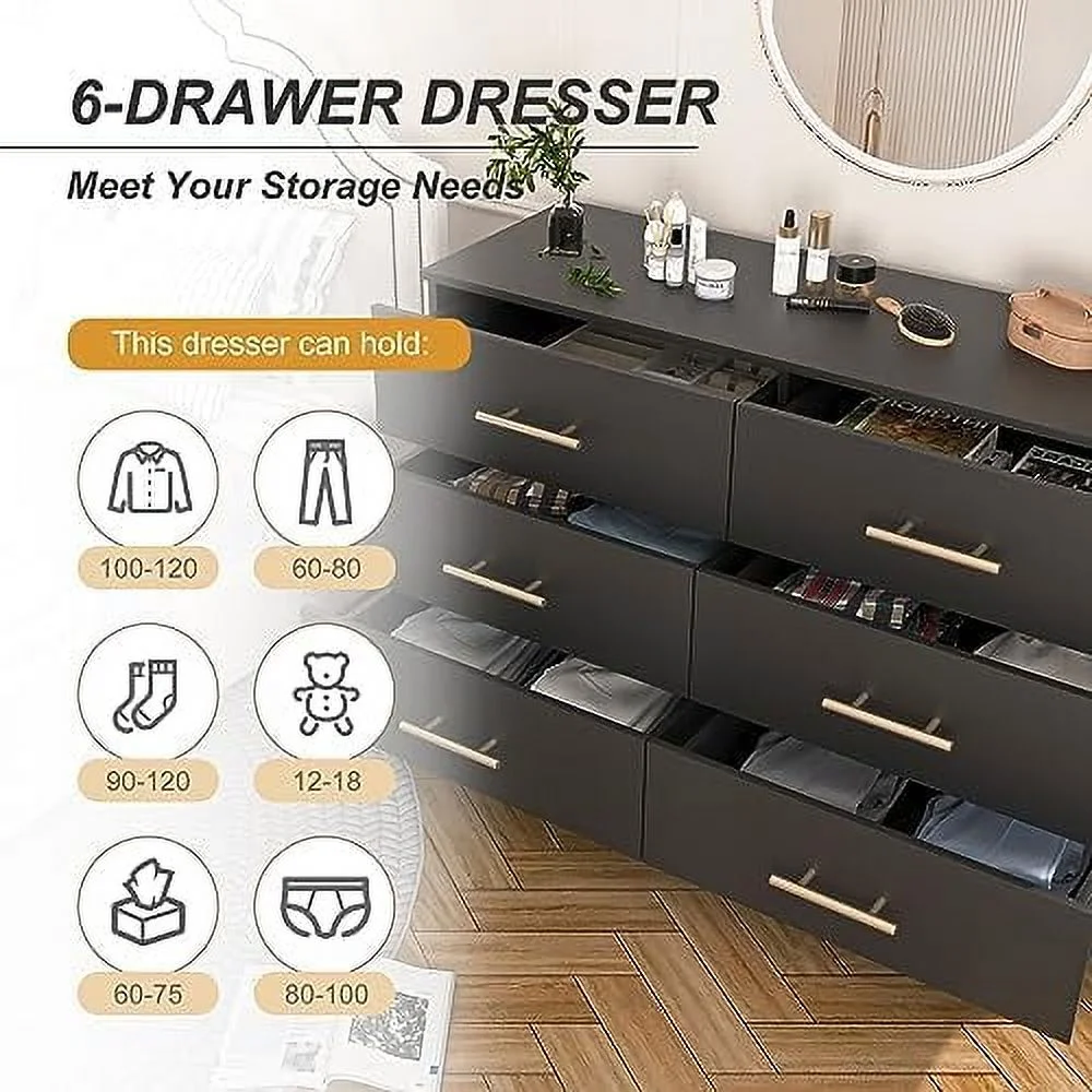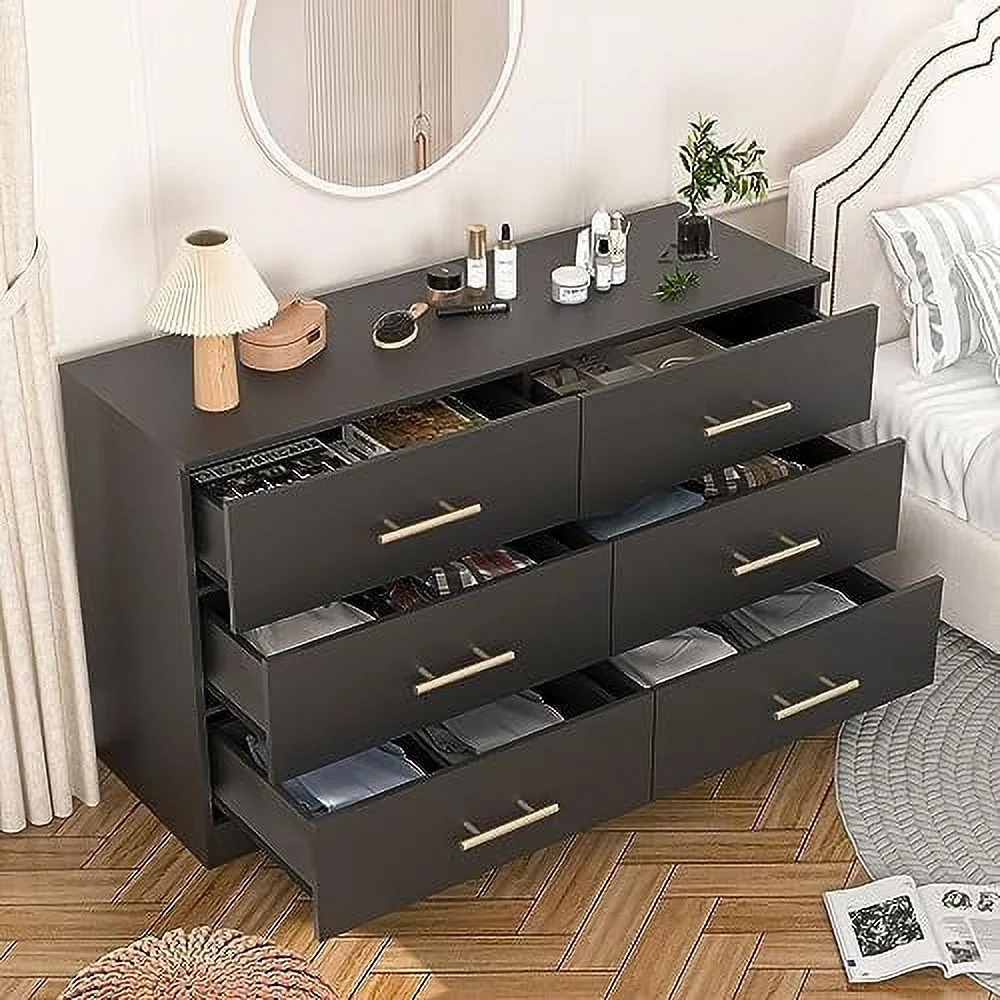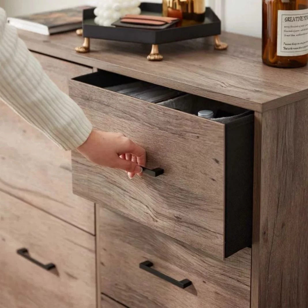 Glavbiku Modern Rattan Dresser for Bedroom with 6 Drawers,Wood Storage Cabinet,Natural Cherry,Adult