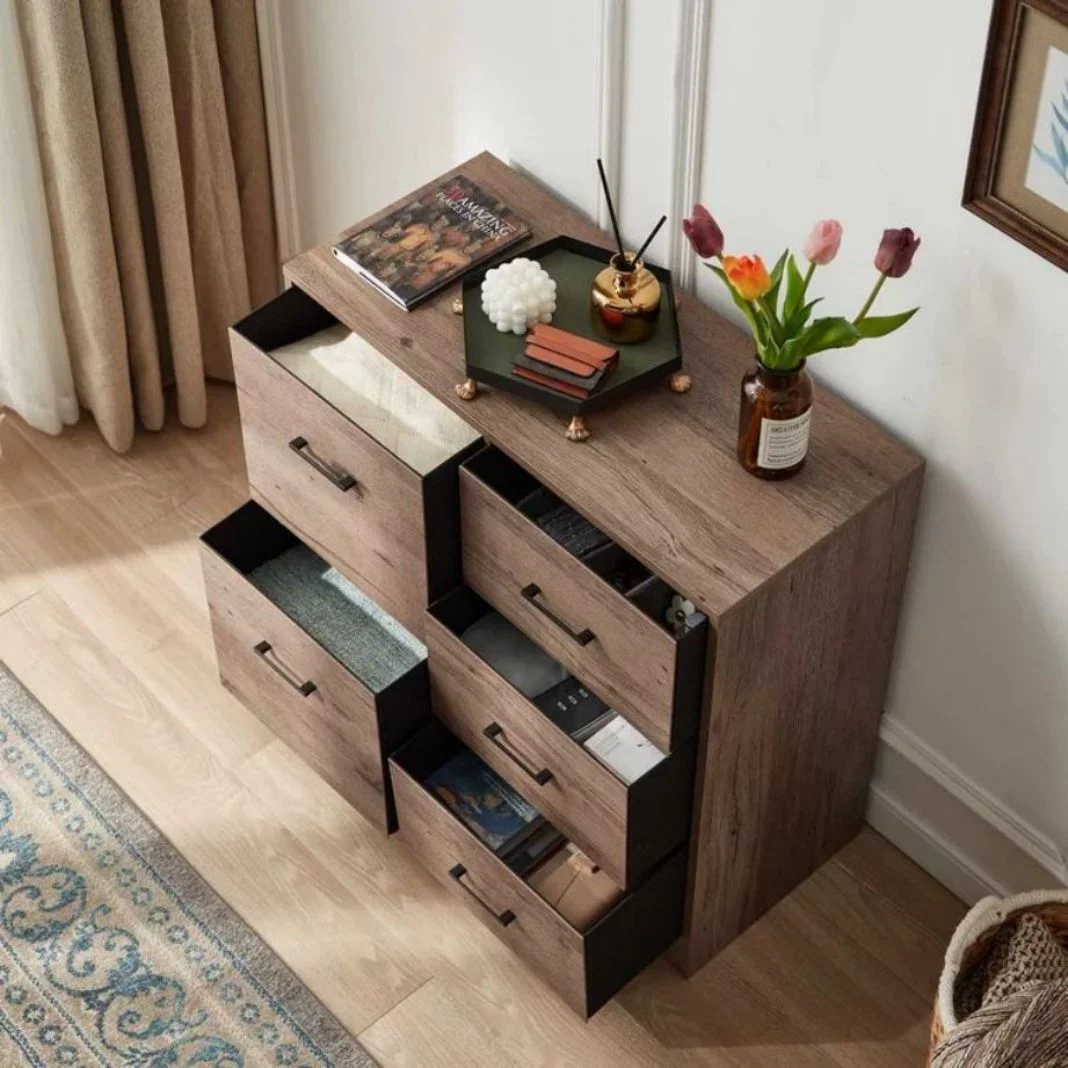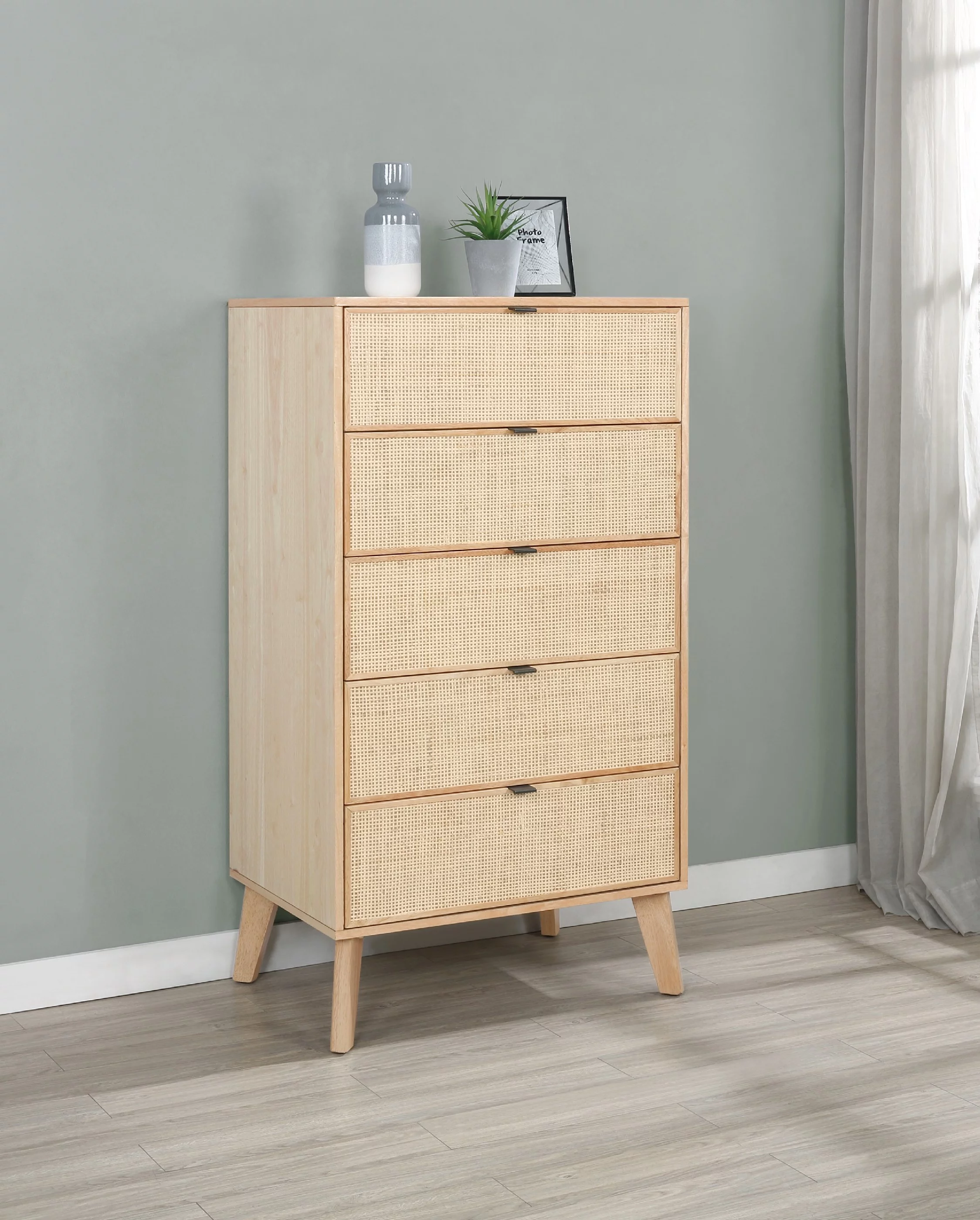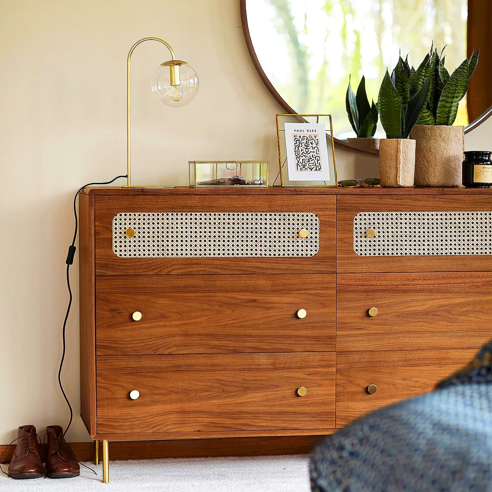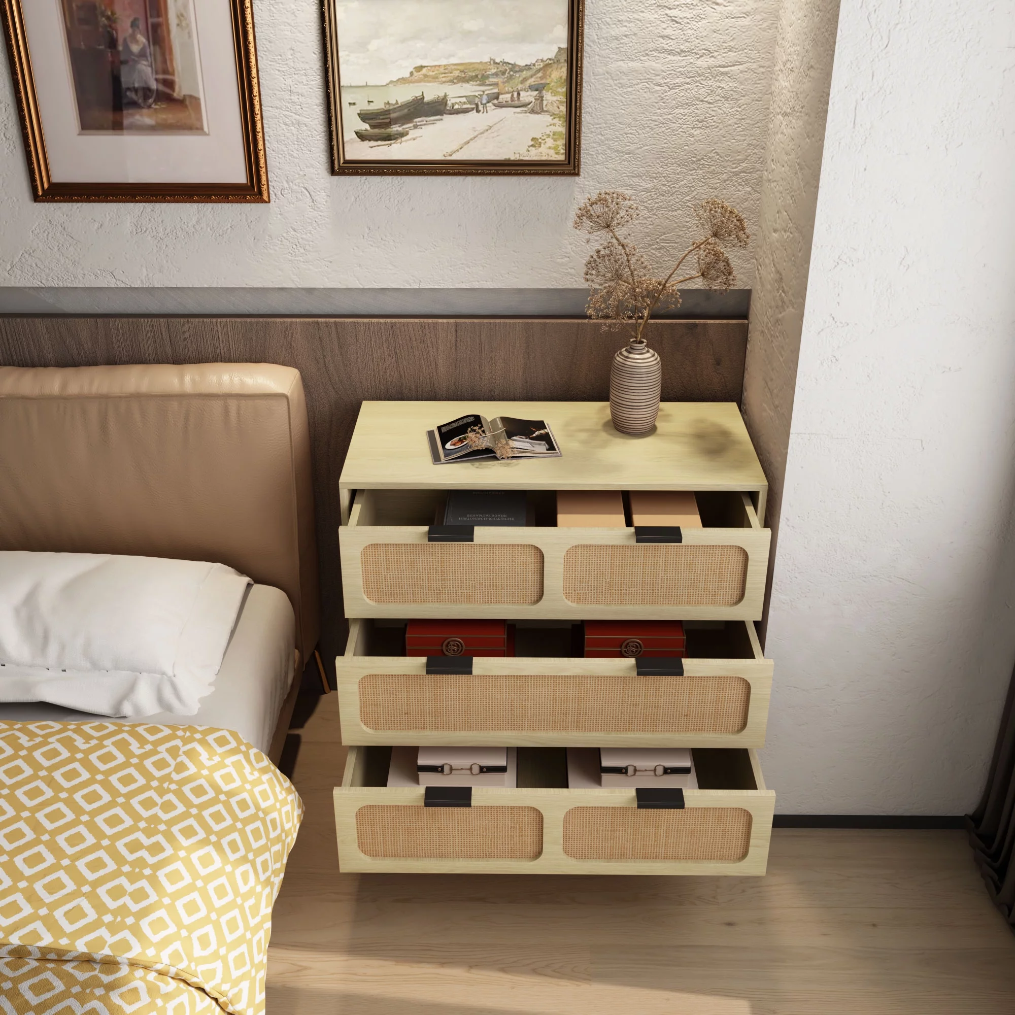 Glavbiku Modern Rattan Dresser for Bedroom with 6 Drawers,Wood Storage Cabinet,Natural Cherry,Adult