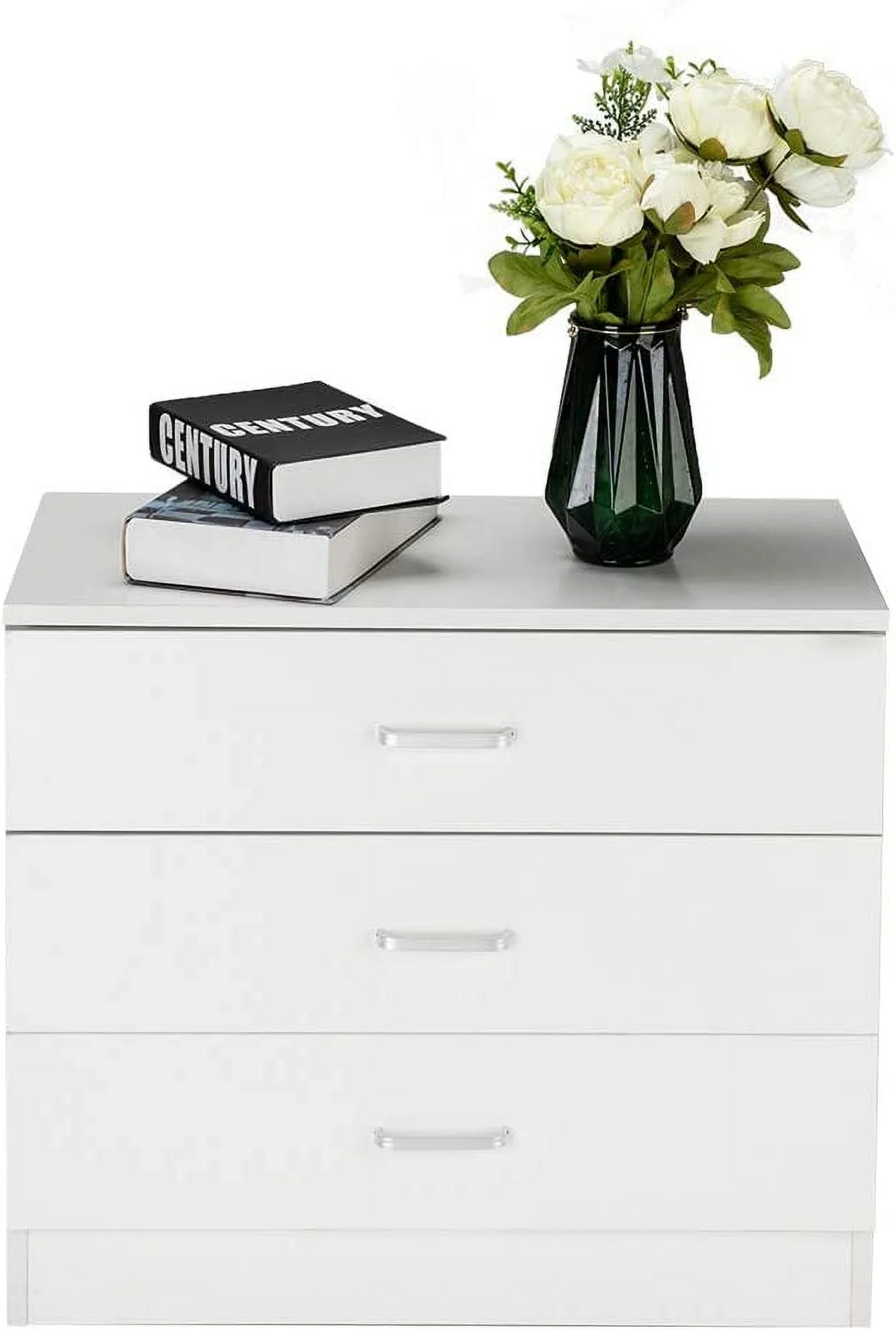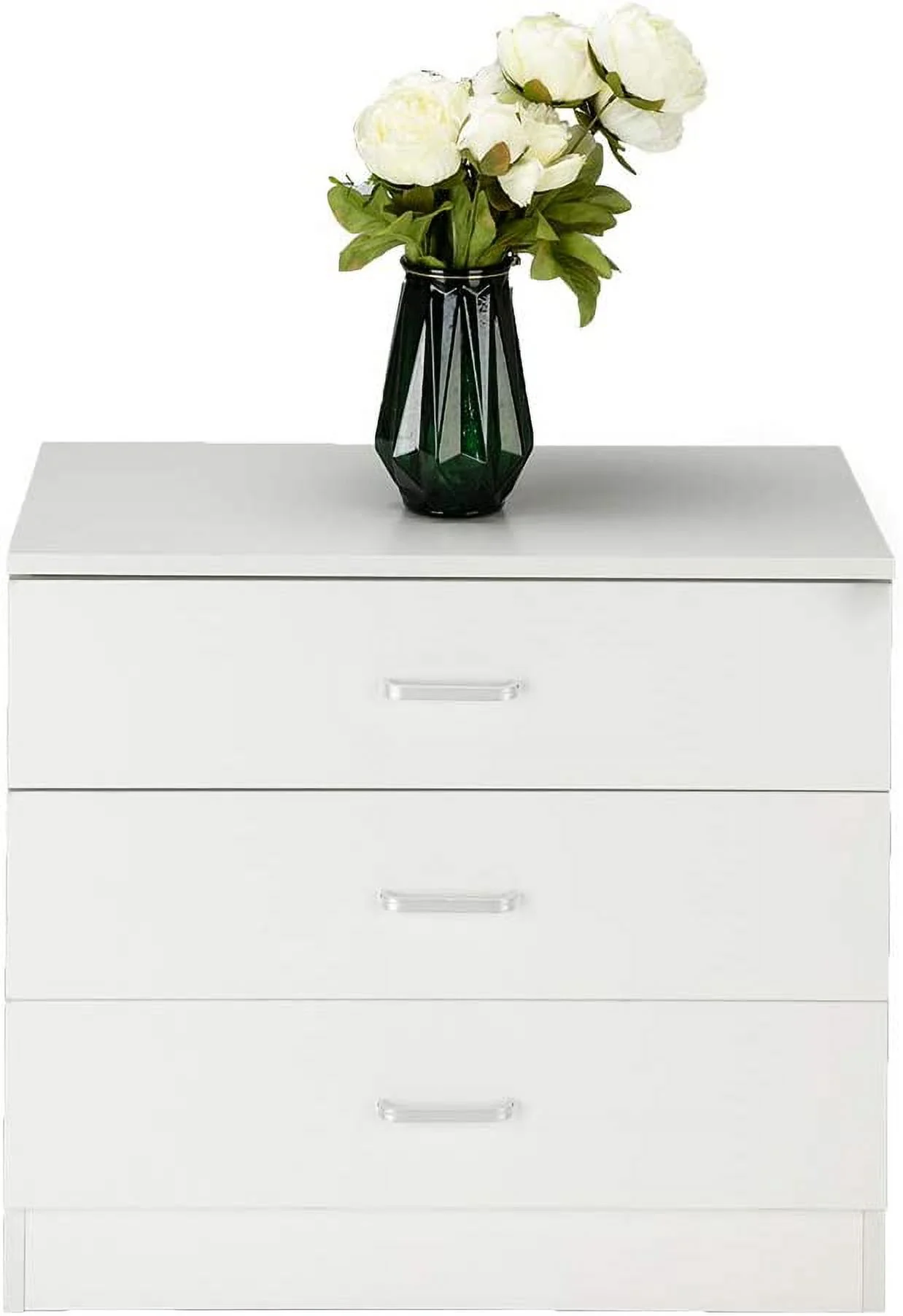 3pc Bedroom Set Elegant Classic Full Size Bed 2x Nighstands One Shelf and drawer Bedside Table White Tufted Faux Leather