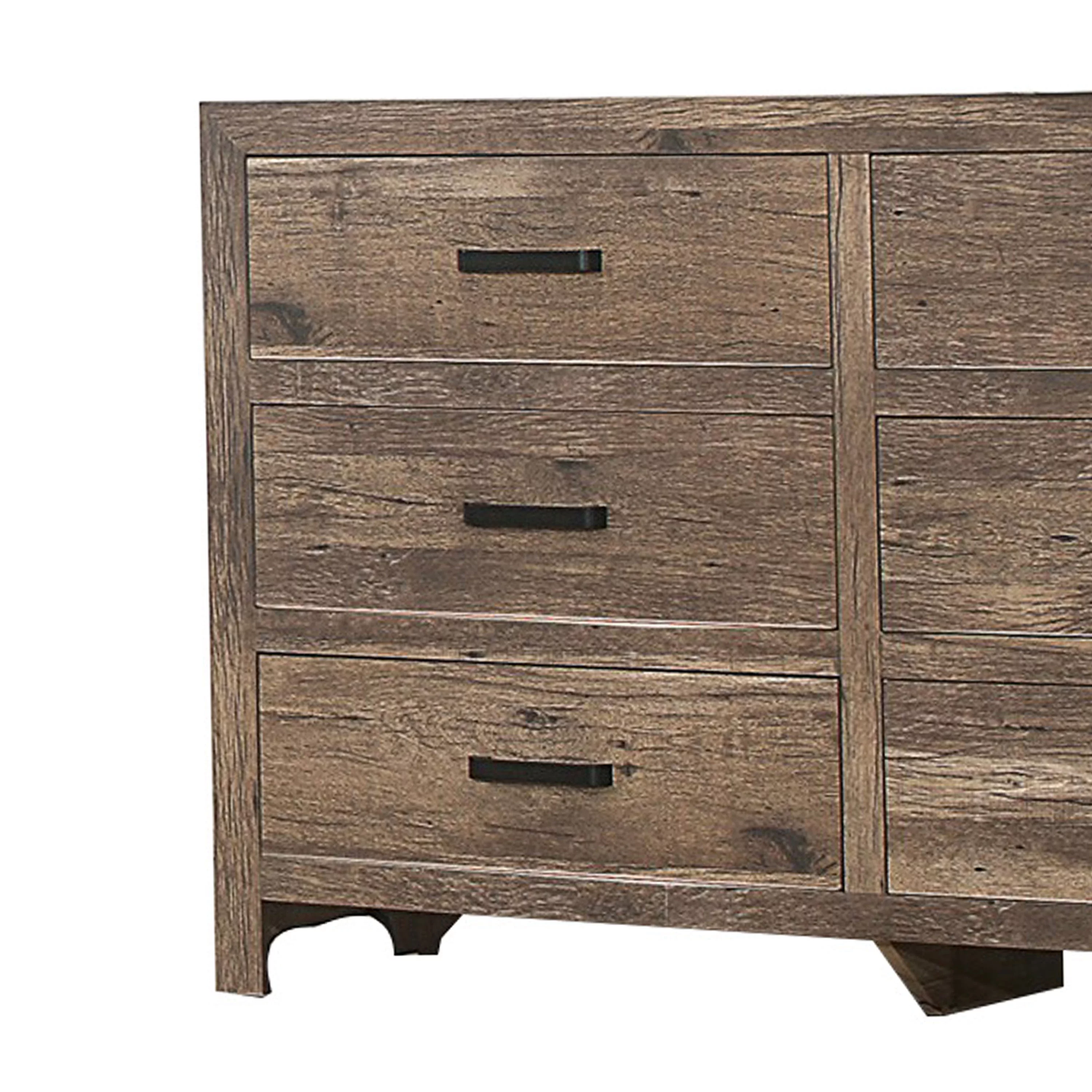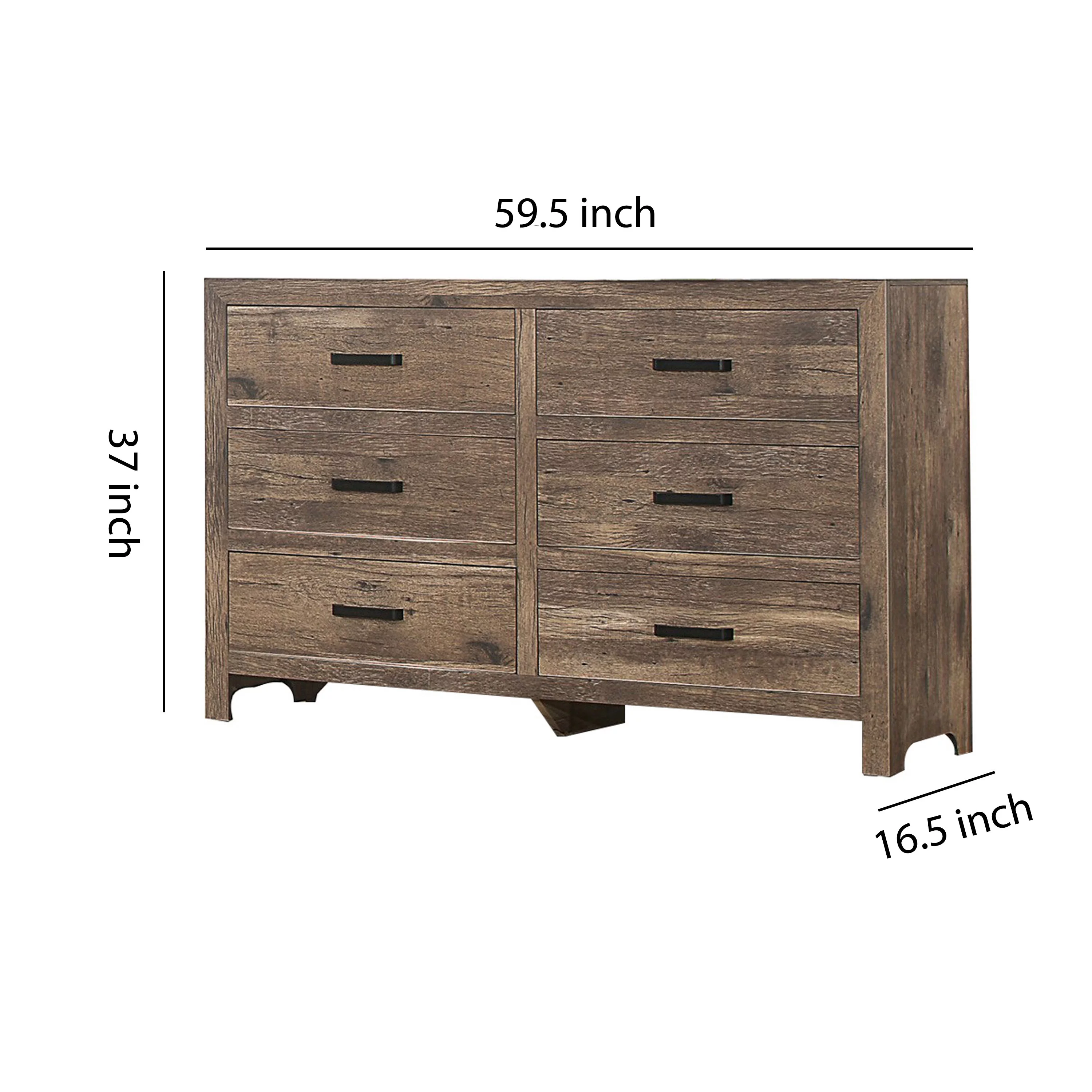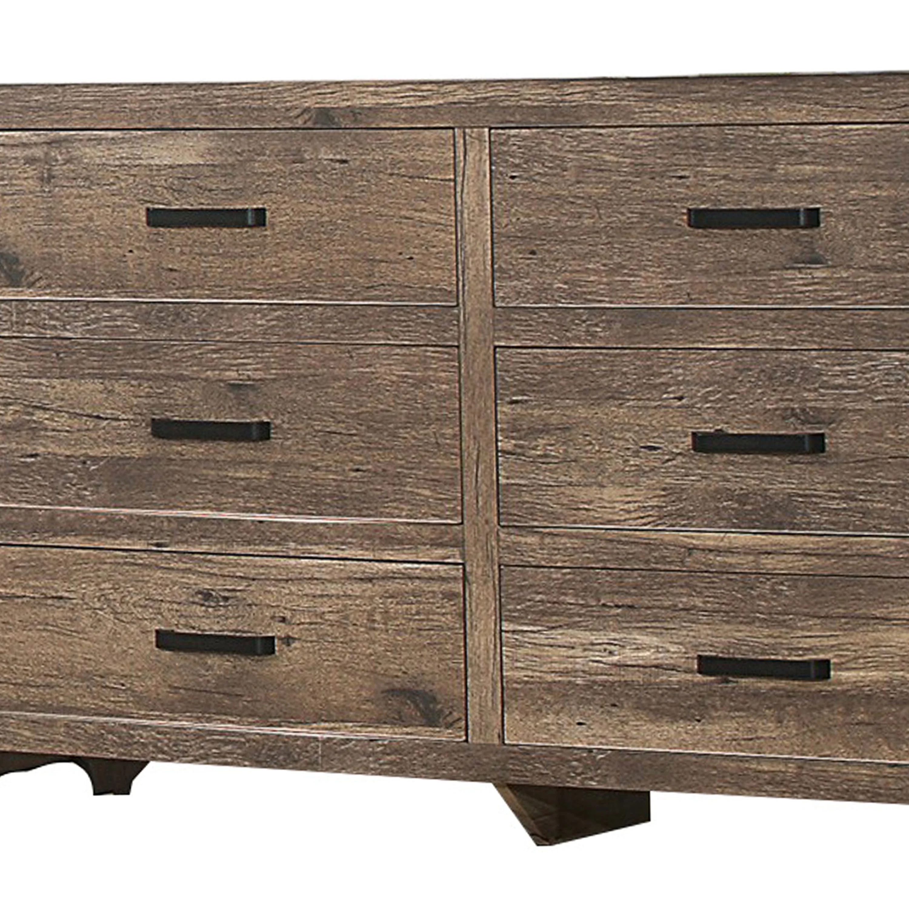 59 Inch 6 Drawer Wood Dresser, Natural Grain Details, Weathered Pine Brown
