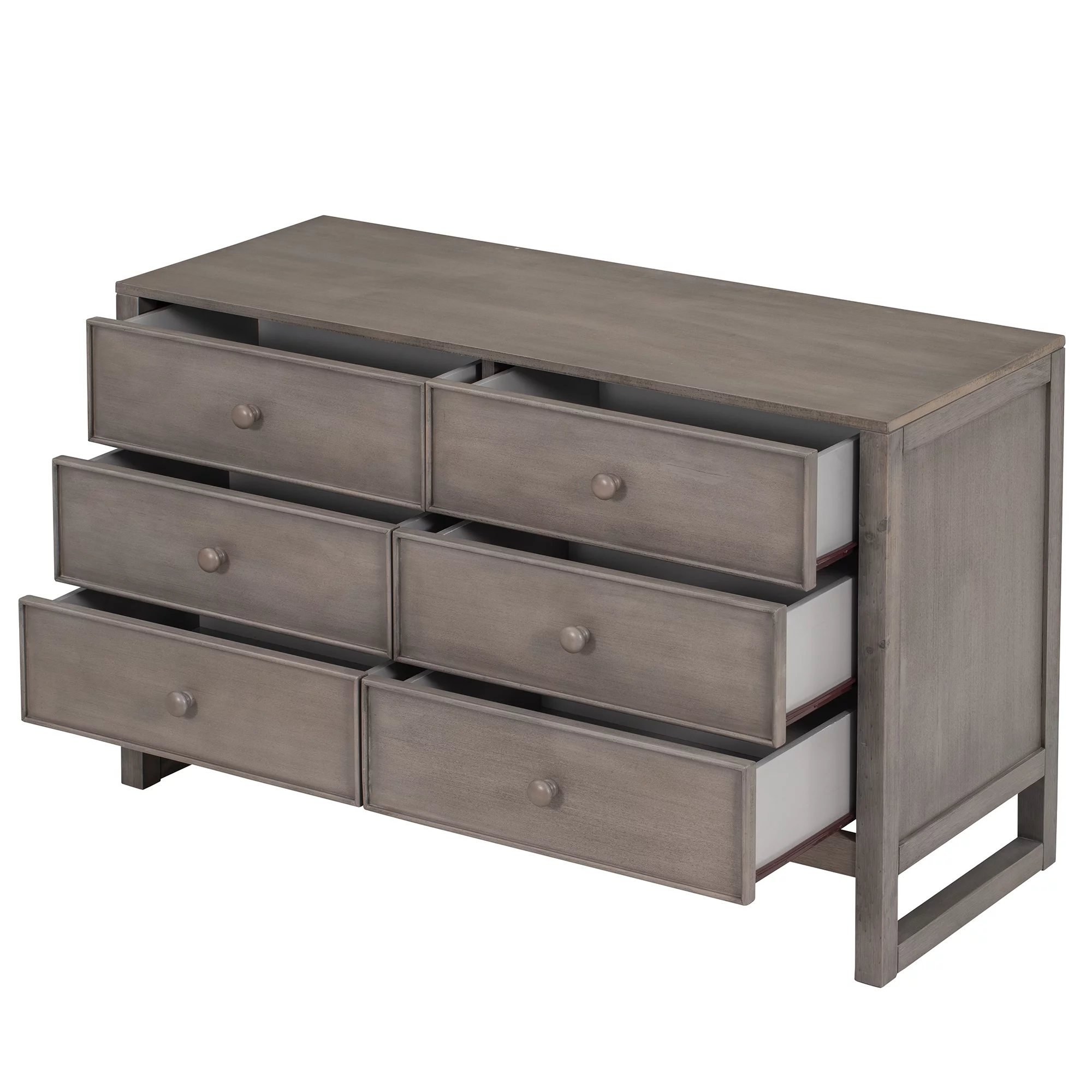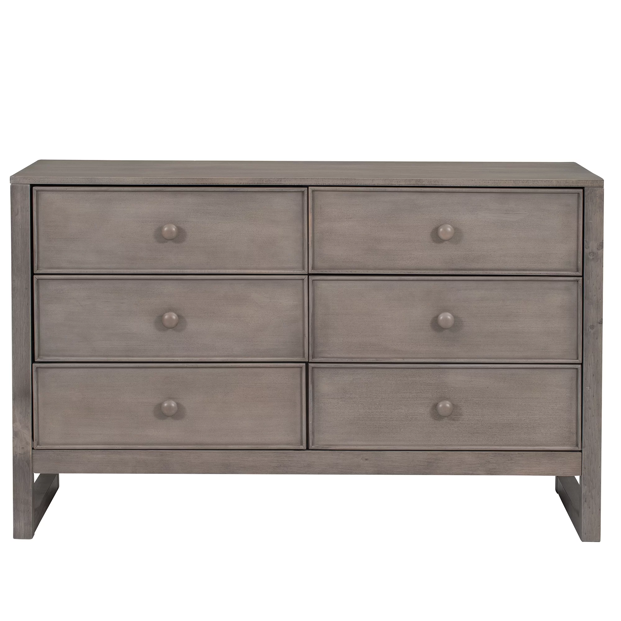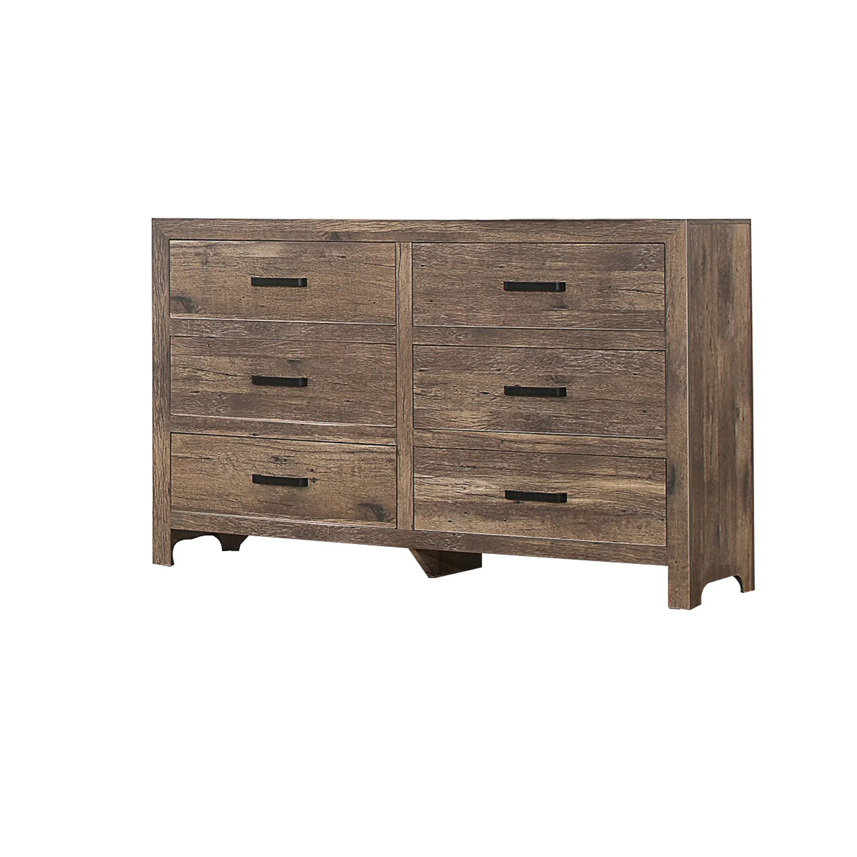 59 Inch 6 Drawer Wood Dresser, Natural Grain Details, Weathered Pine Brown