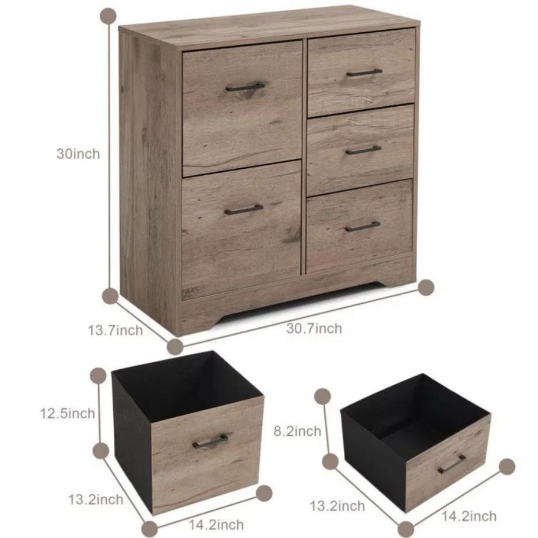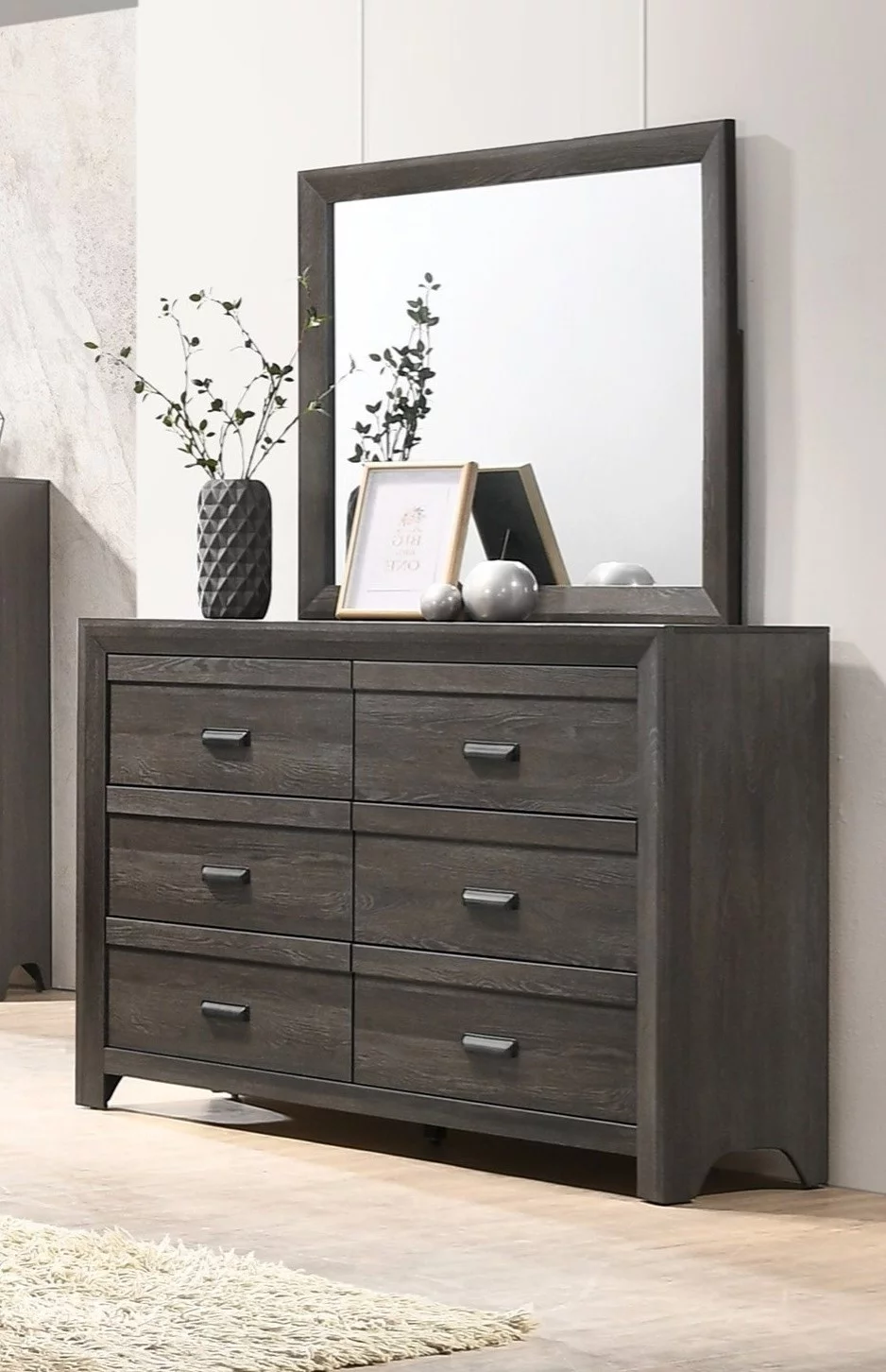 Modern 5pc Bedroom Set Full Size Bed Dresser Nightstand Mirror Chest Transitional Gray Finish Rustic Style