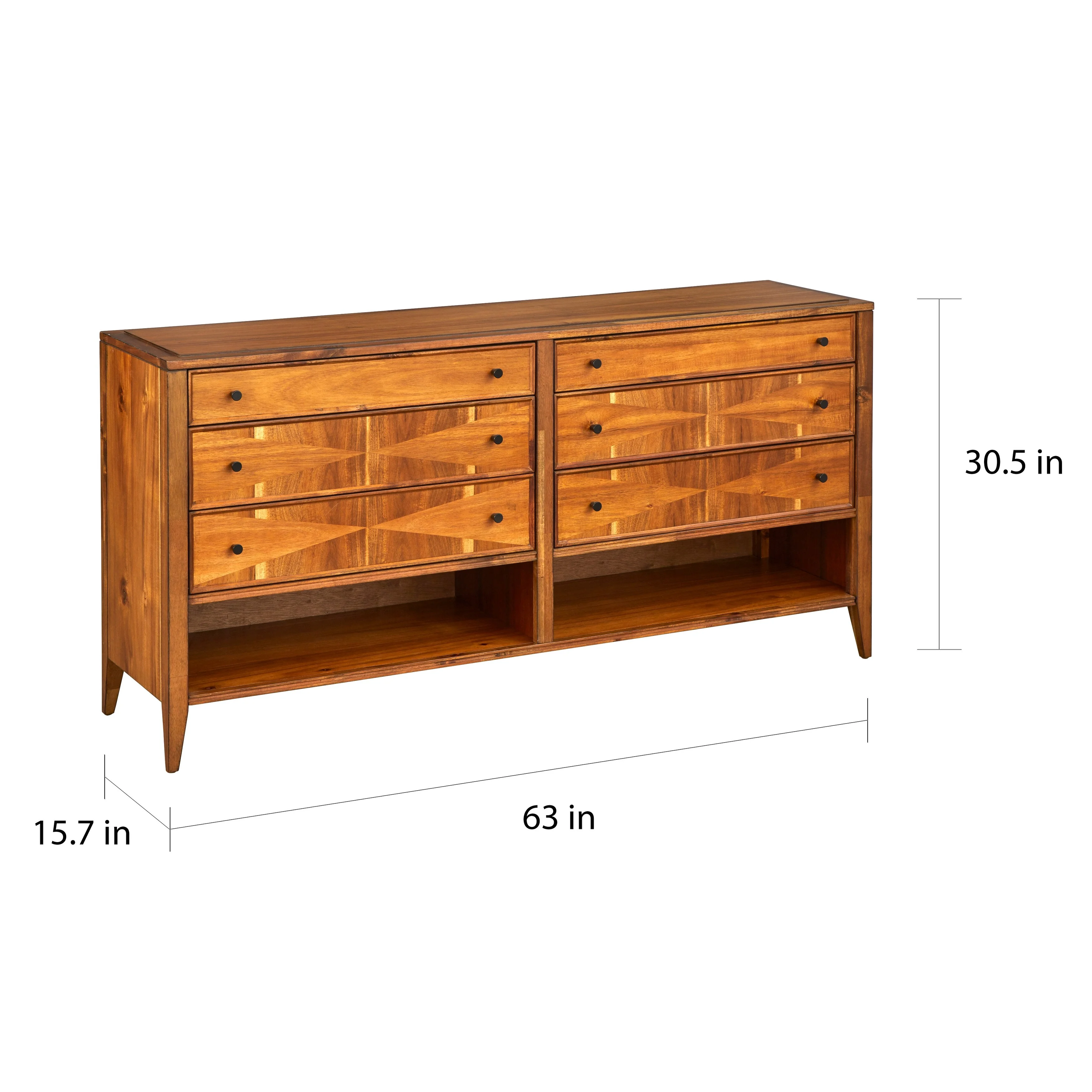Benzara Wooden Frame Dresser with 6 Drawers and Straight Legs, Hazelnut Brown