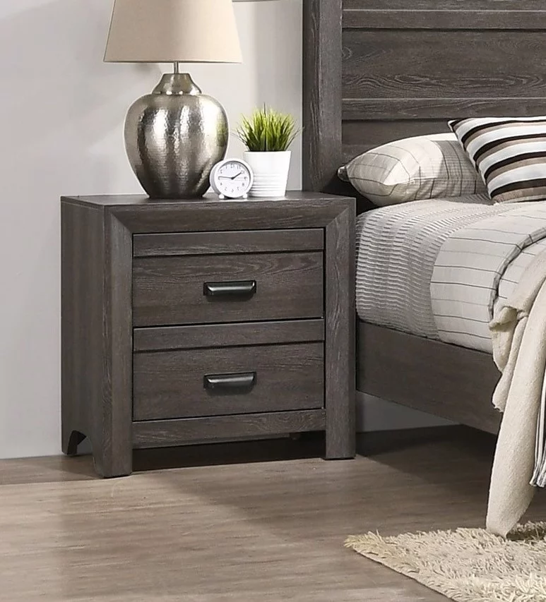 Contemporary 3pc Bedroom Set Gray Finish Full Size Bed Nightstand Wooden Guest Bedroom Furniture