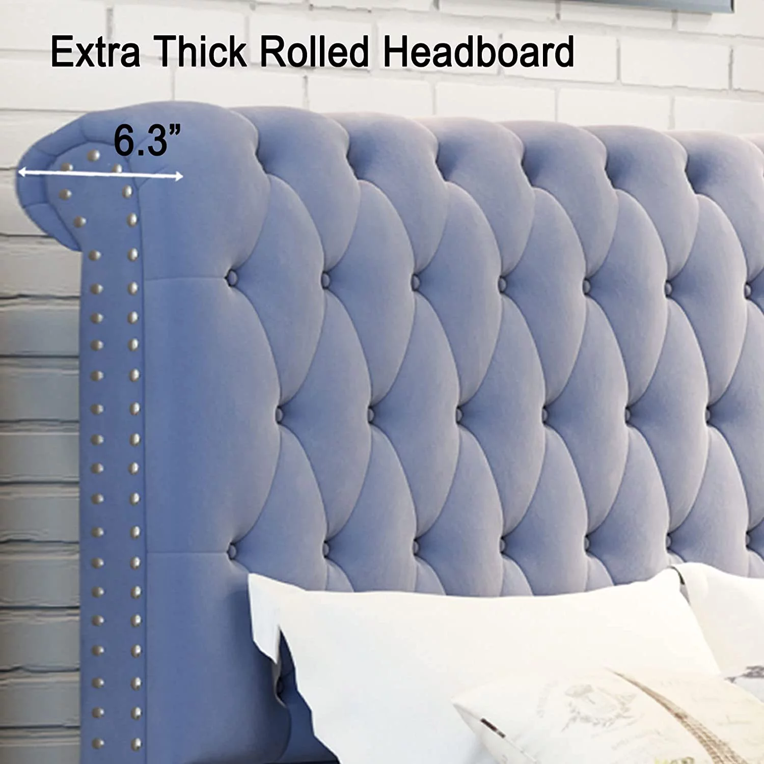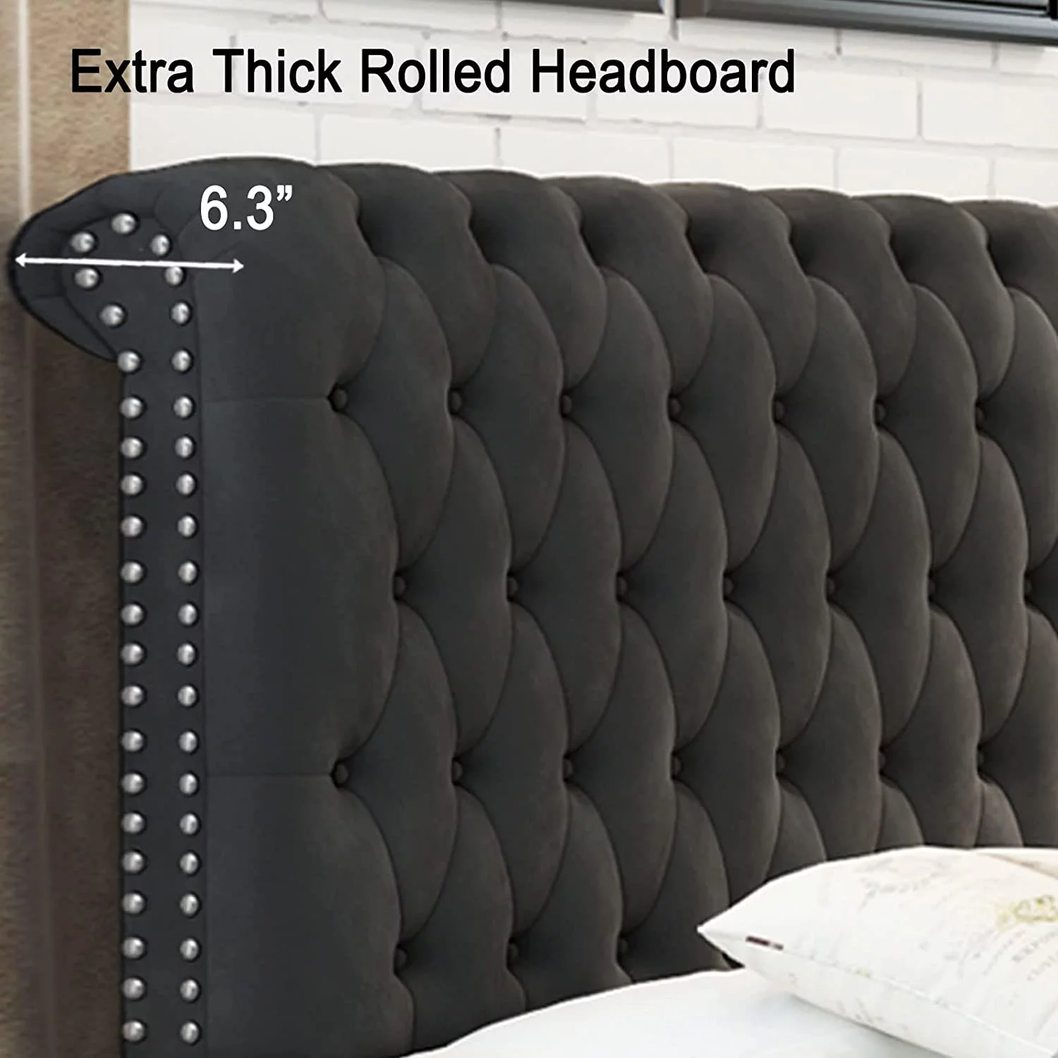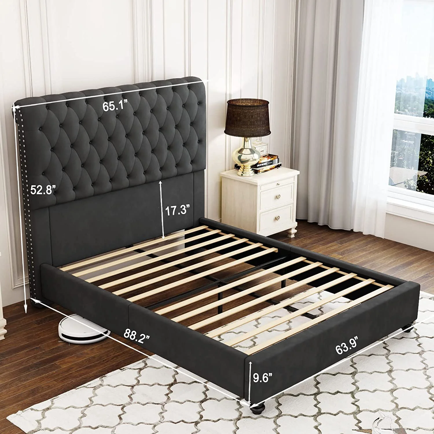 Platform Bed Frame King Size Velvet Upholstered Sleigh Bed Button Tufted Headborad/No Box Spring Needed/Black