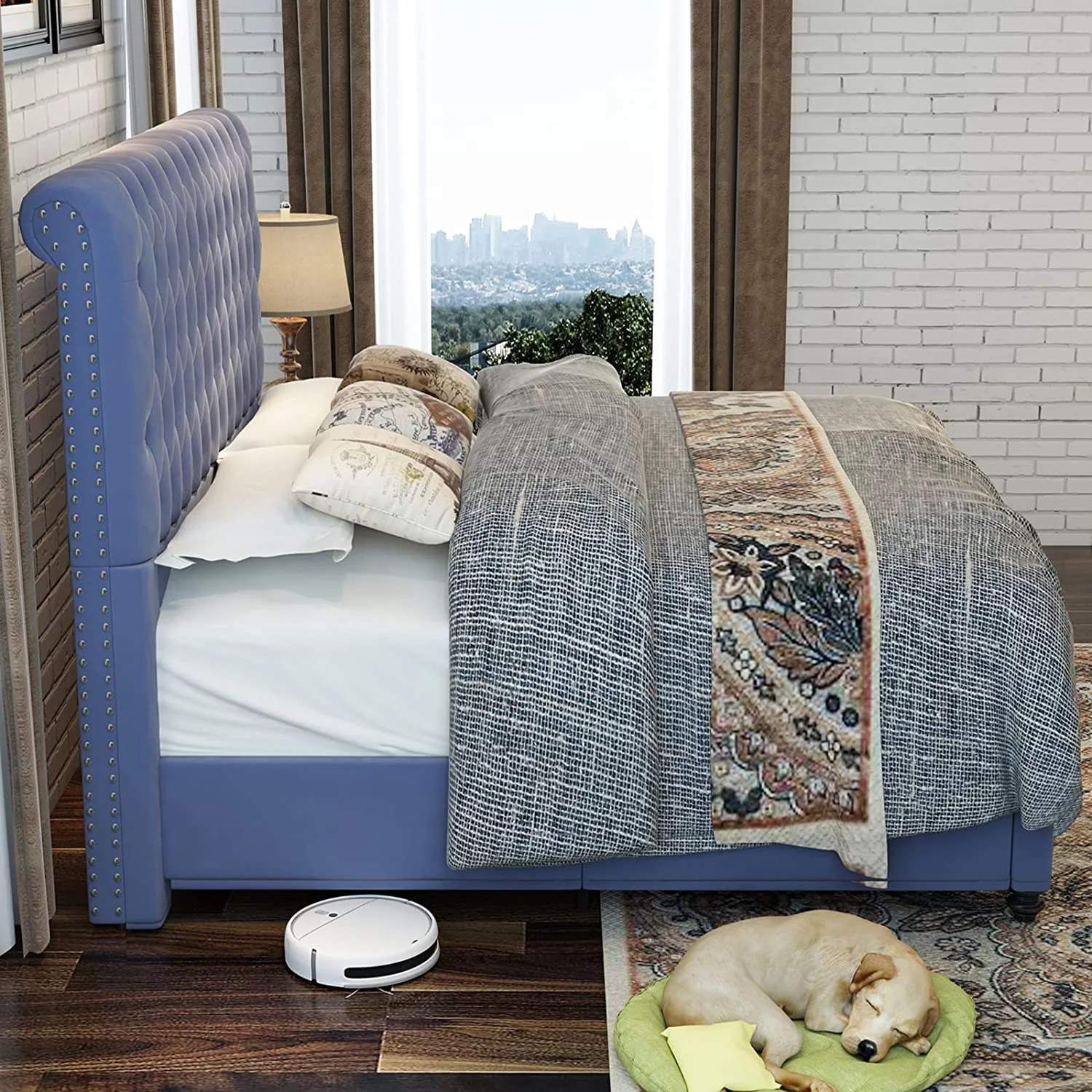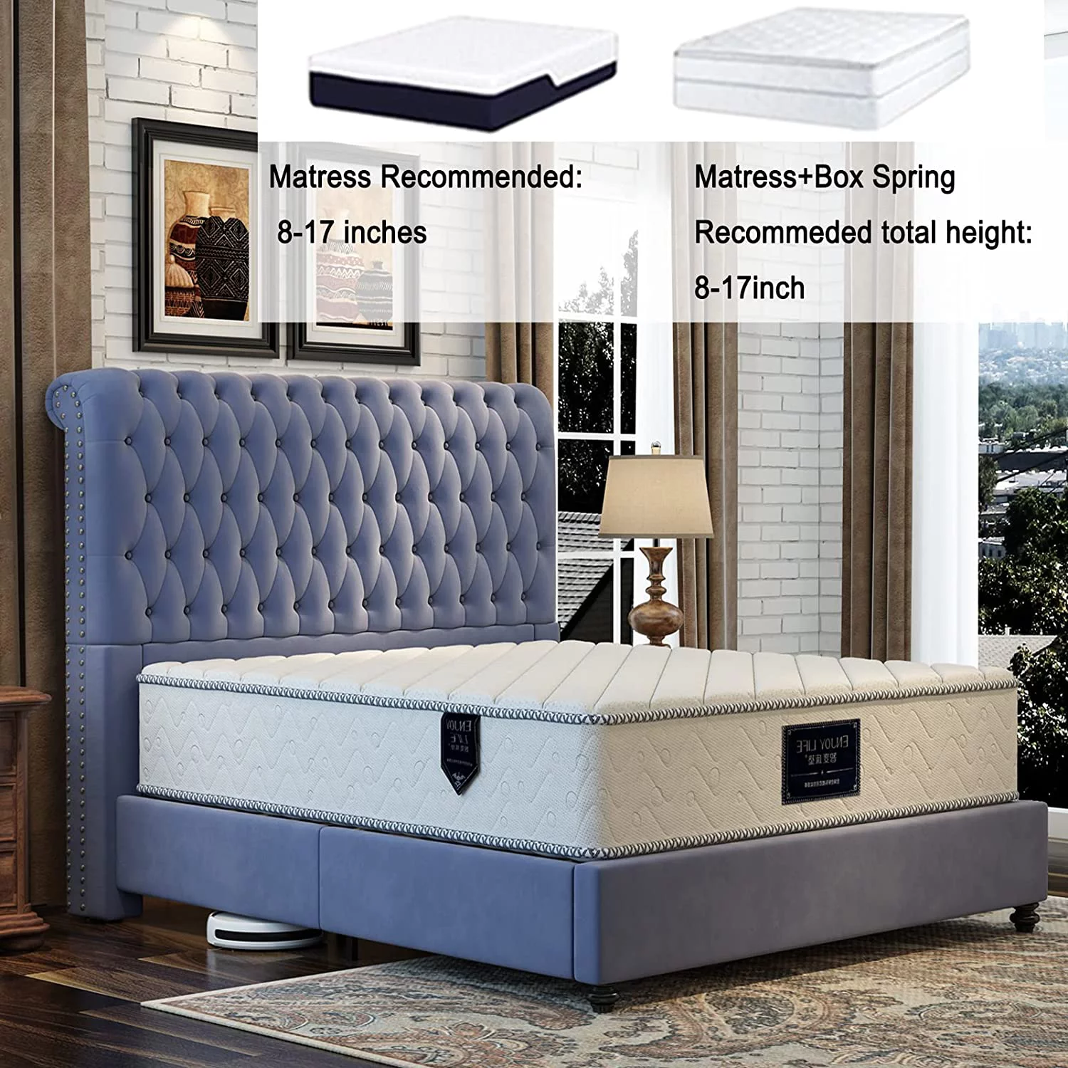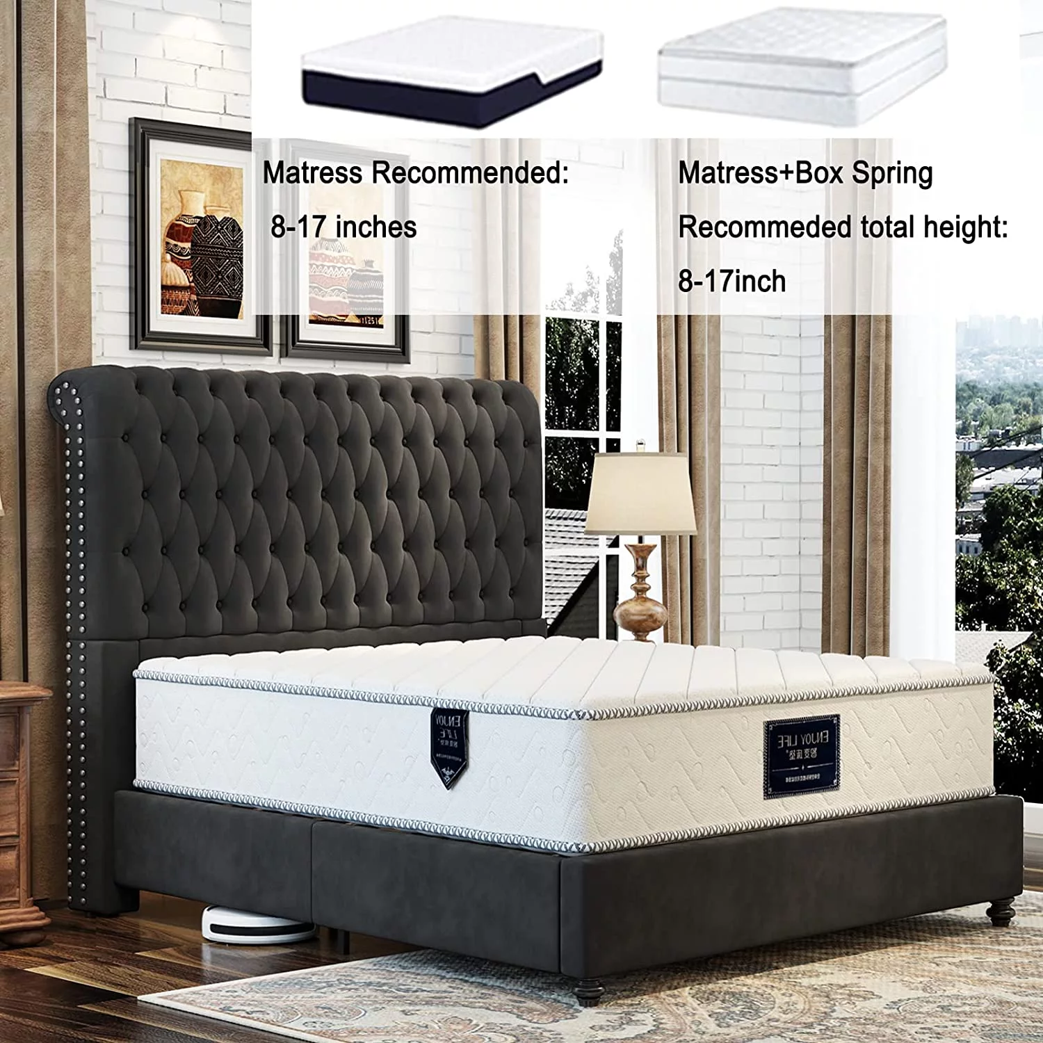Platform Bed Frame King Size Velvet Upholstered Sleigh Bed Button Tufted Headborad/No Box Spring Needed/Black