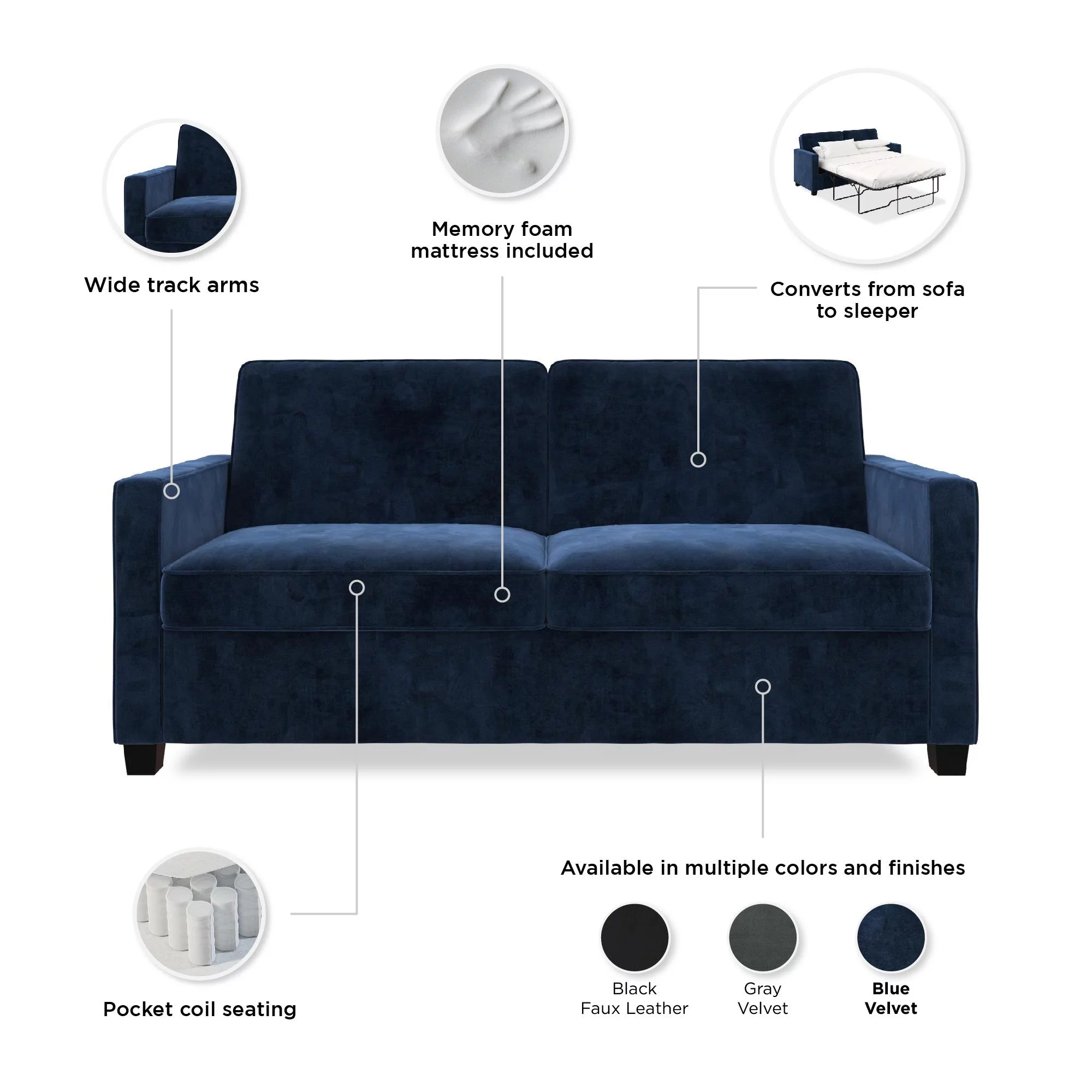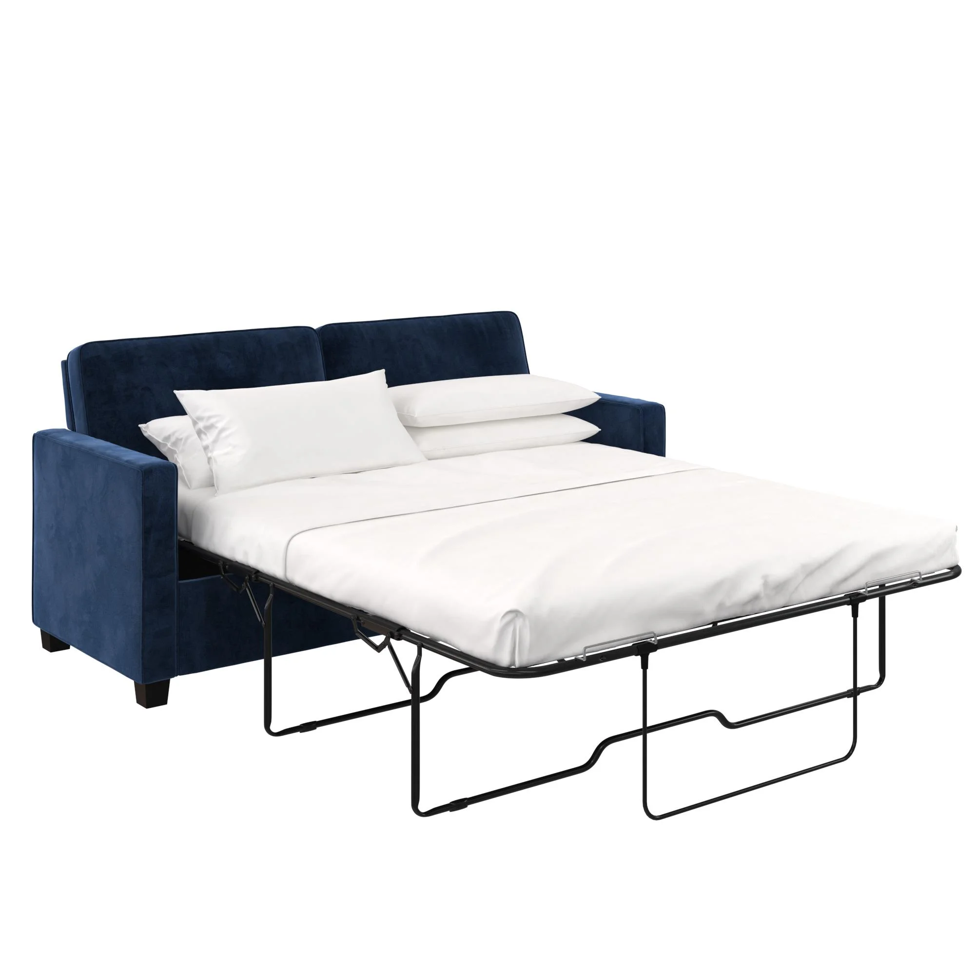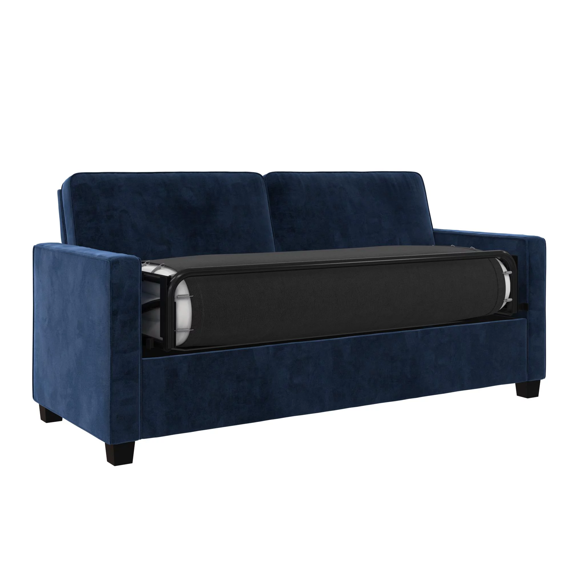 DHP Cooper Sofa Sleeper with Queen Memory Foam Mattress, Blue Velvet