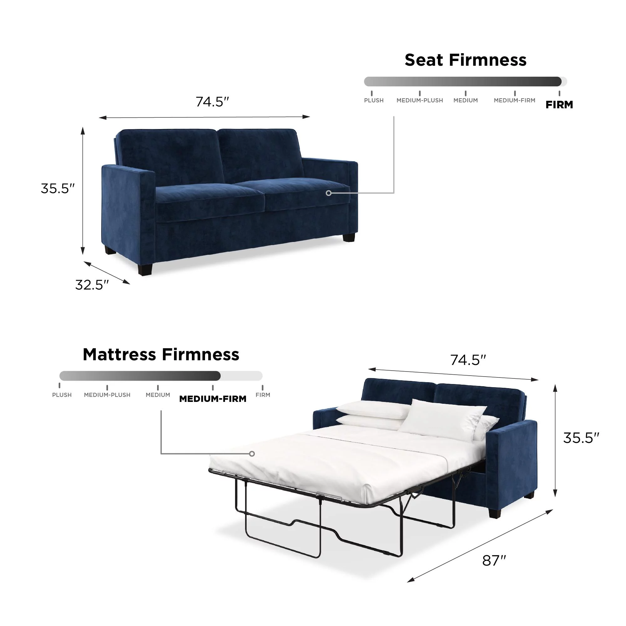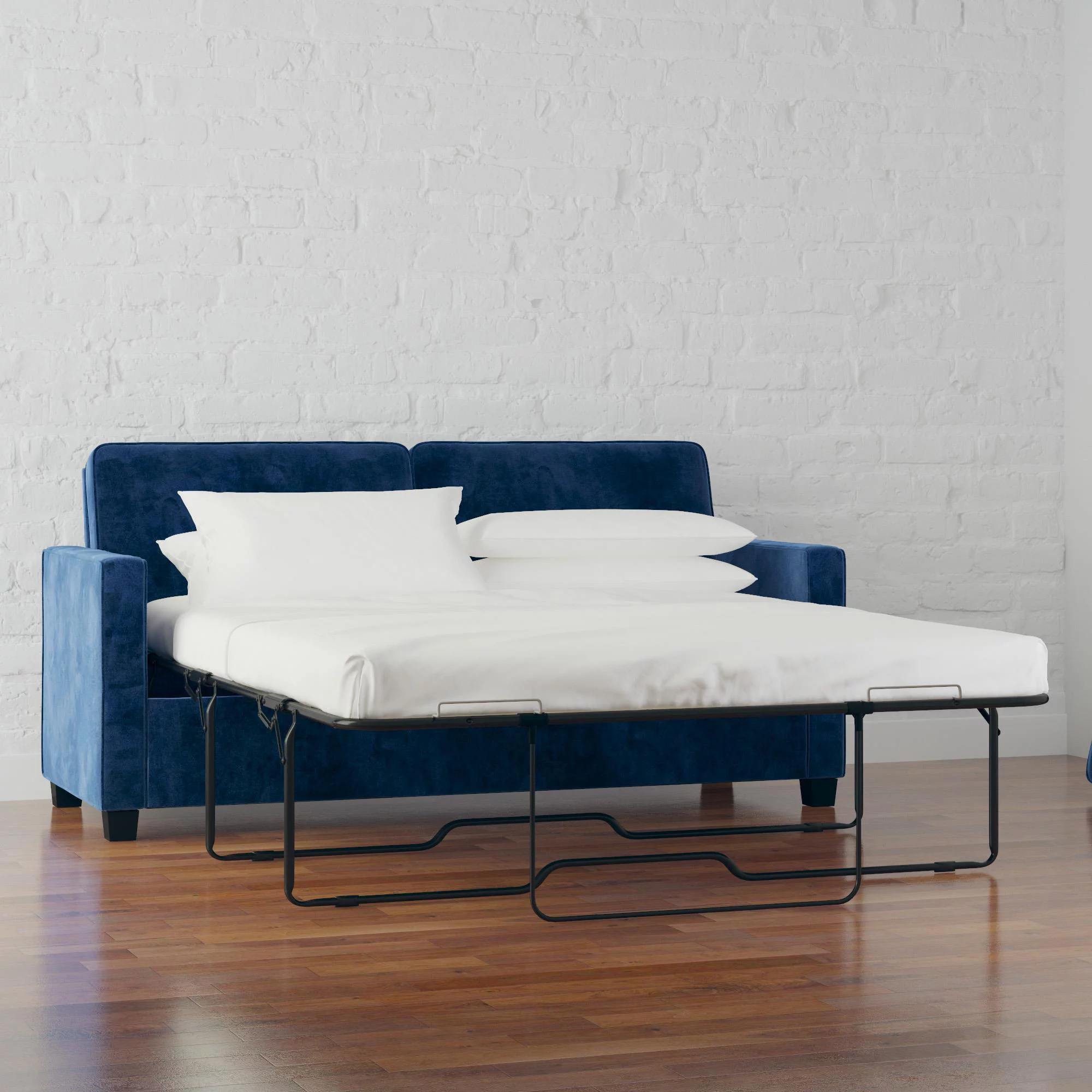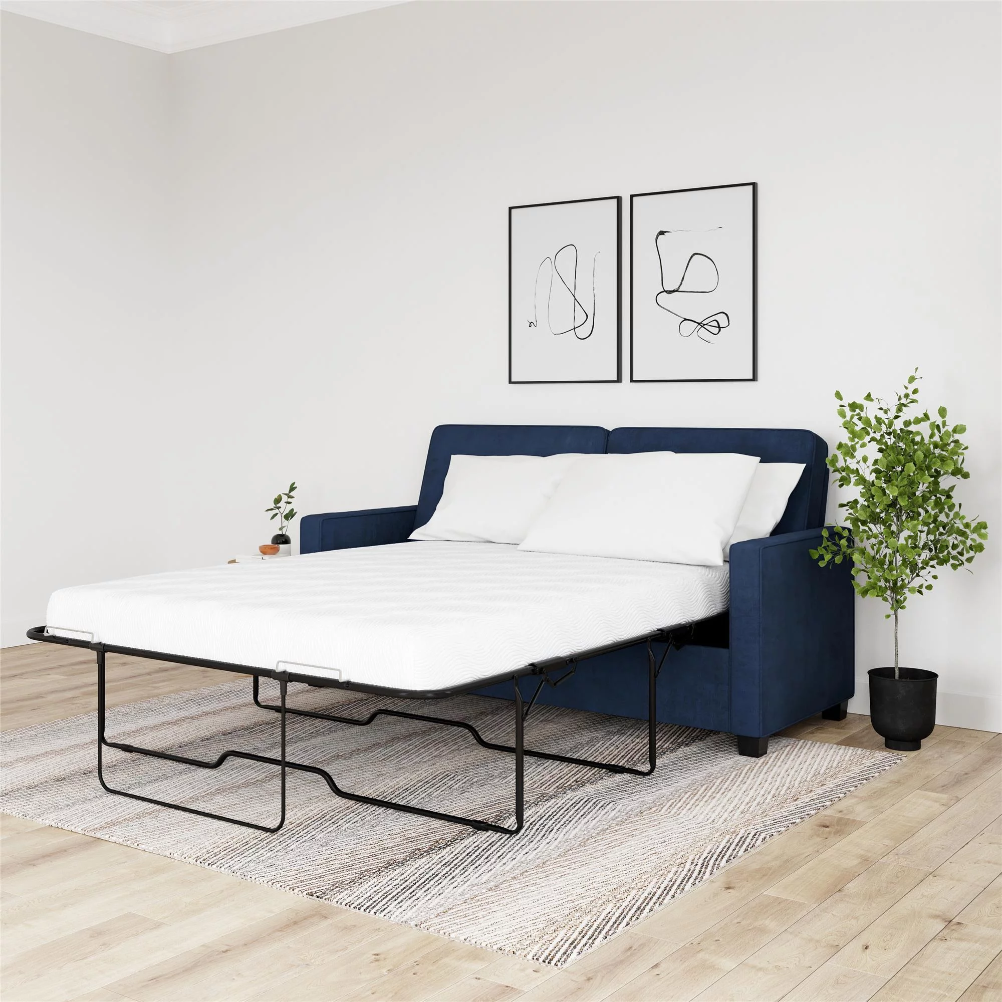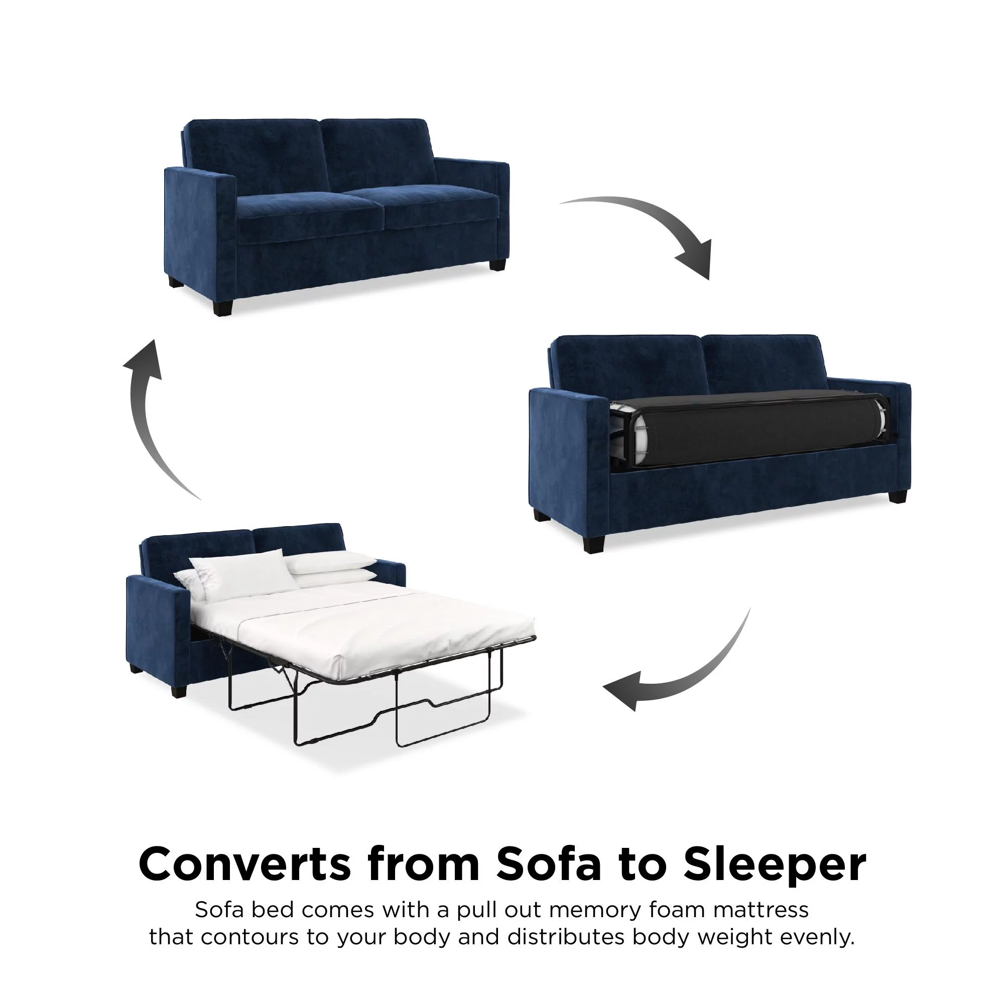DHP Cooper Sofa Sleeper with Queen Memory Foam Mattress, Blue Velvet