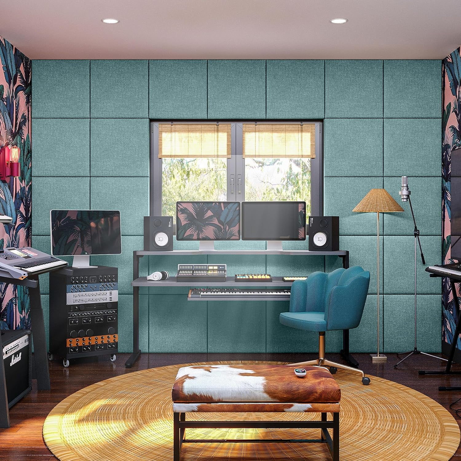 Panelist Modern Padded Headboard- Wall Mounted Panel (22.5" X 22.5") - Microvelvet Surf Turquoise
