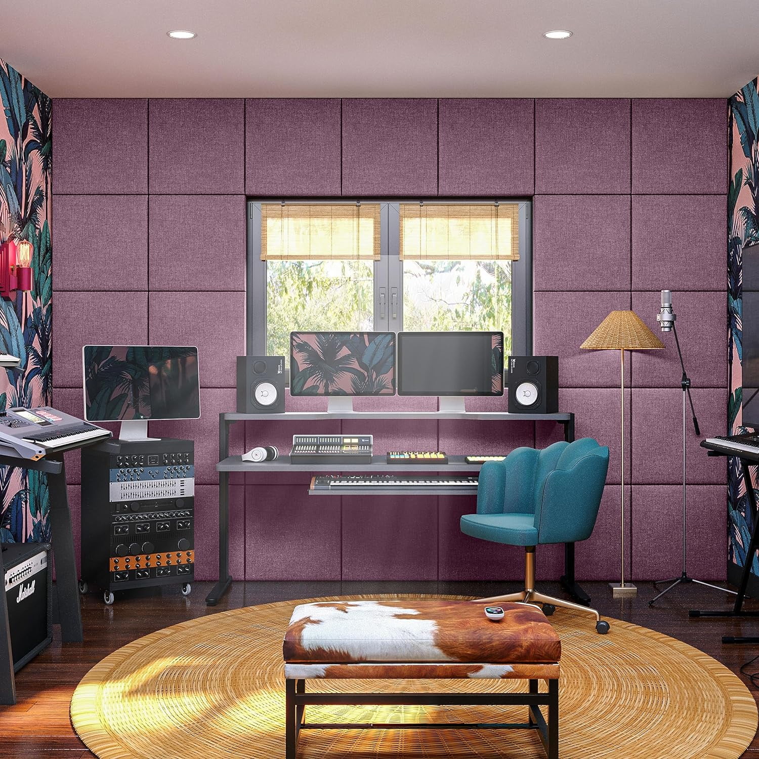 Panelist Modern Padded Headboard- Wall Mounted Panel (22.5" X 22.5") - Microvelvet Plum