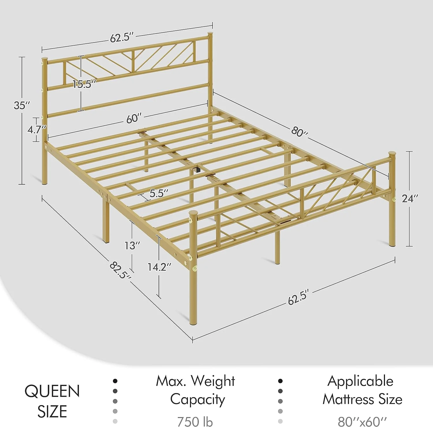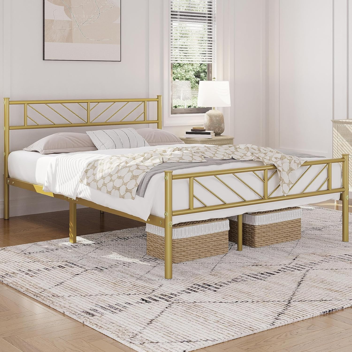 Javlergo Metal Platform Bed Frame with Headboard and Footboard, No Box Spring Needed Queen