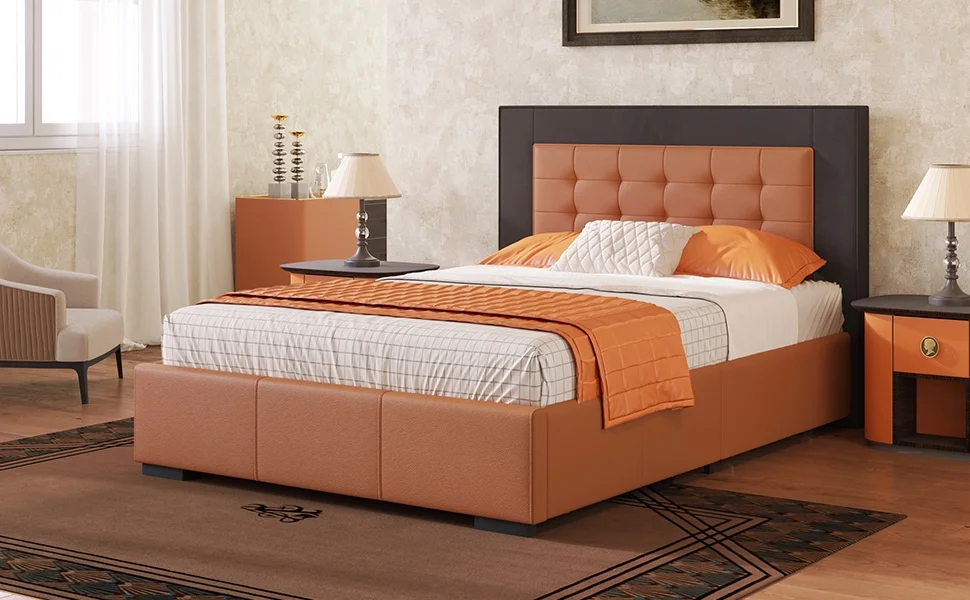 83 x 95 x 69 in. PU Champagne Wood Upholstered Headboard LED California King Bed