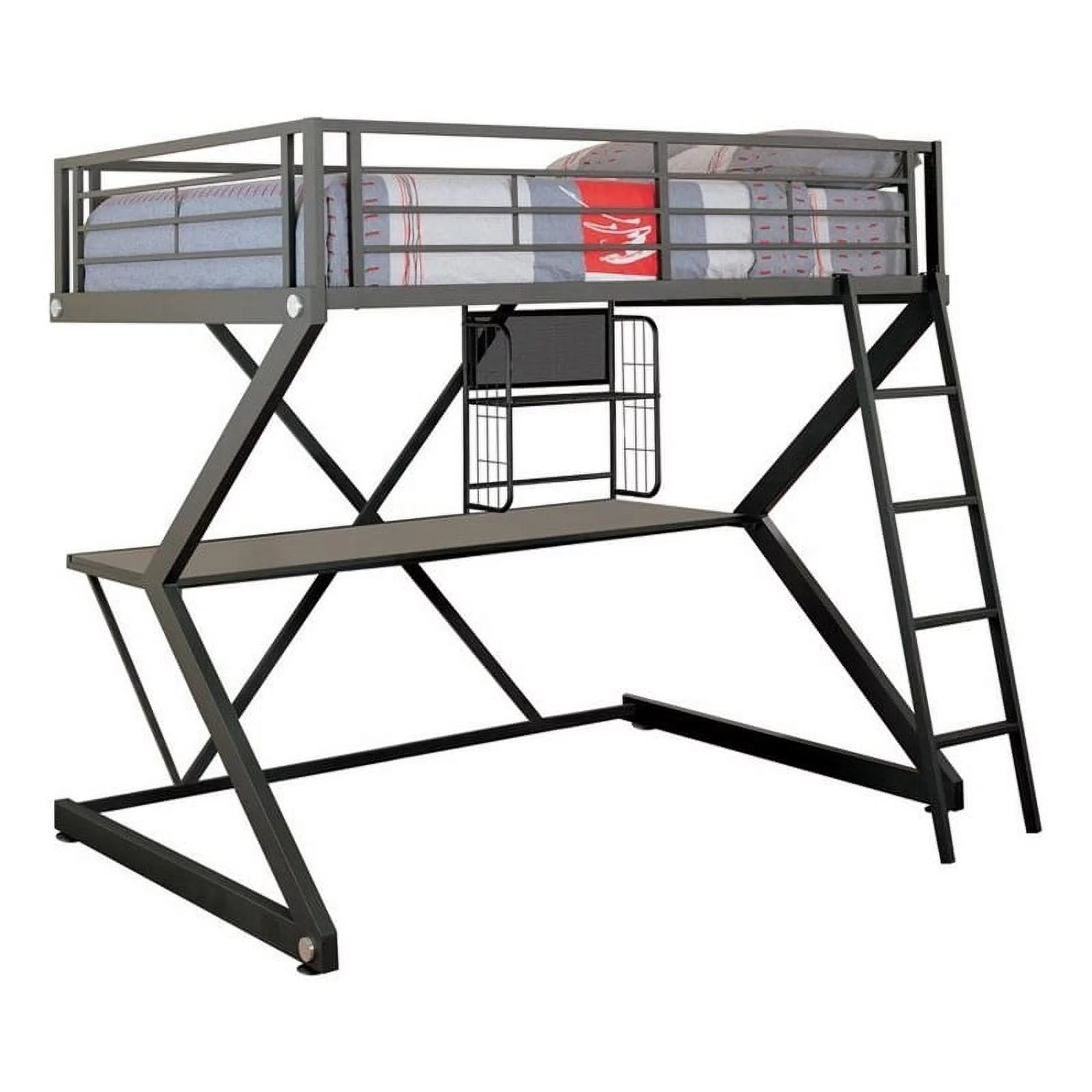 Bowery Hill Contemporary Metal Full Loft Bed with Workstation in Silver
