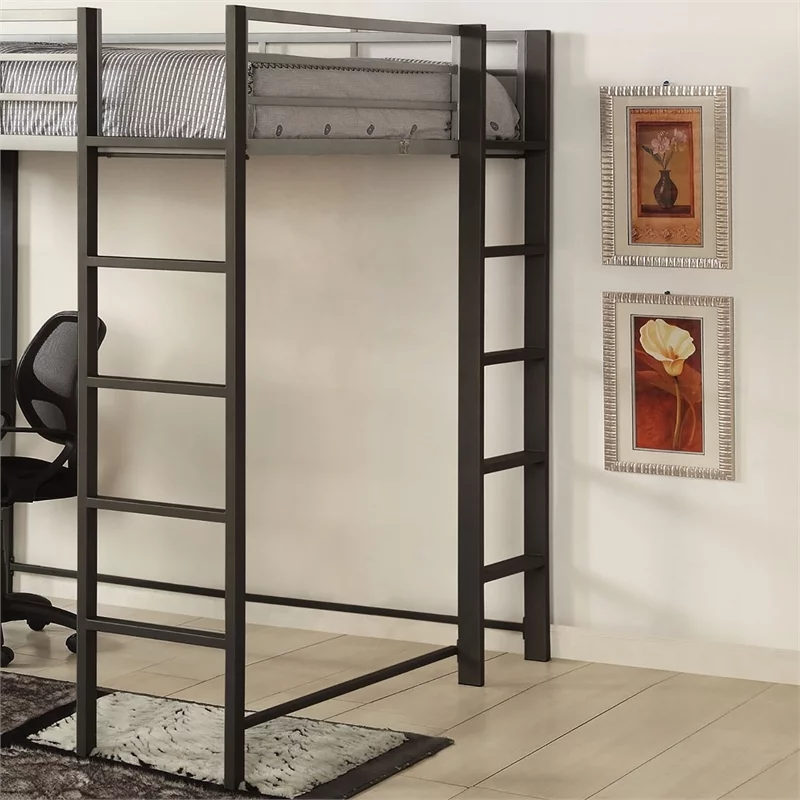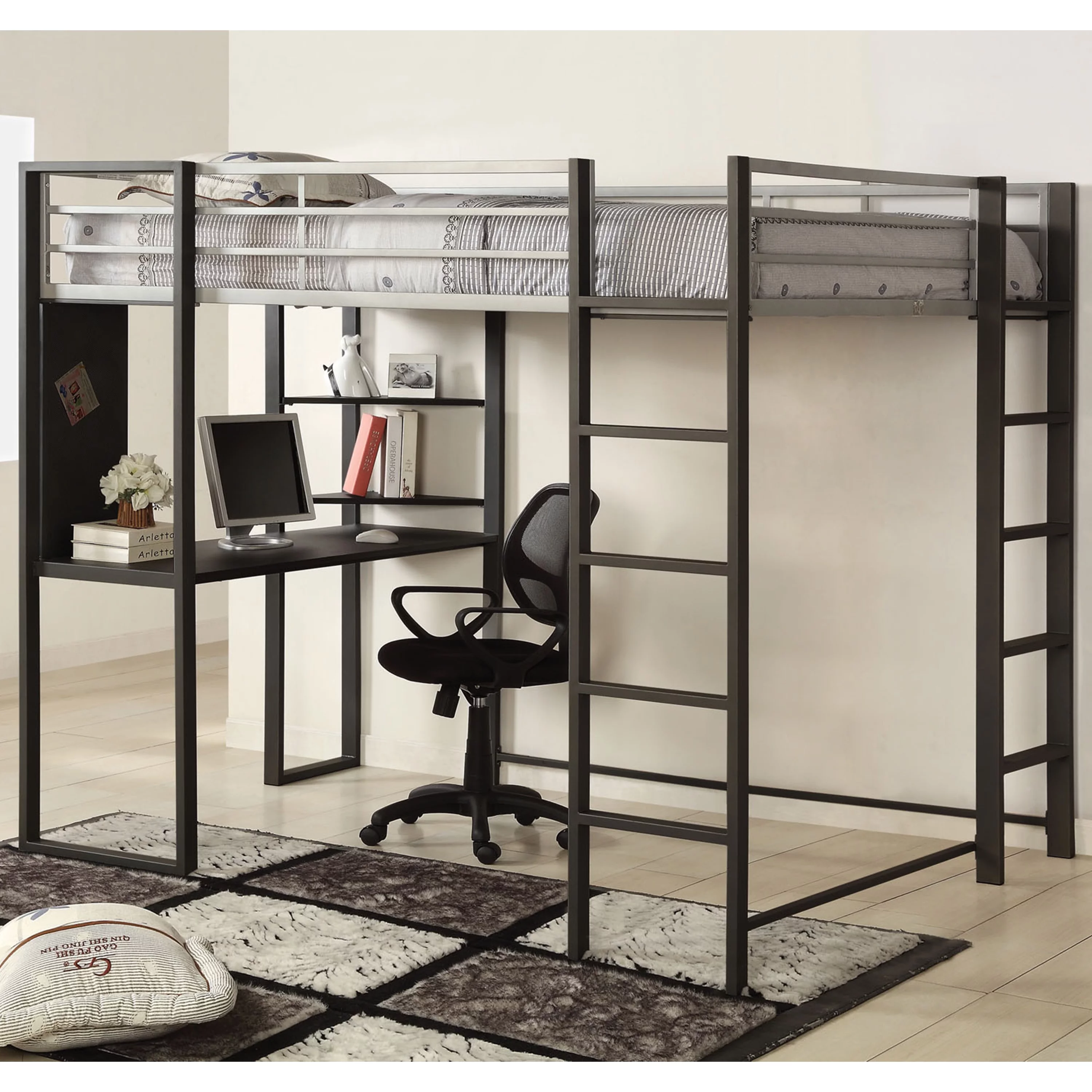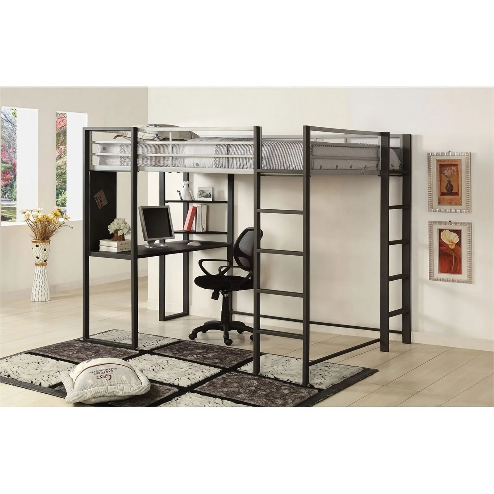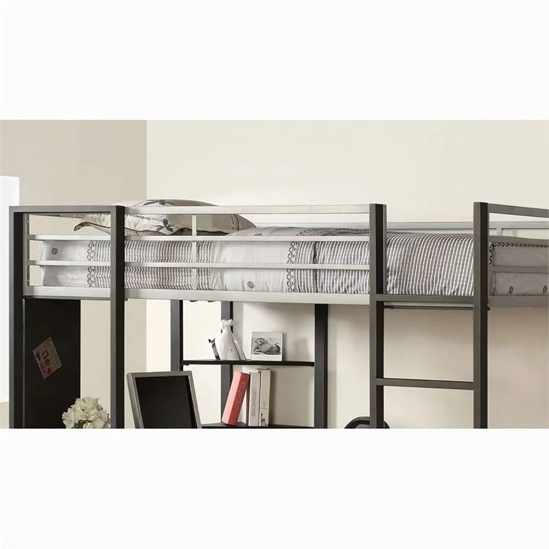 Roseberry Kids Contemporary Metal Full Loft Bed with Workstation in Silver