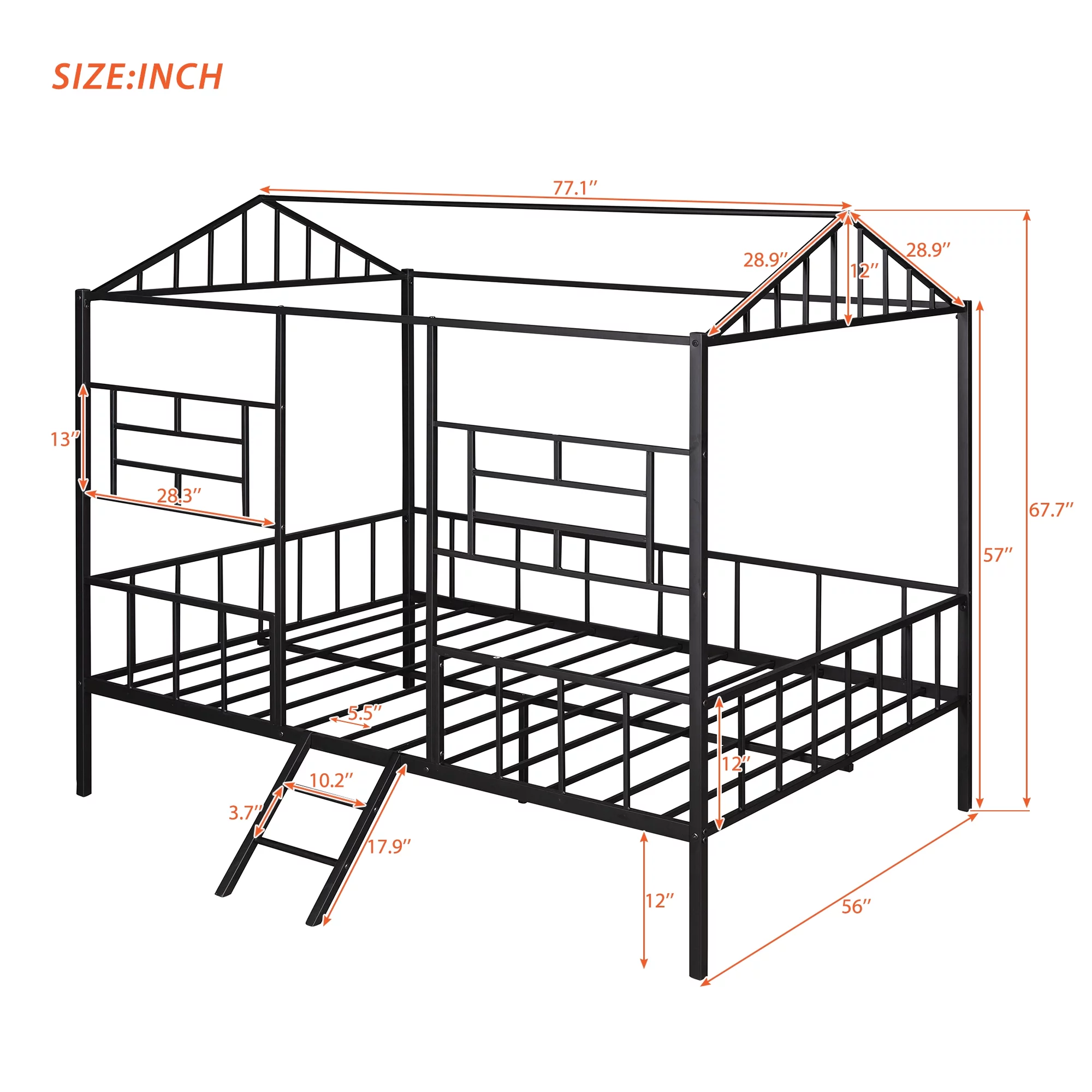 House Bed Full Bed for Kids, Metal Loft Bed Frame with Roof, Metal Platform Bed for Toddlers, Kids, Girls & Boys(Black)