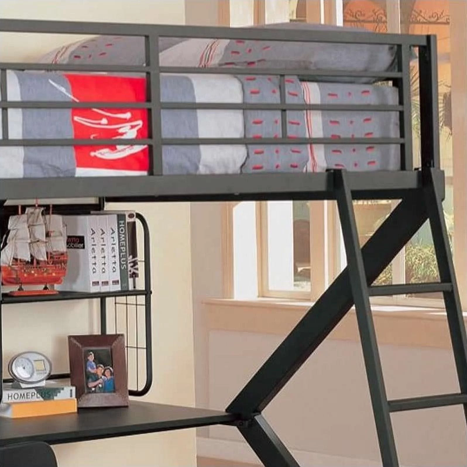 Stonecroft Furniture Palm Modern Metal Workstation Full Loft Bed in Black