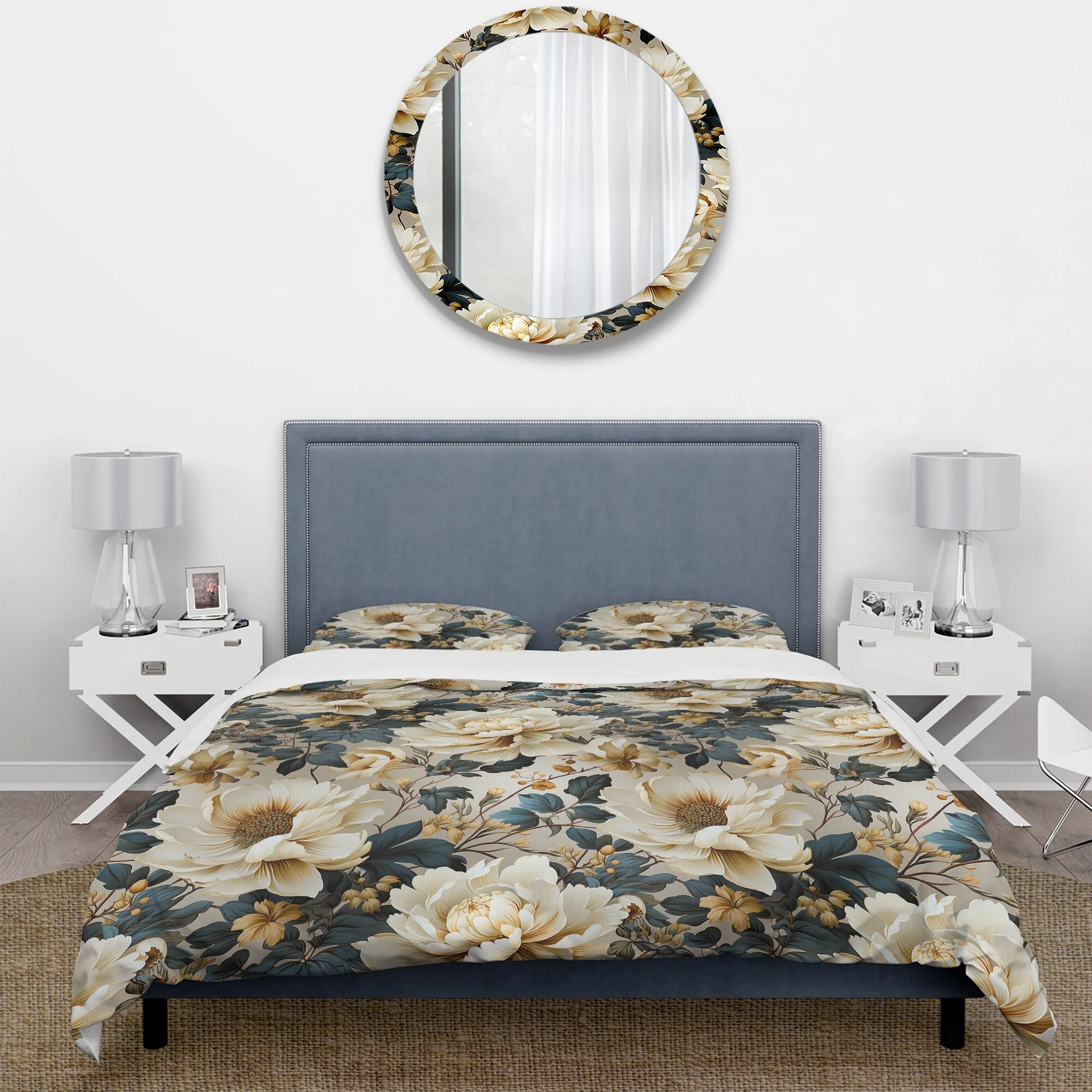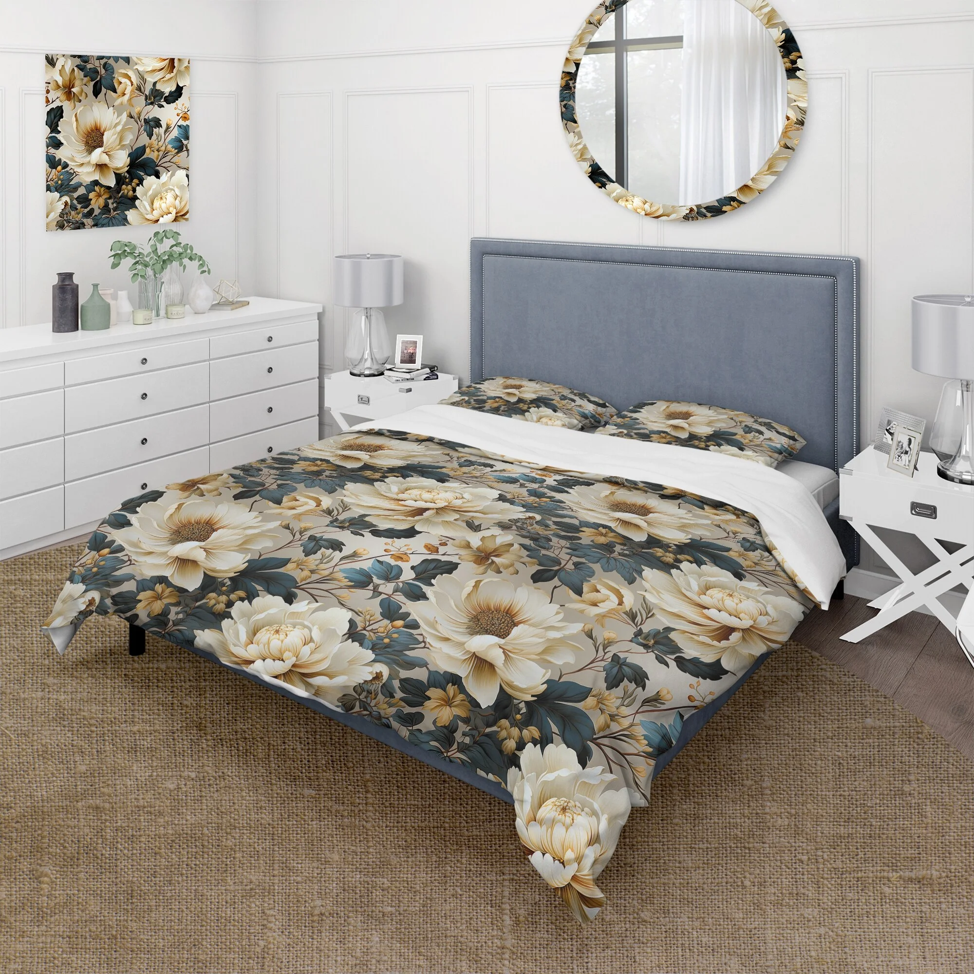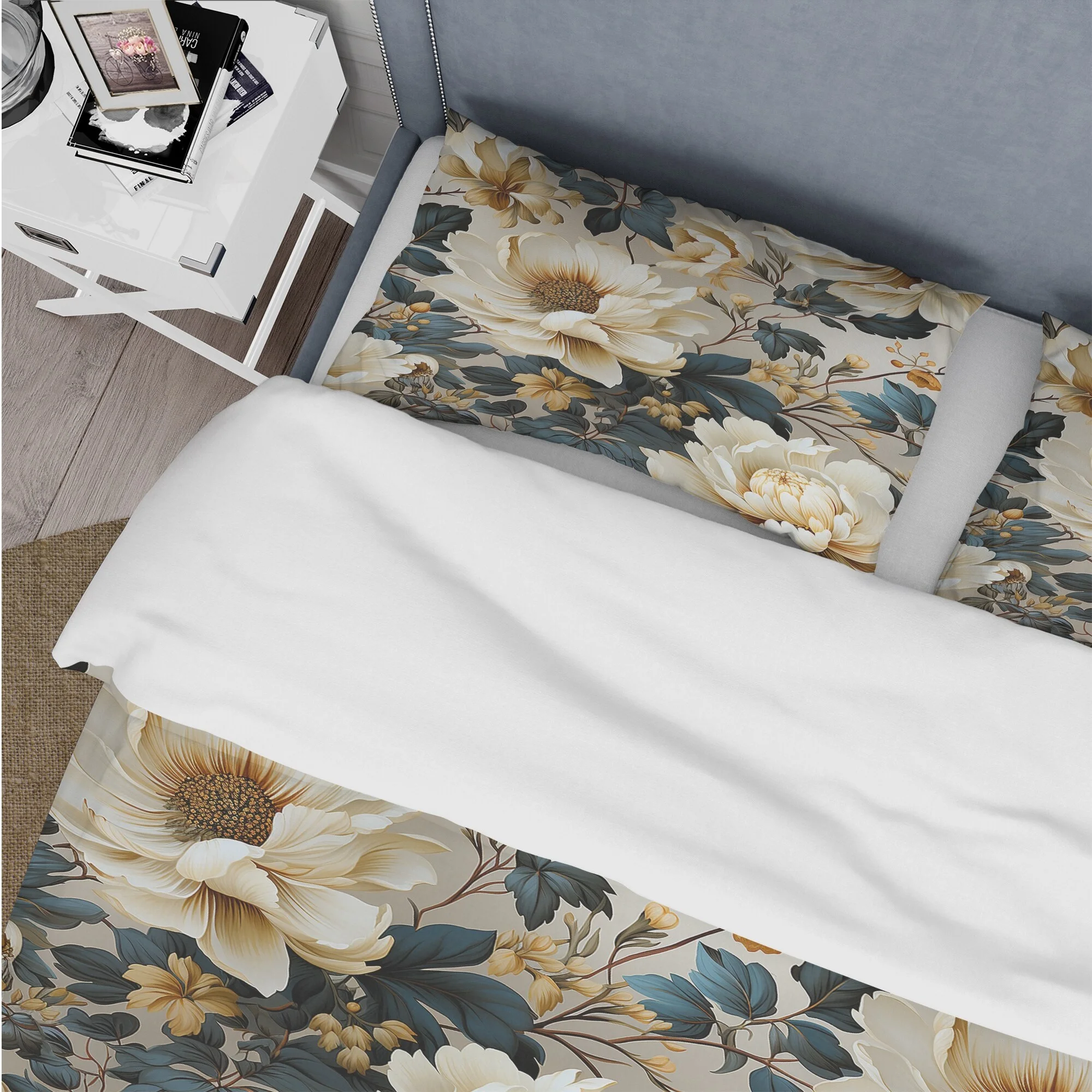 Designart "Vintage Autumn Floral Grace VI" White Floral Bedding Covert Set - Cottage Bed Set With 1 Sham