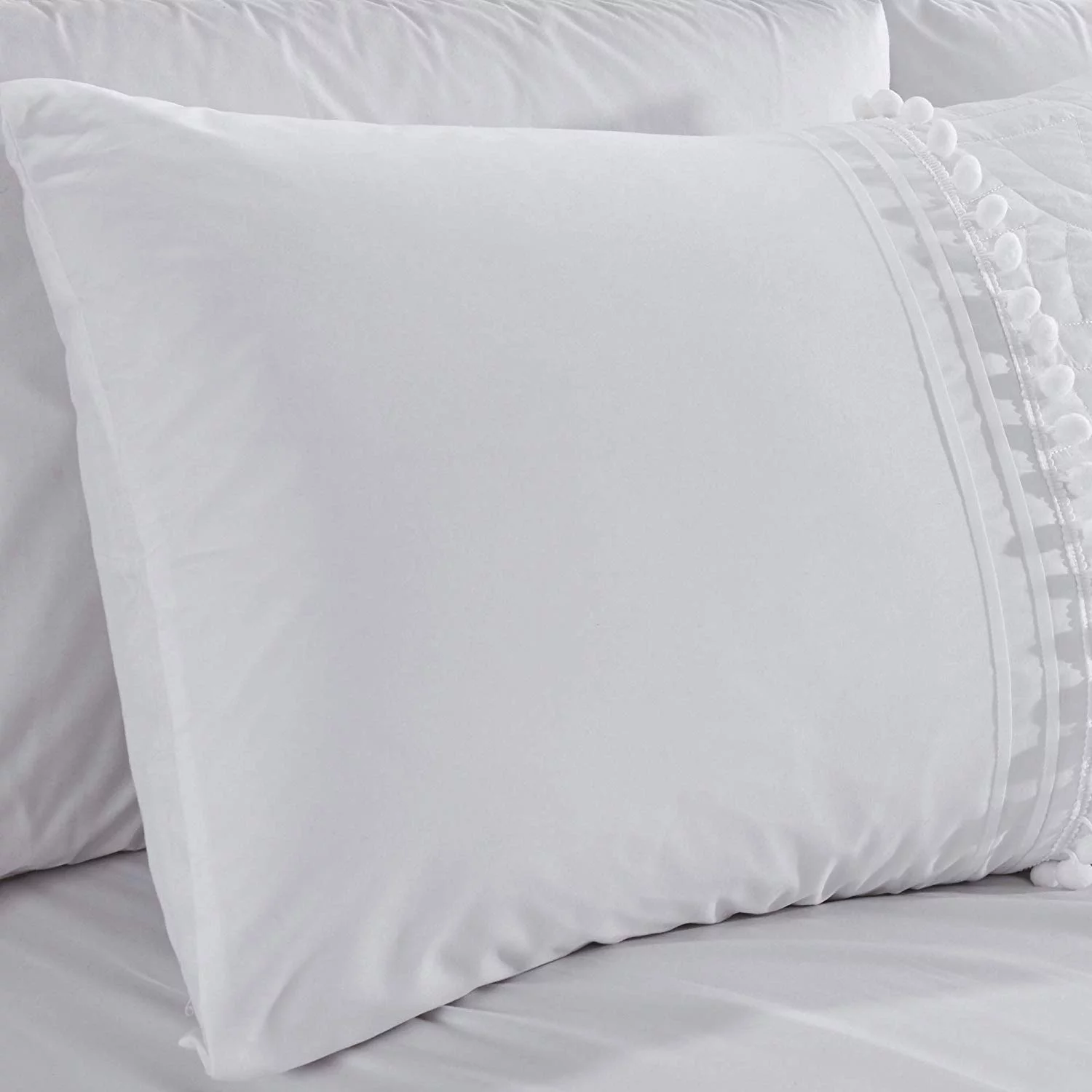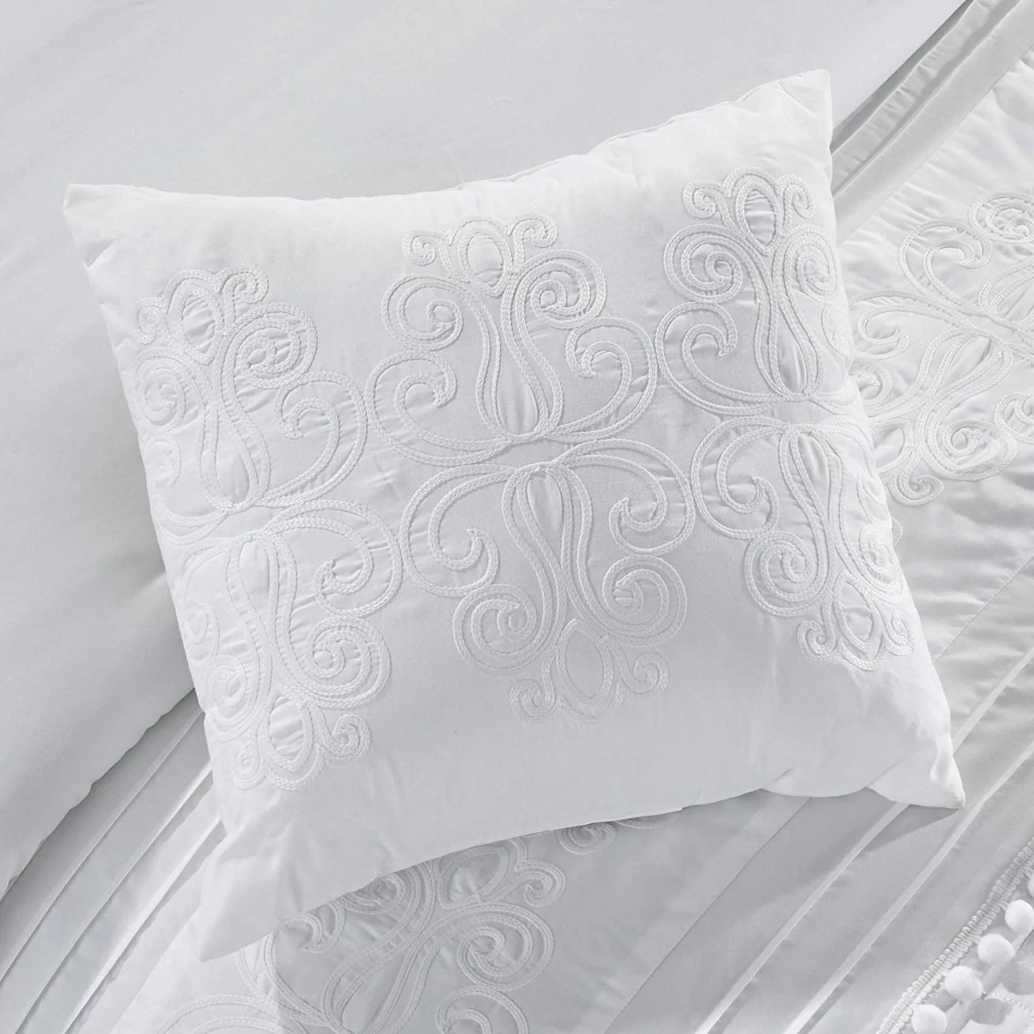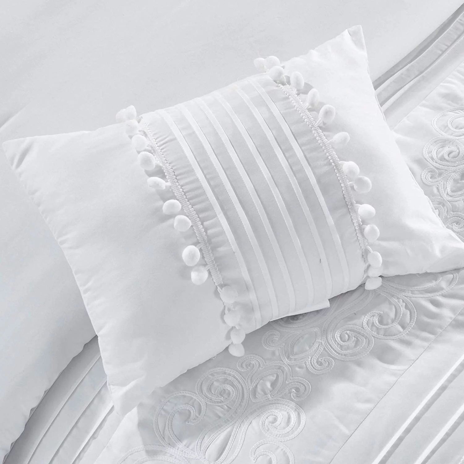 Chezmoi Collection Grace 7-Piece White Floral Chenille Embroidered Pleated Striped Comforter Set