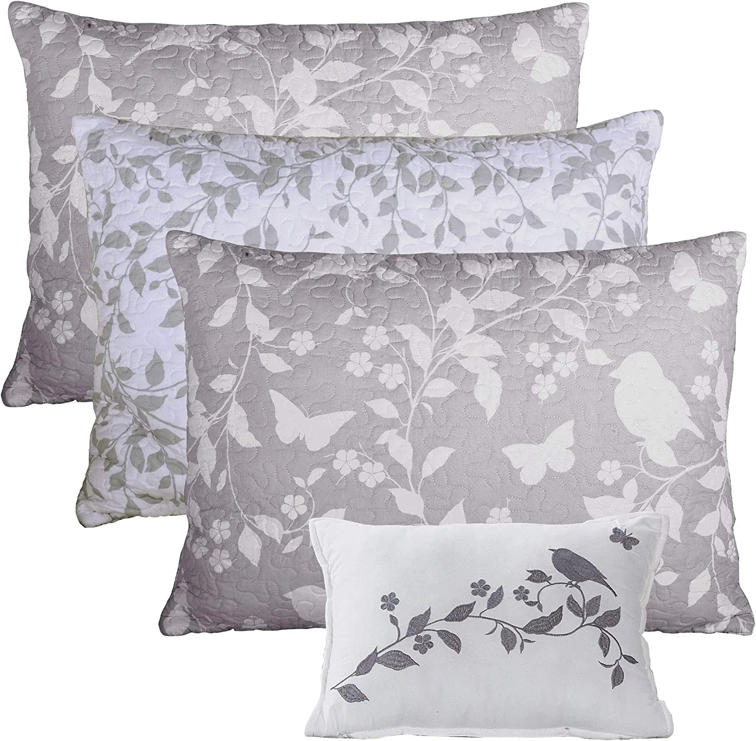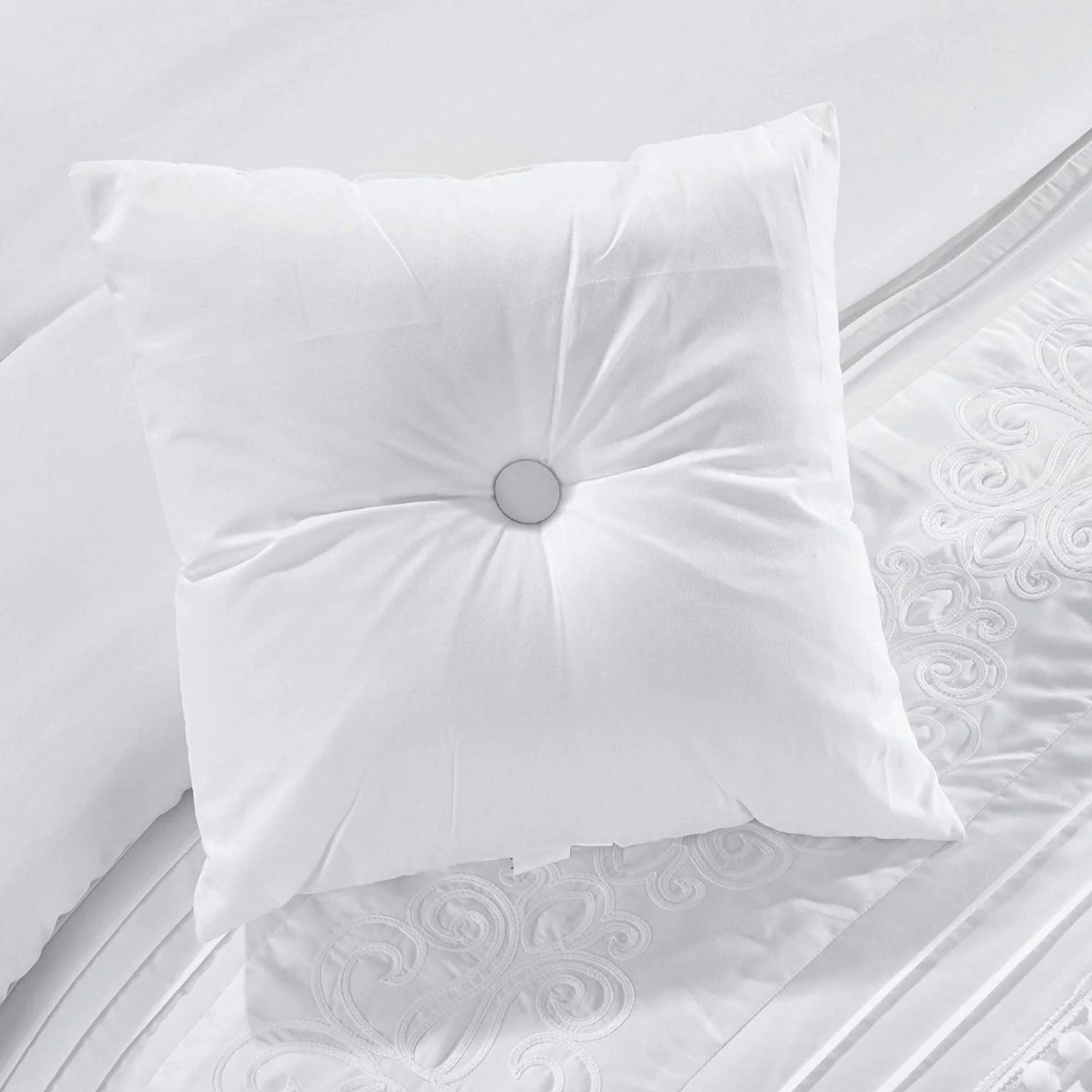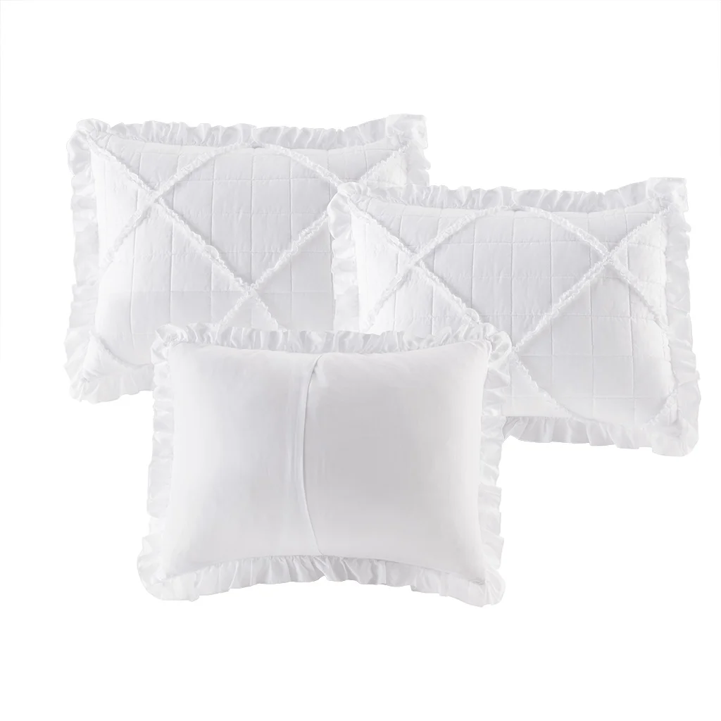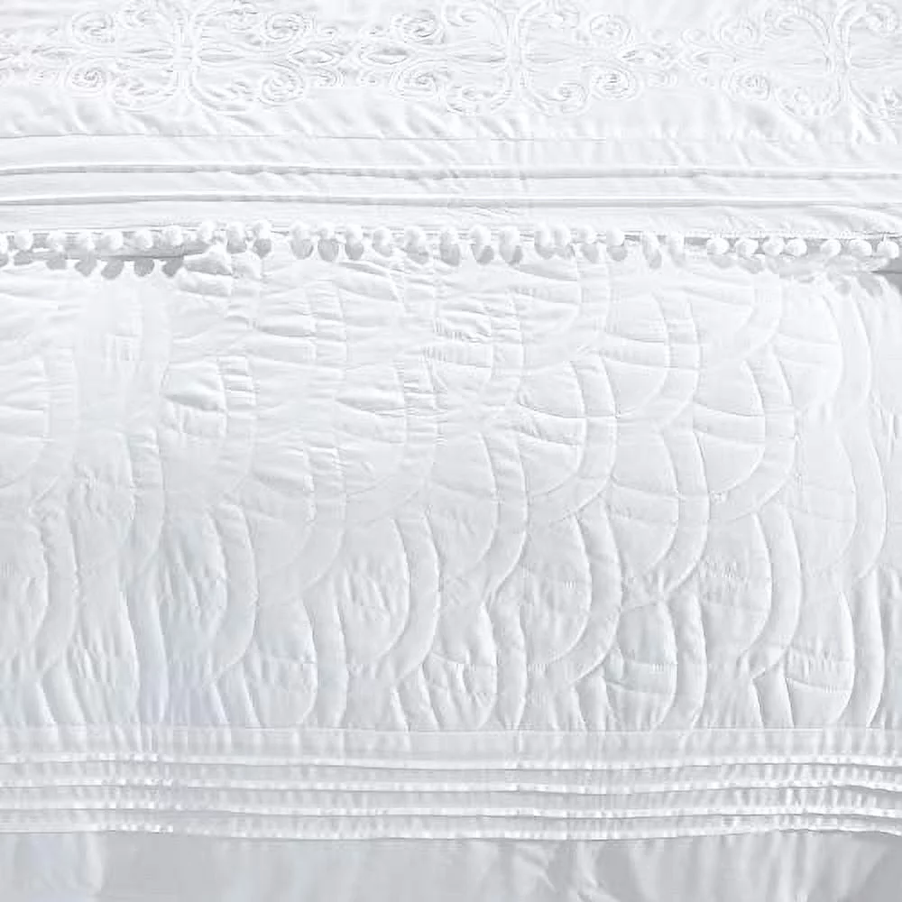 Chezmoi Collection Grace 7-Piece White Floral Chenille Embroidered Pleated Striped Comforter Set