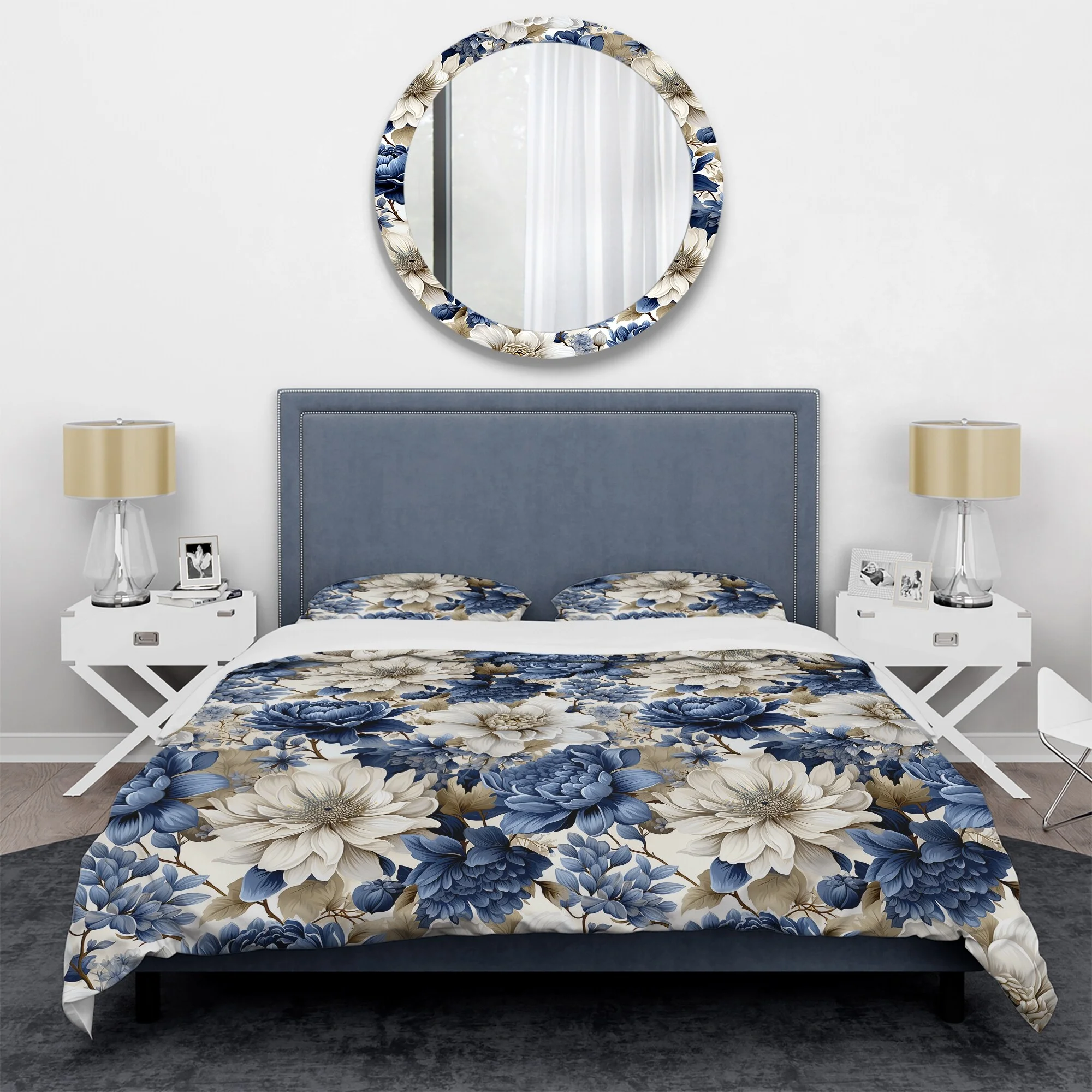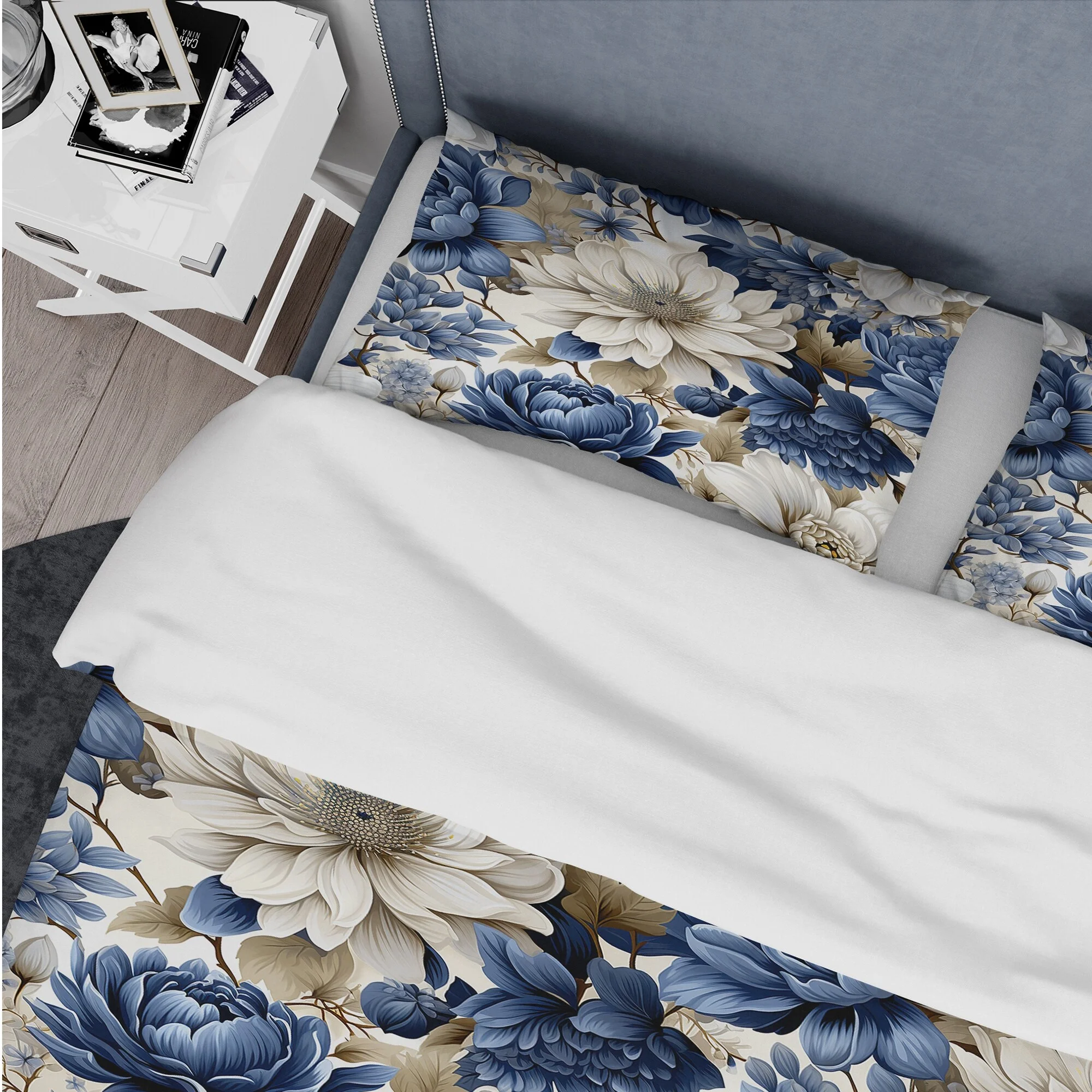 Designart "Country Blue Floral Grace I" Floral Bedding Covert Set - Cottage Bed Set With 2 Shams