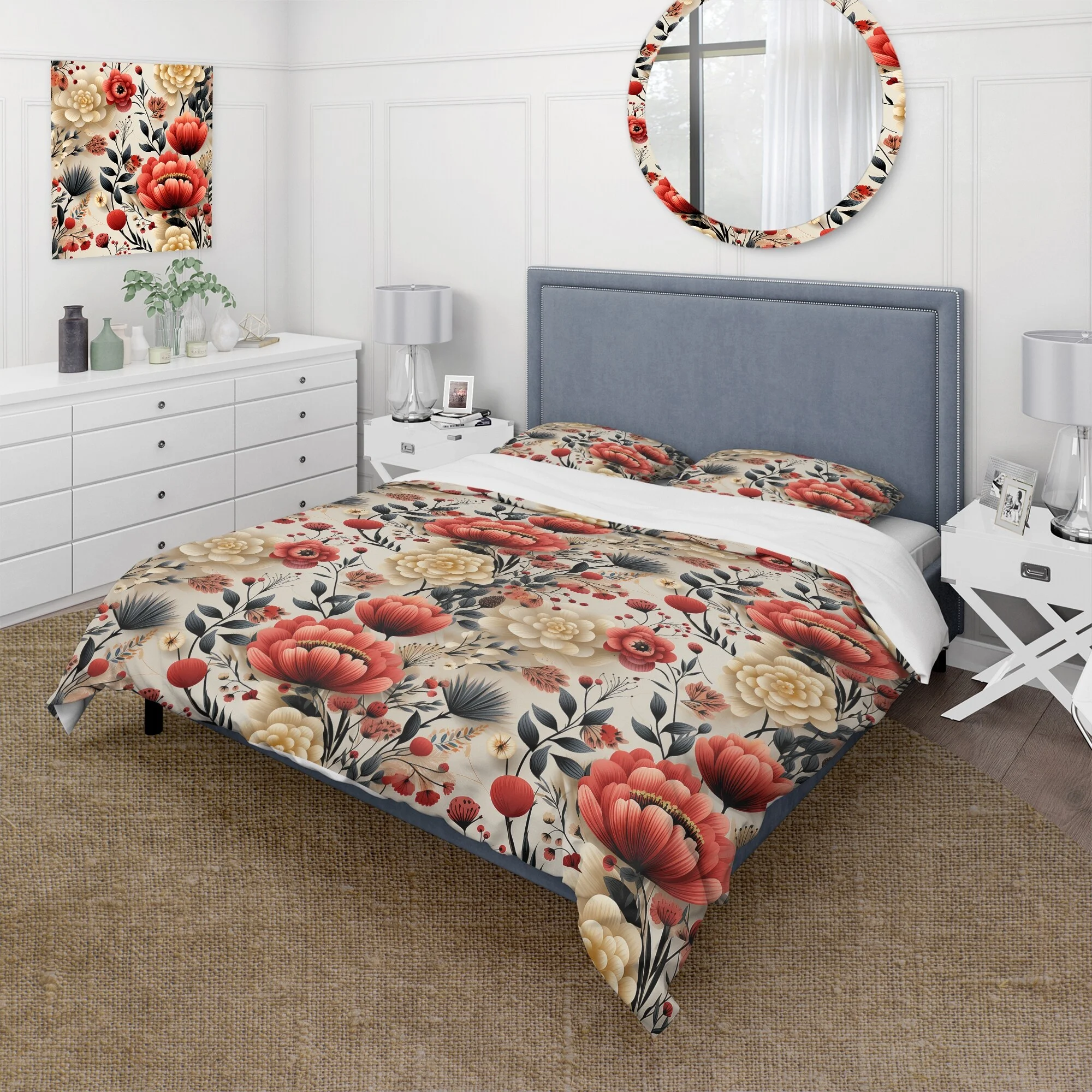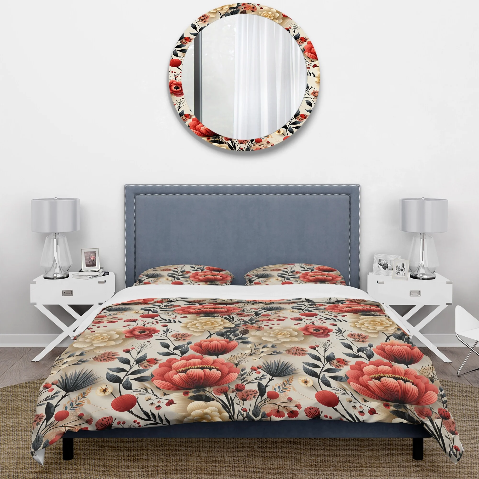 Designart "Vibrant Coral In Bohemian Grace" Floral Bedding Covert Set - Cottage Bed Set With 2 Shams
