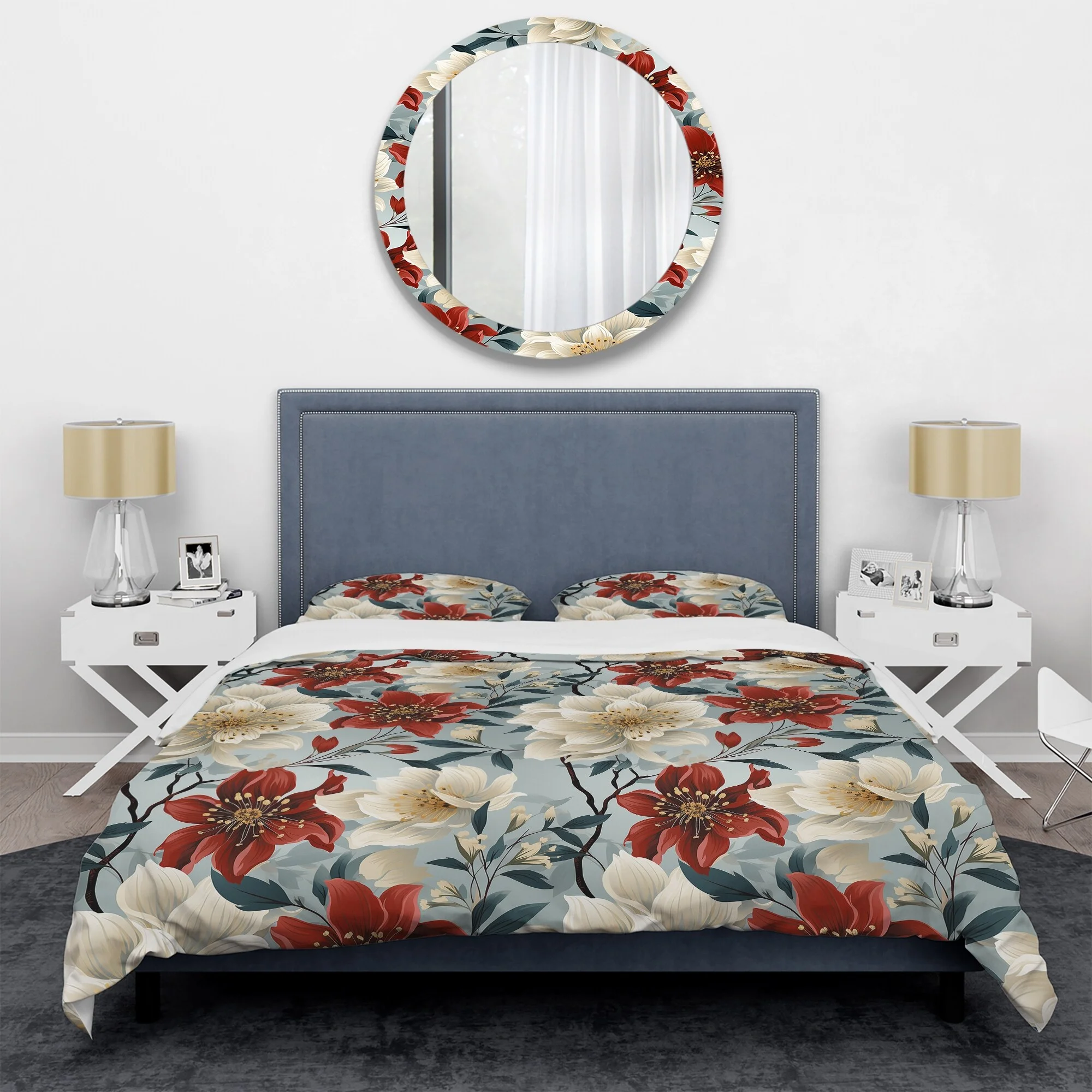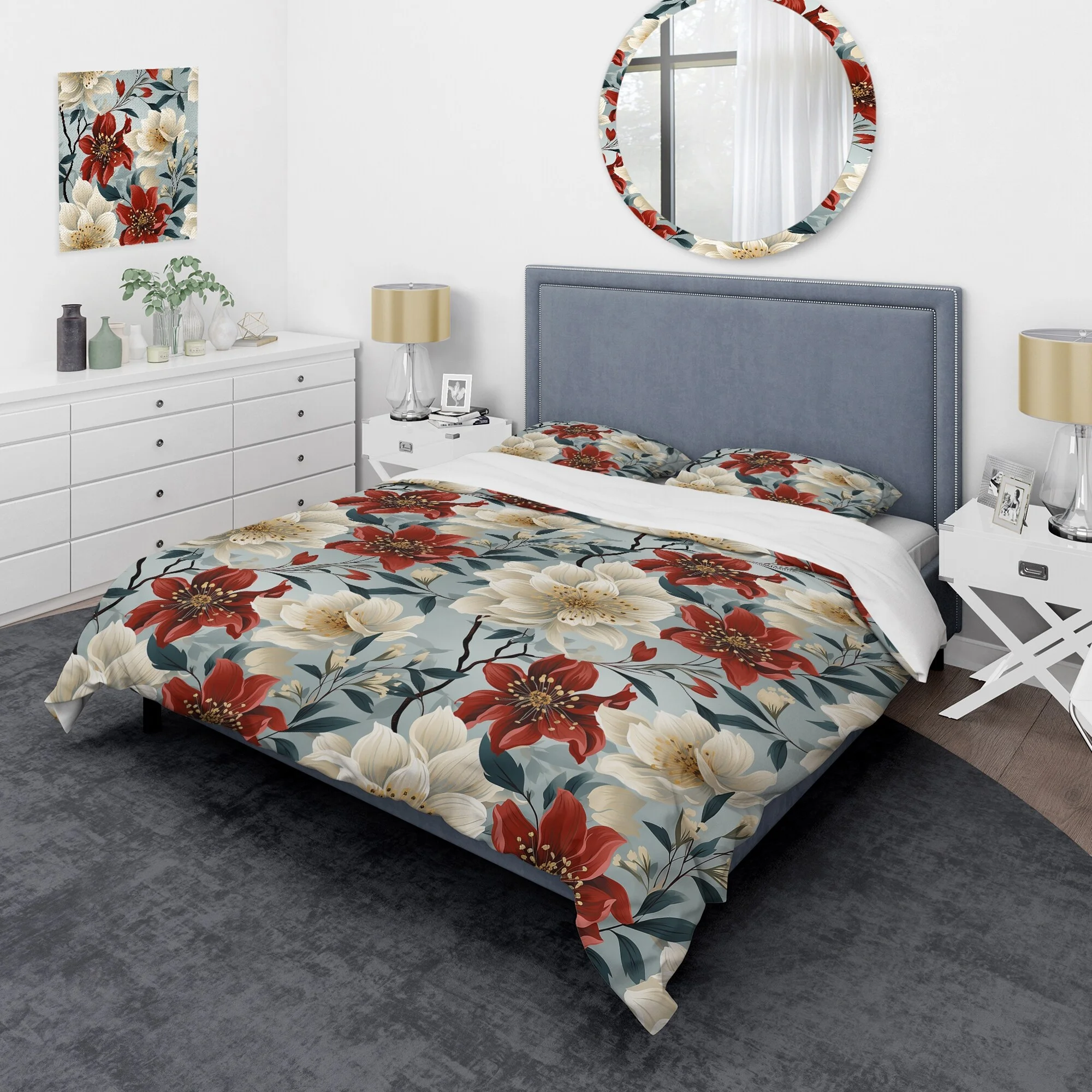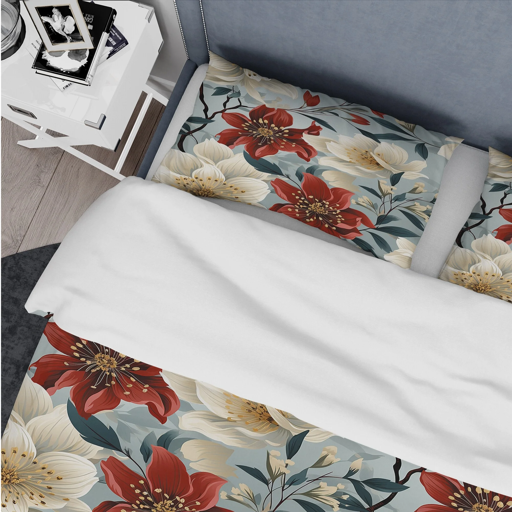 Designart "Crimson White Orchid Grace" Floral Bedding Covert Set - Cottage Bed Set With 1 Sham