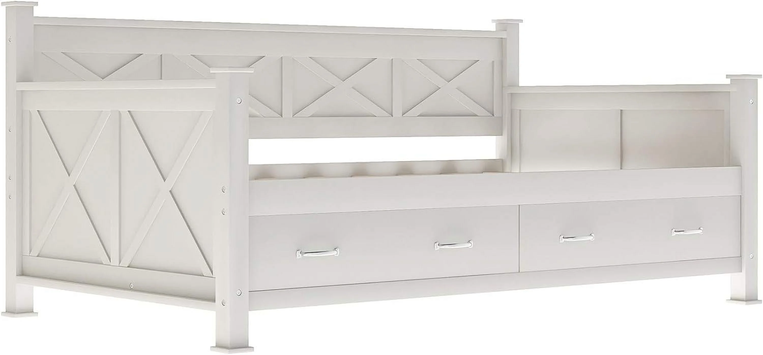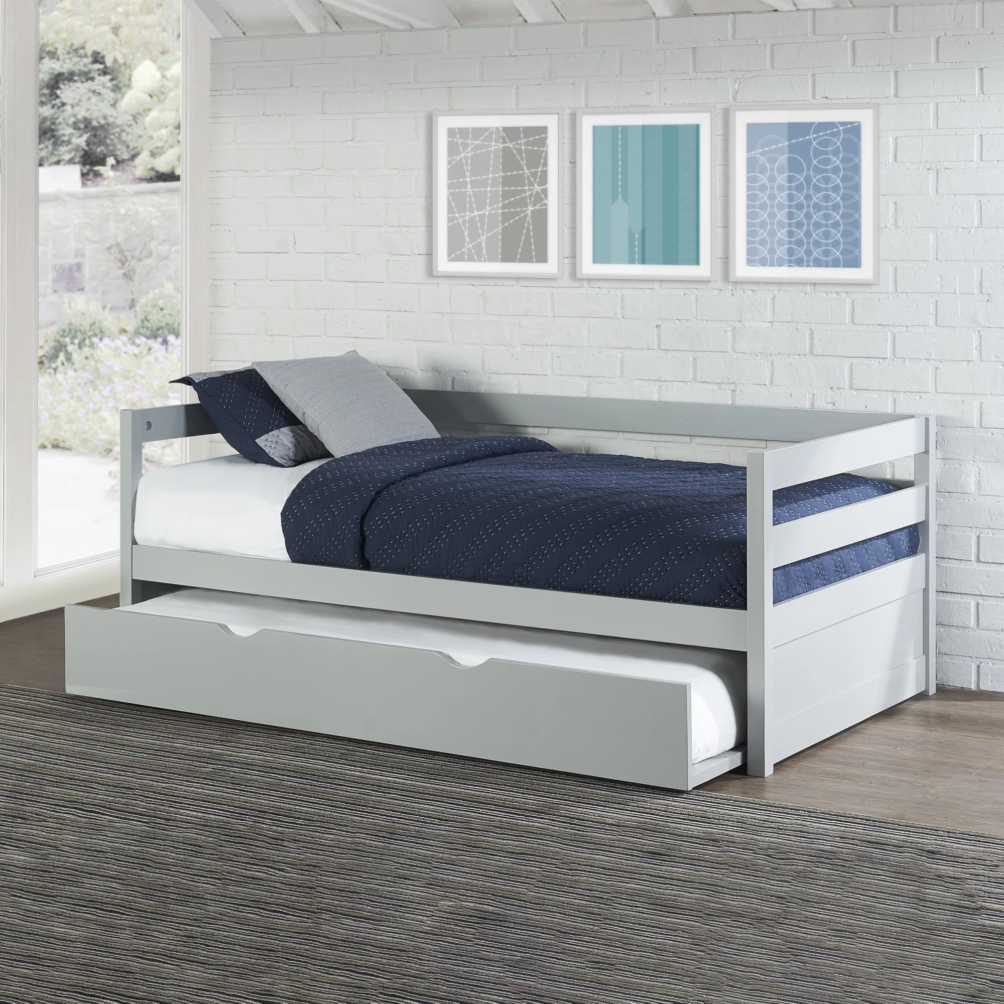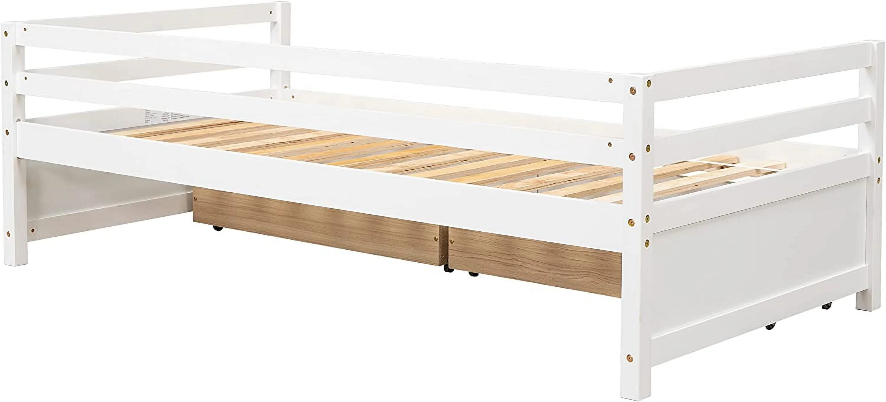 Daybed With Drawers, Wood Storage Daybed With 2 Storage Drawers, Wooden Platform Bed Great For Kids Guests Sleepovers, Gray