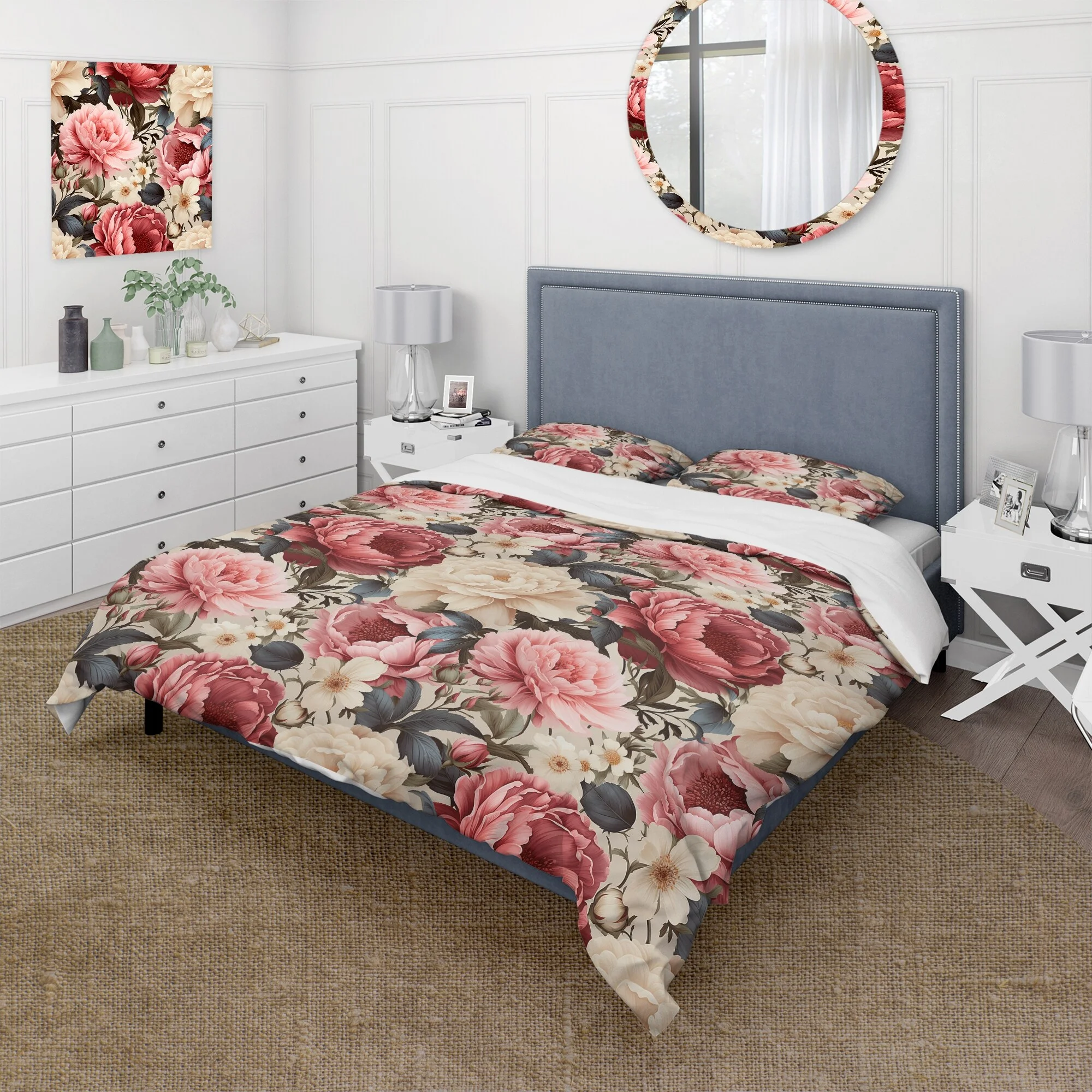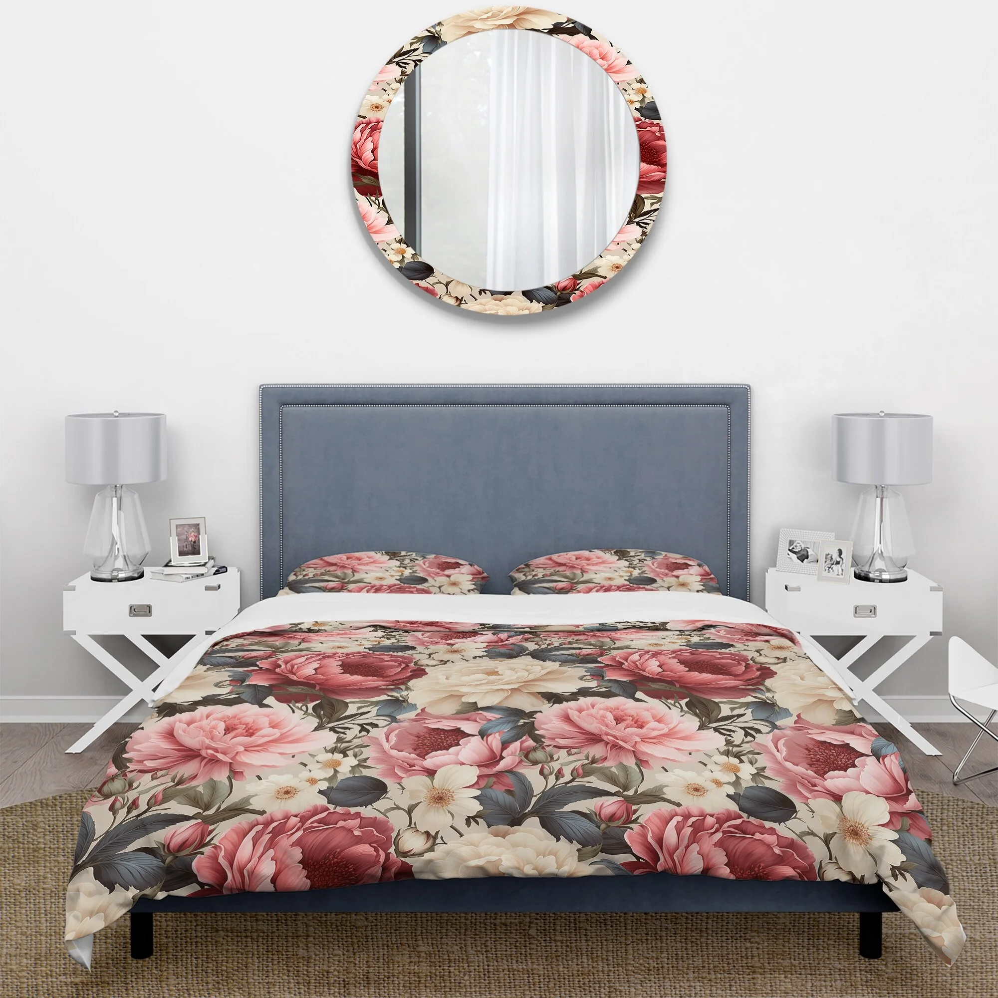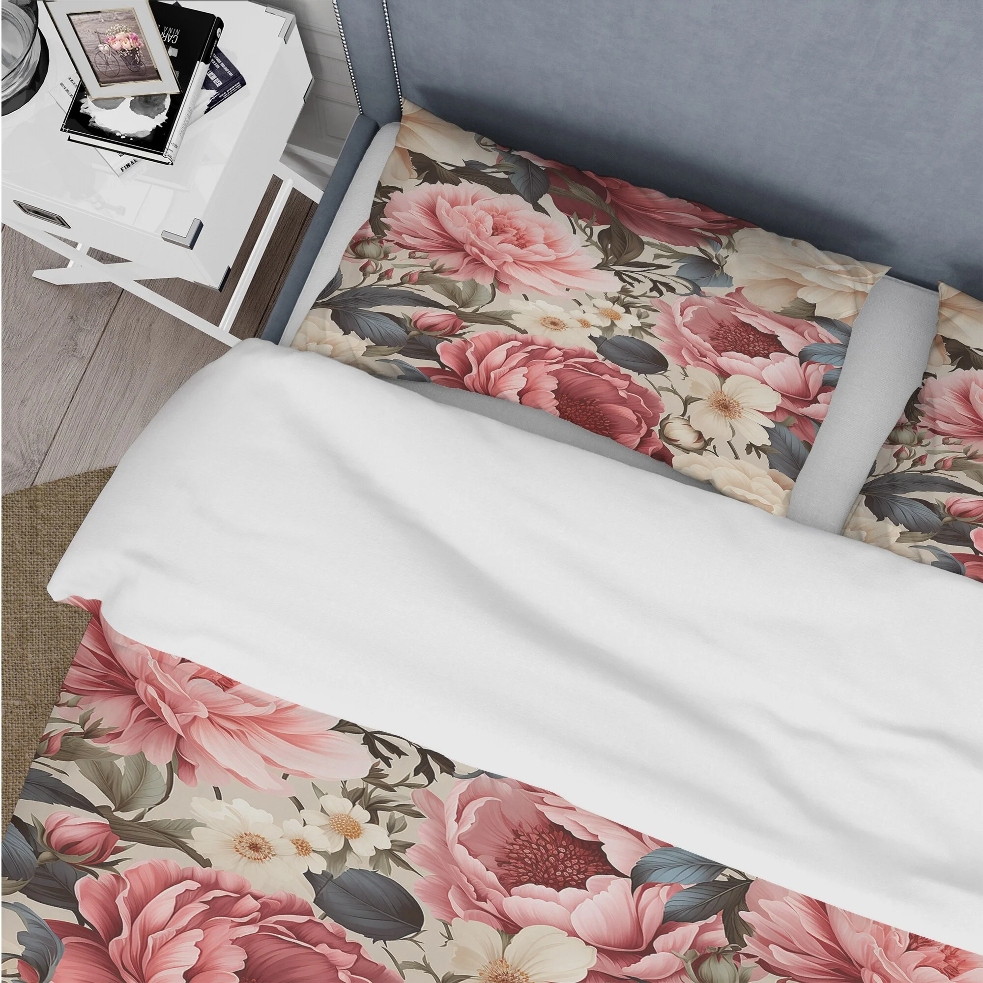 Designart "Graced With Vintage Roses IV" Pink Floral Bedding Covert Set - Cottage Bed Set With 2 Shams