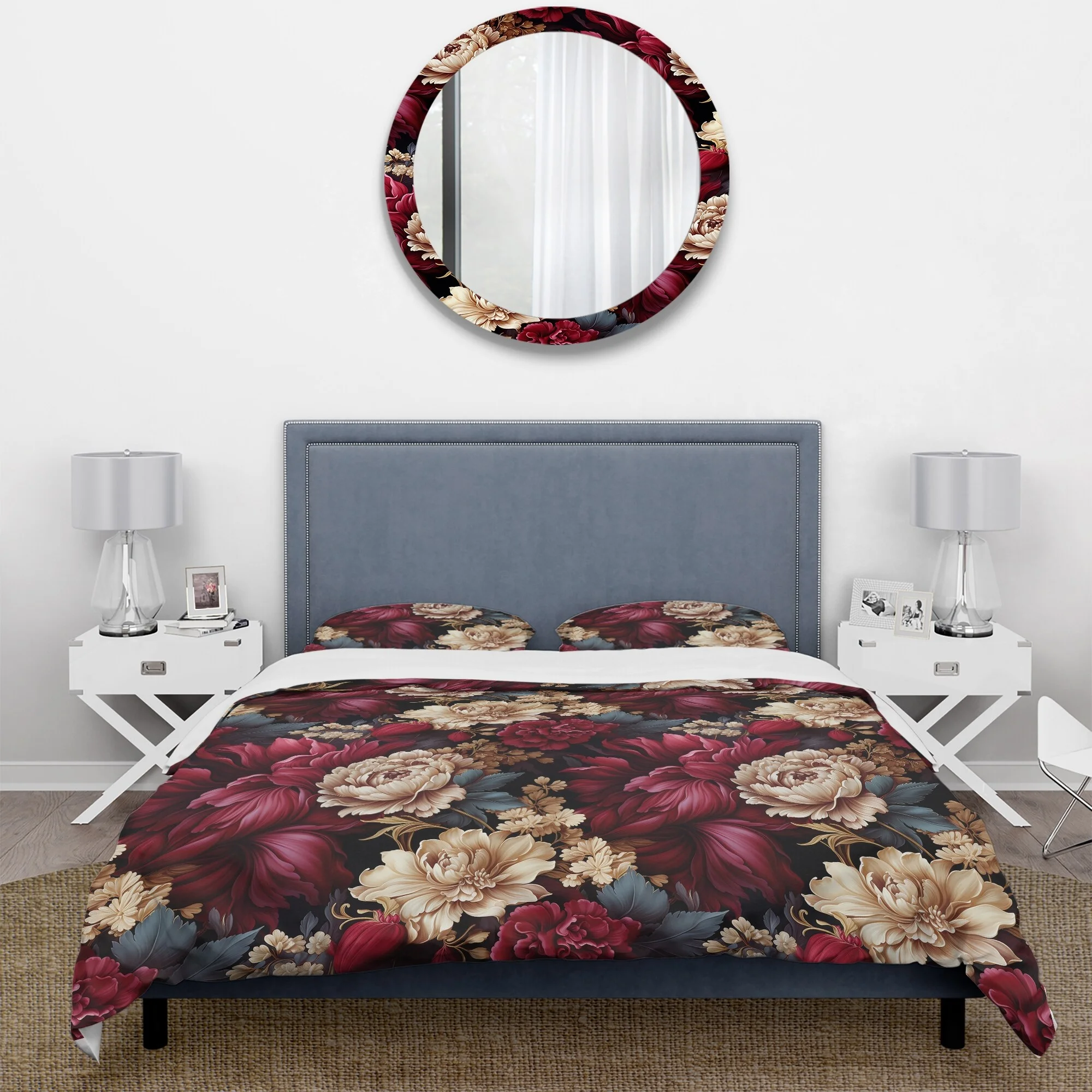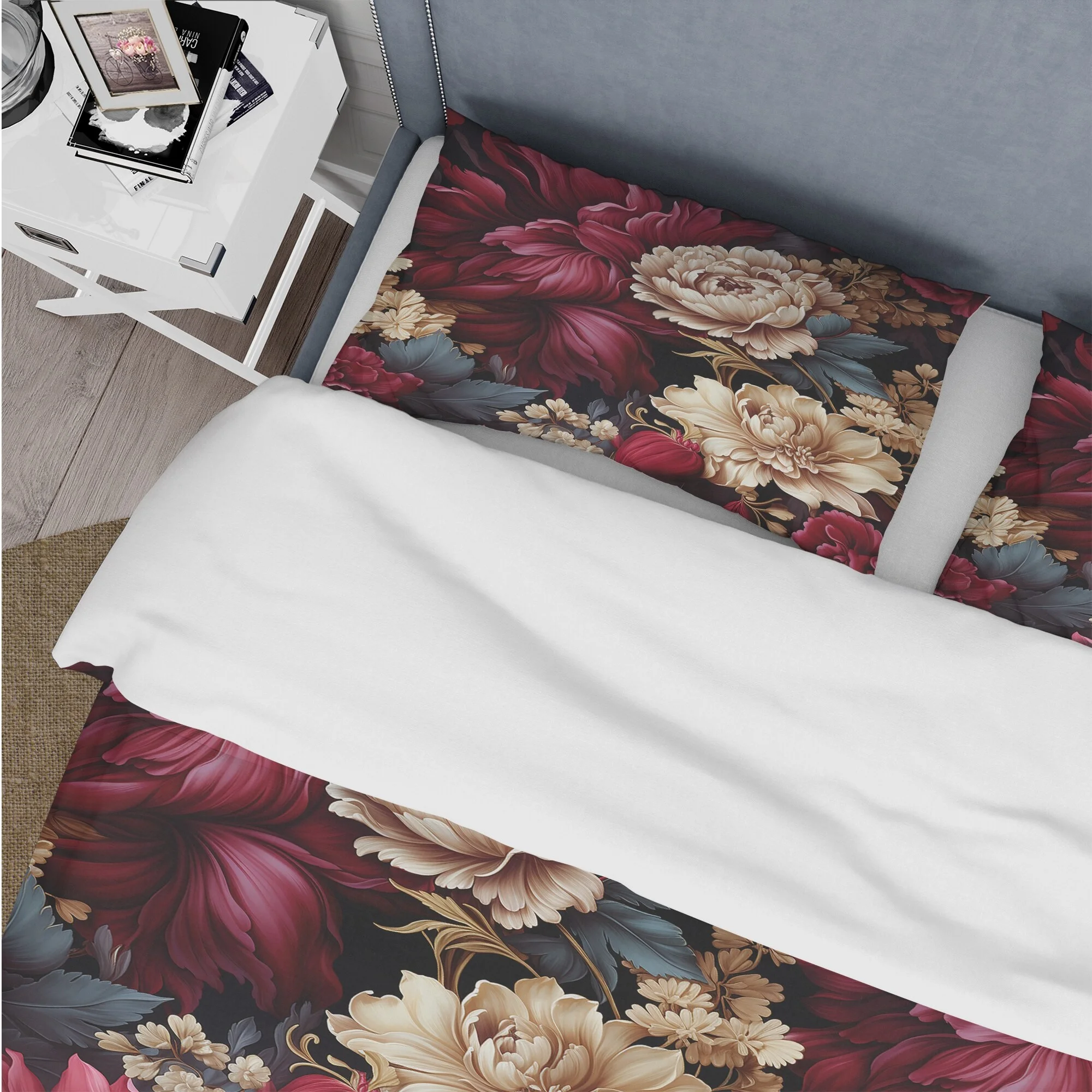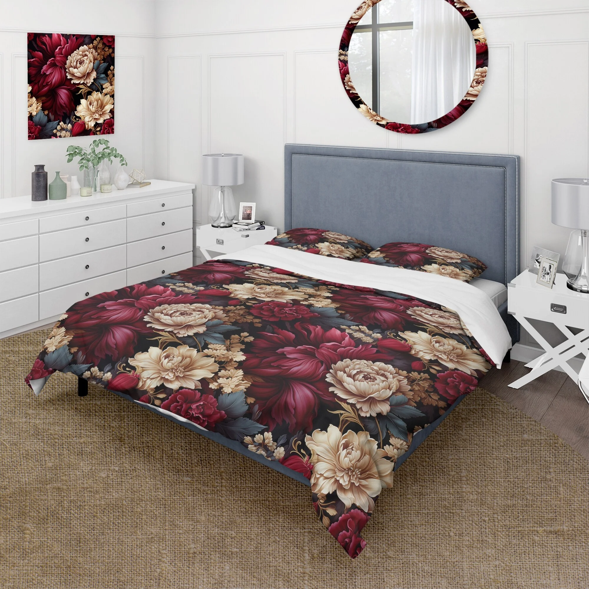 DESIGN ART Designart "Royal Red And Beige Peony Garden Grace" Red Damask Bedding Set With Shams Full - Queen