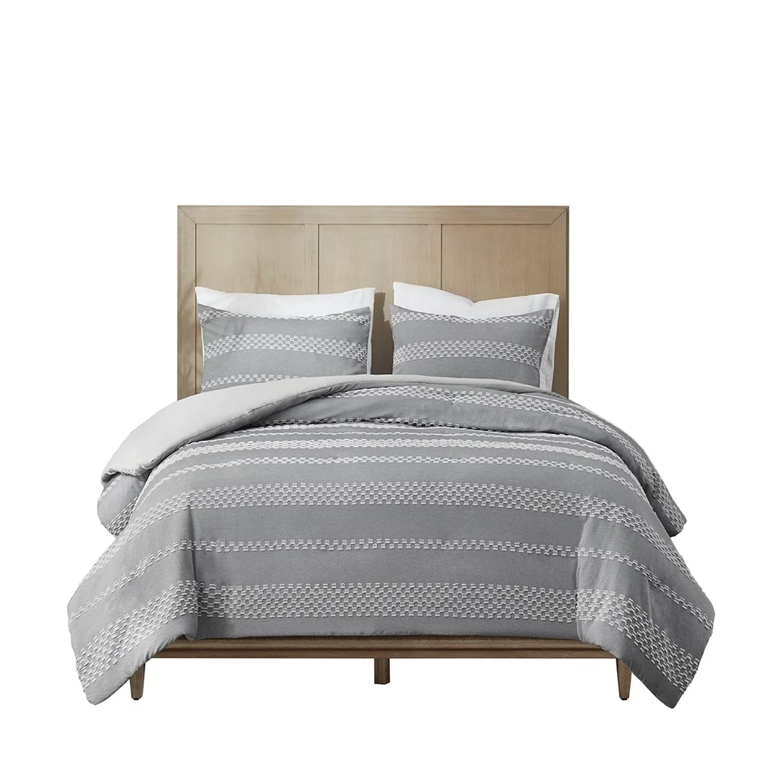 Gracie Mills Ismael Clipped Jacquard Stripe 3-Piece Duvet Cover Set - GRACE-15270