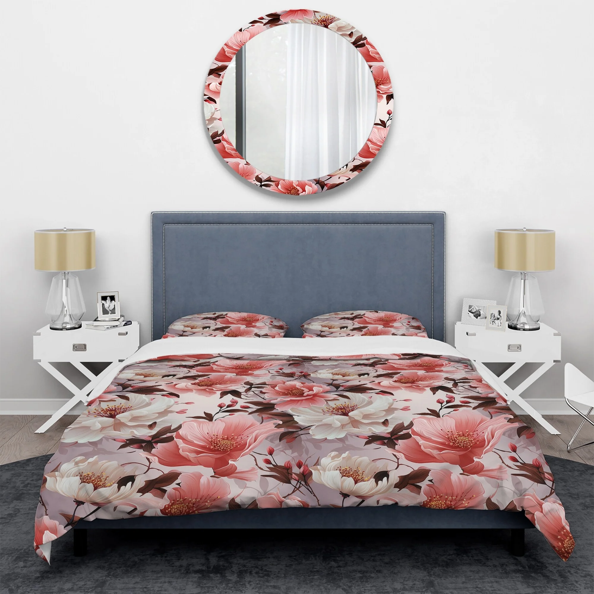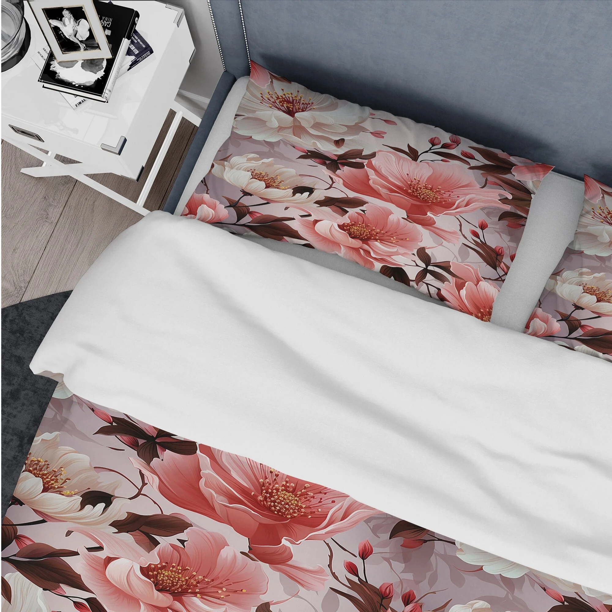 DESIGN ART Designart "Pink And White Carnation Blossoming Grace III" White Cottage Bedding Set With Shams King