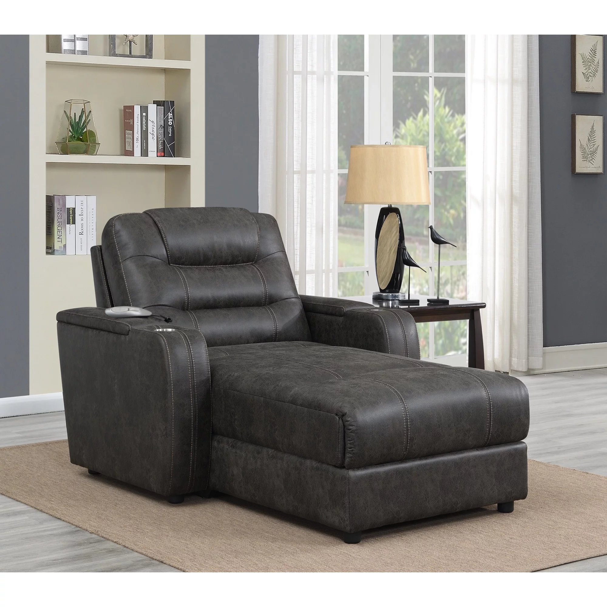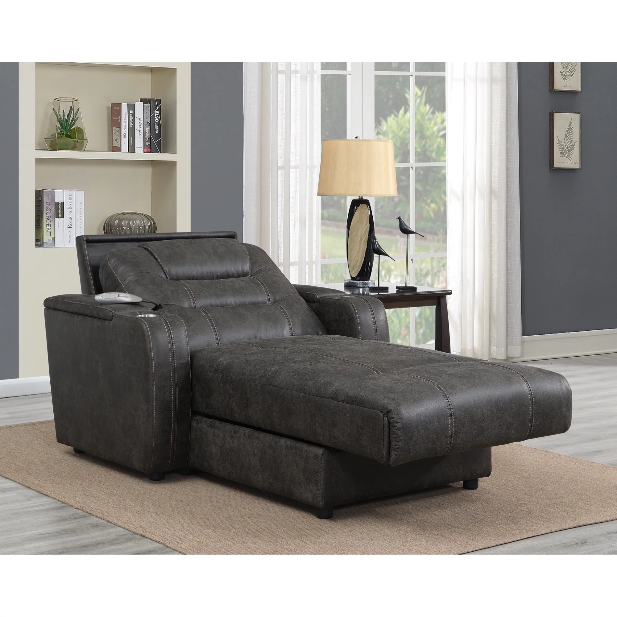 Sunset Trading Power Fabric Reclining Chaise Lounge Chair with Arms in Gray