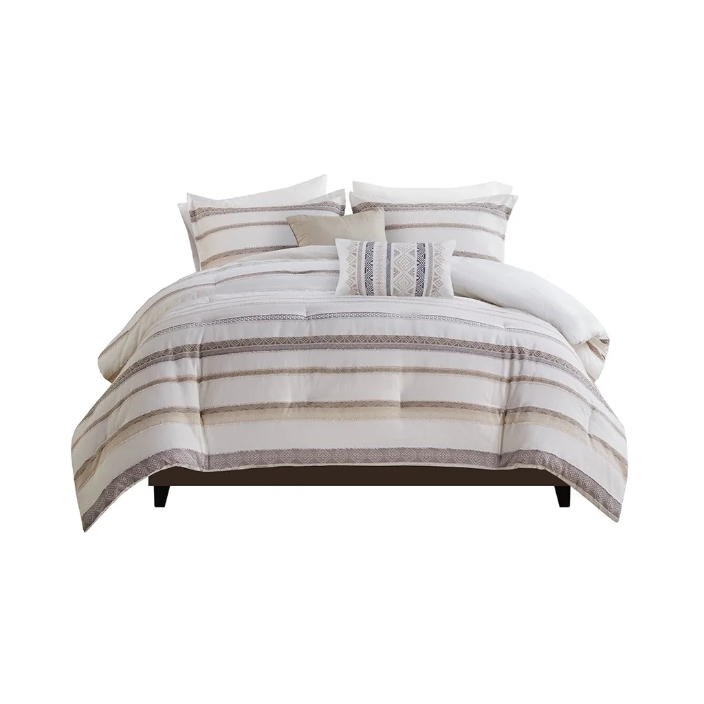 Gracie Mills Hickman 7-Piece Transitional Striped Jacquard Comforter Set - GRACE-14306