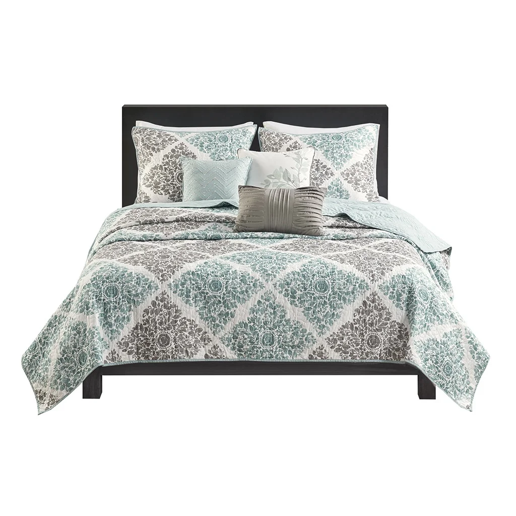 Gracie Mills Mitchell 6-Piece Reversible Quilt Set and Coordinating Throw Pillows - GRACE-3140